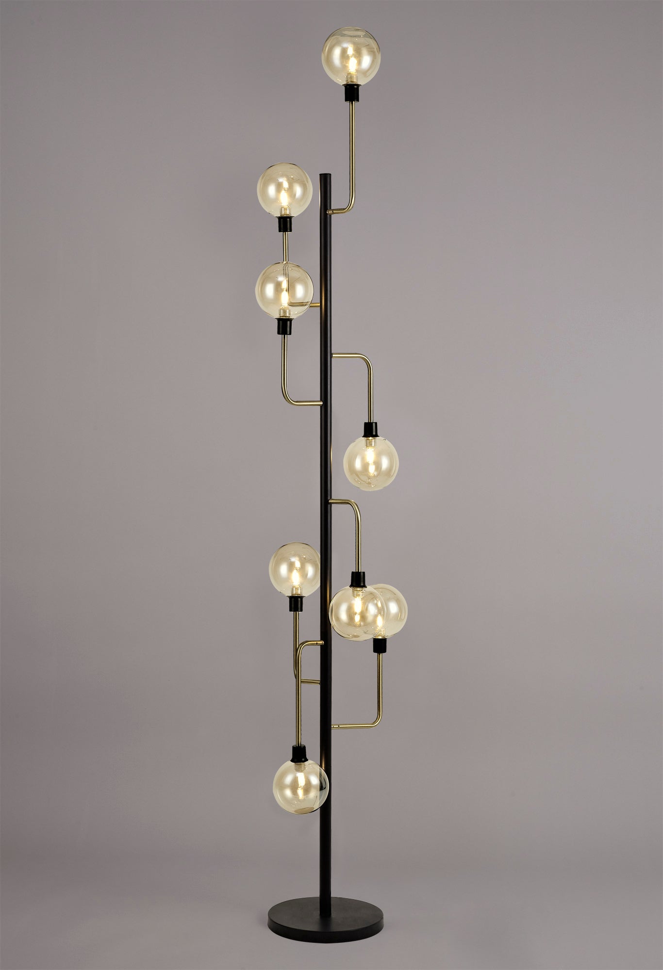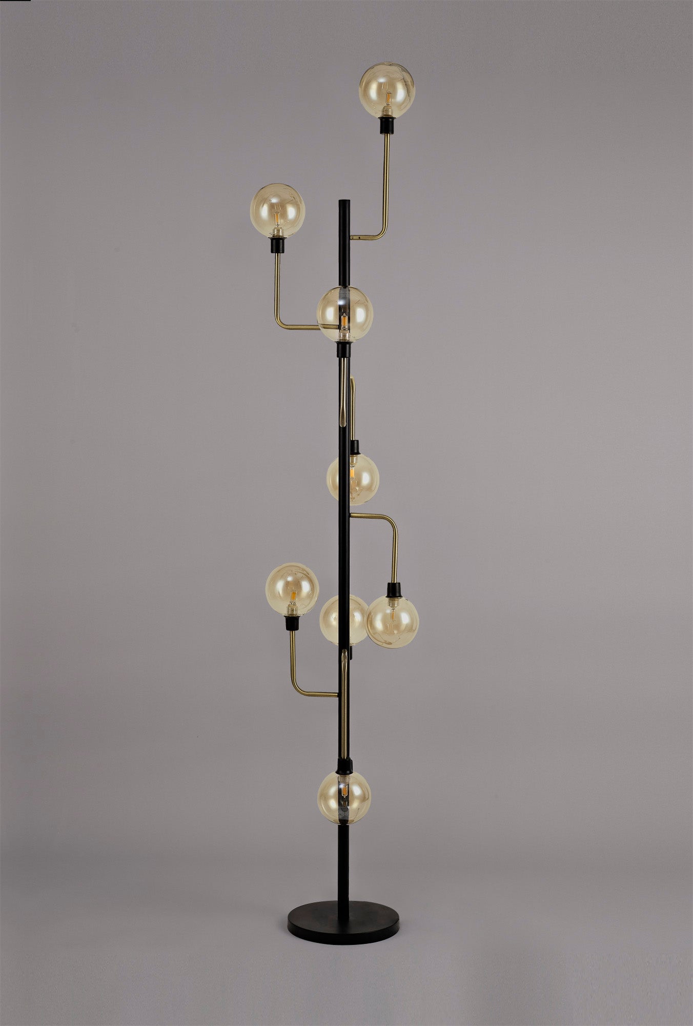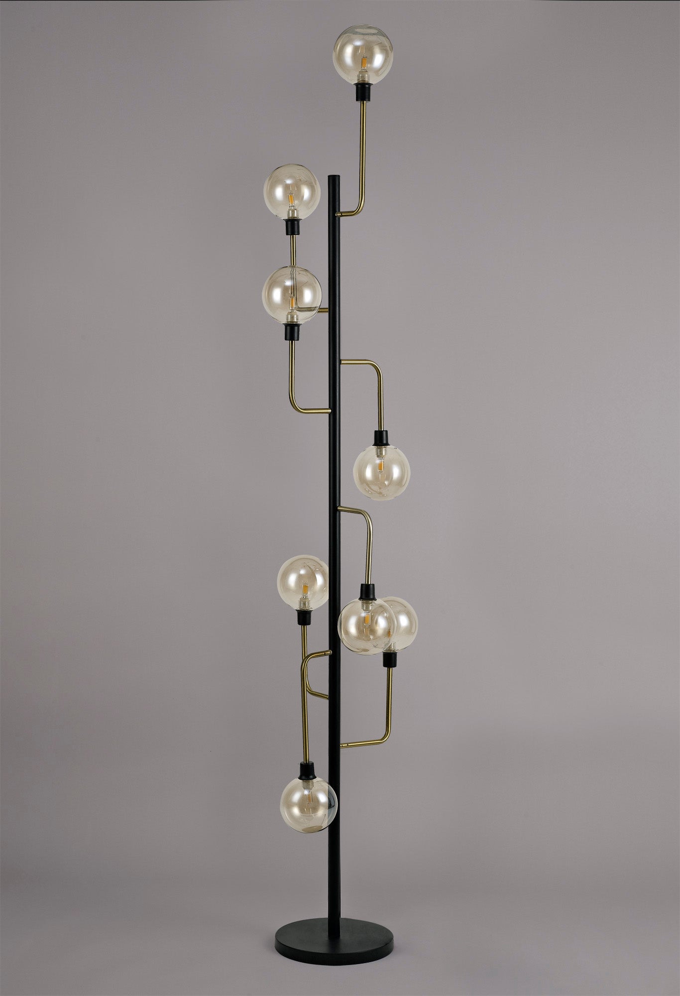 DEN5377 Denab 155cm Floor Lamp 8 Light in a Matt Black/Antique Brass/Cognac Finish