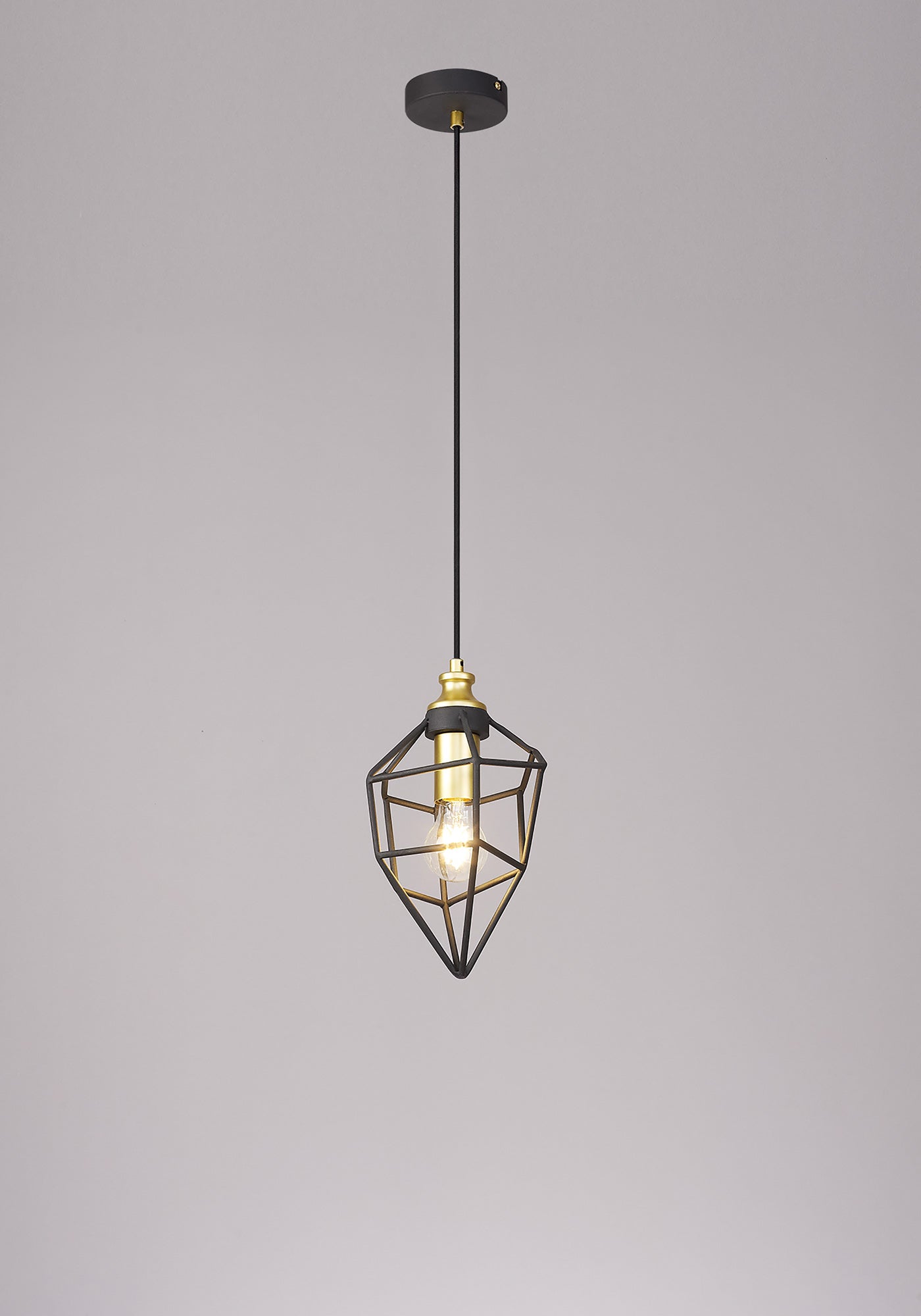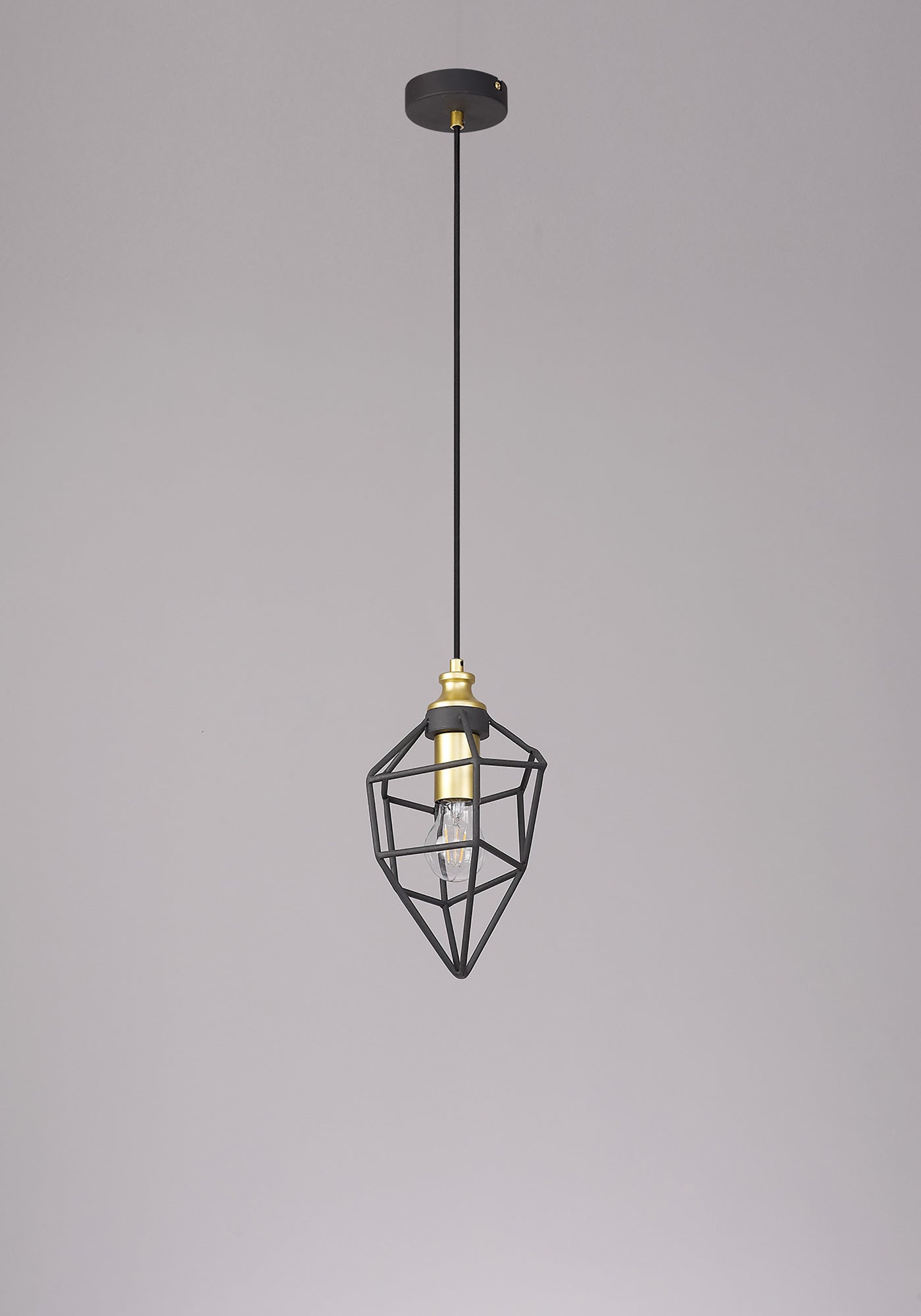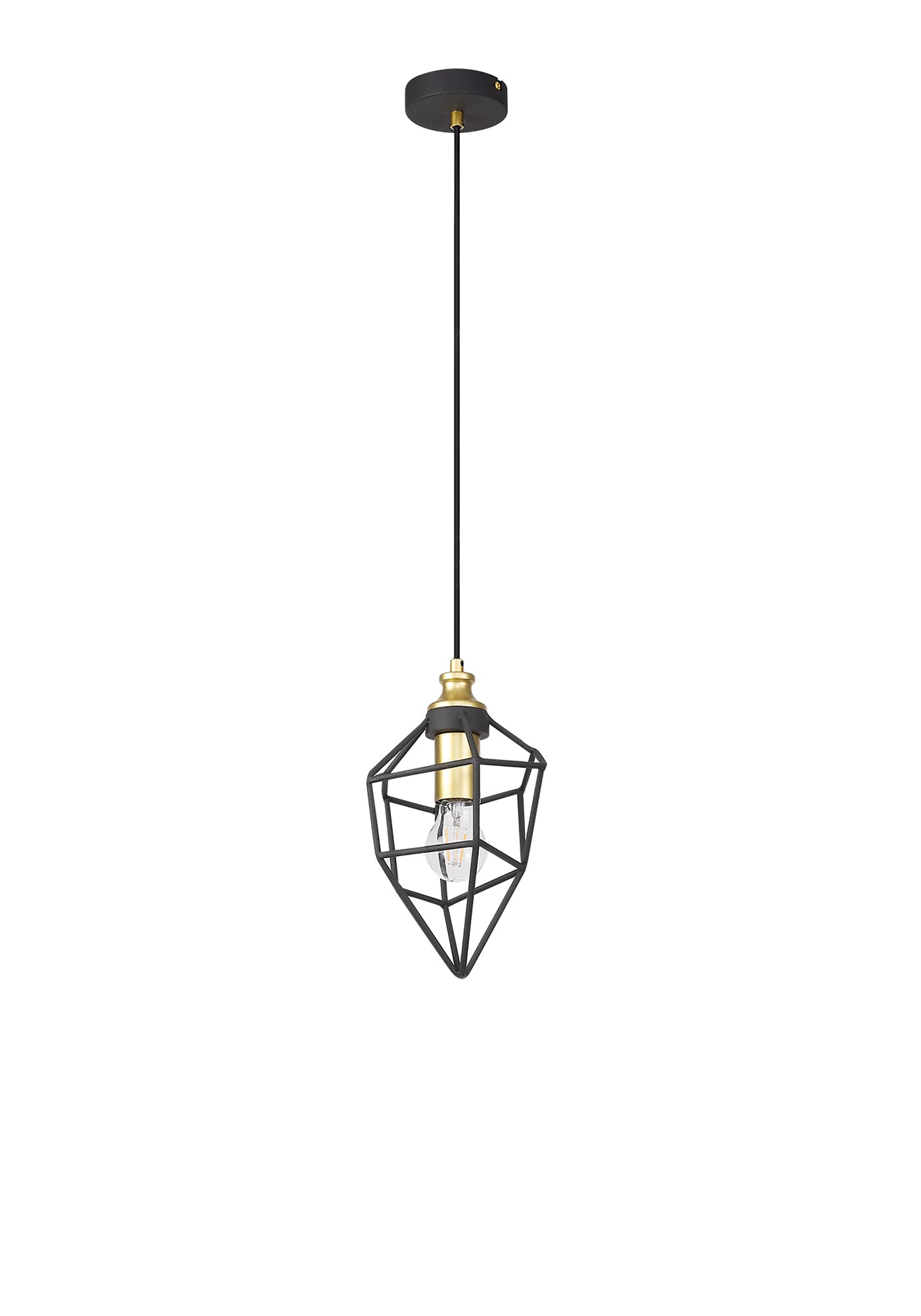 The open areas of the Dsiban single pendants form an uninhibited ambient distribution. Numerous different irregular shapes form the metal framework in three high quality colour options producing an overall acorn shape with distinctive narrow angled point. Available in three size these E27 pendants are sure to complement a modern edgy setting.