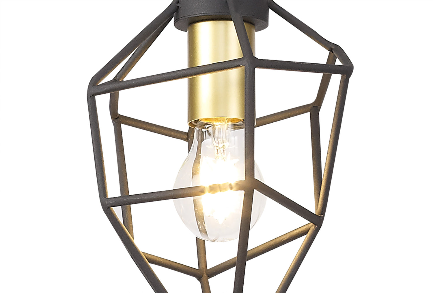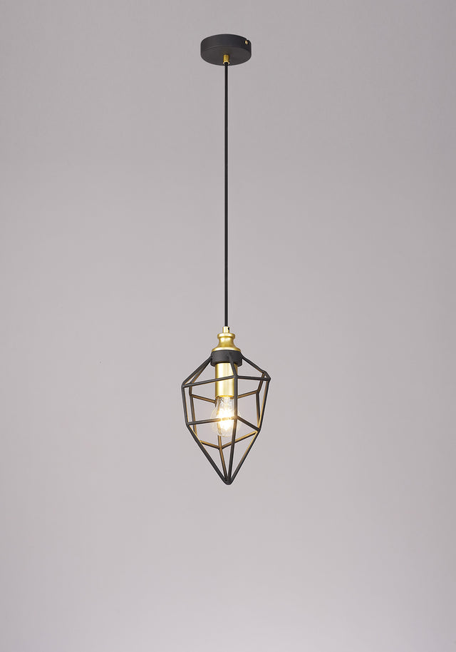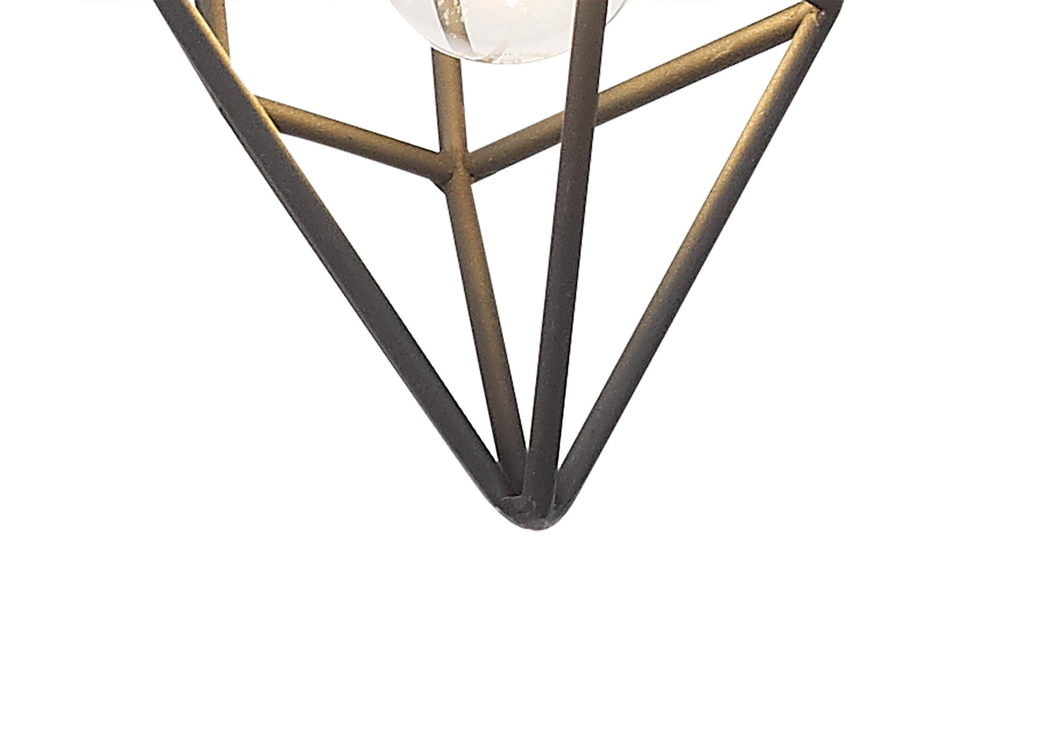 The open areas of the Dsiban single pendants form an uninhibited ambient distribution. Numerous different irregular shapes form the metal framework in three high quality colour options producing an overall acorn shape with distinctive narrow angled point. Available in three size these E27 pendants are sure to complement a modern edgy setting.