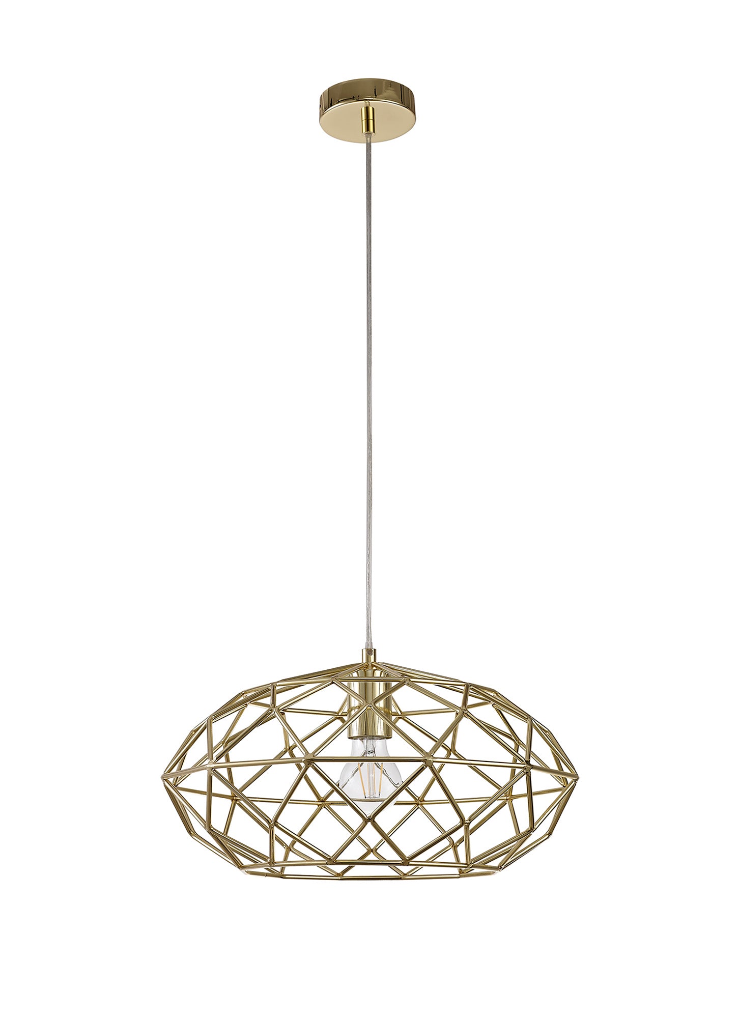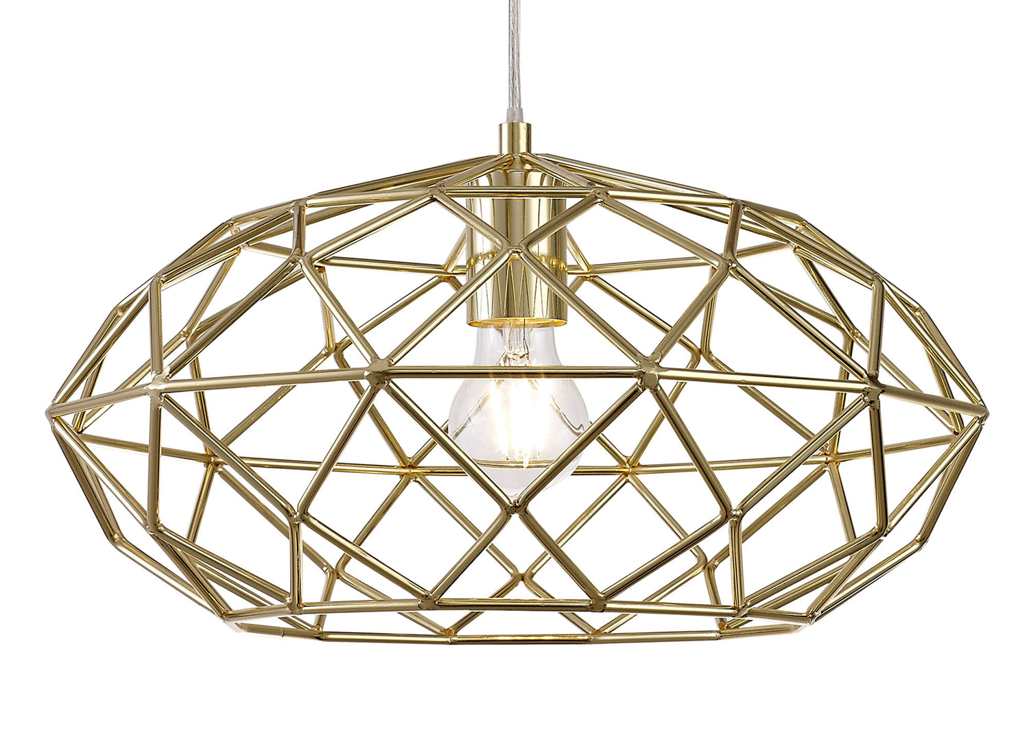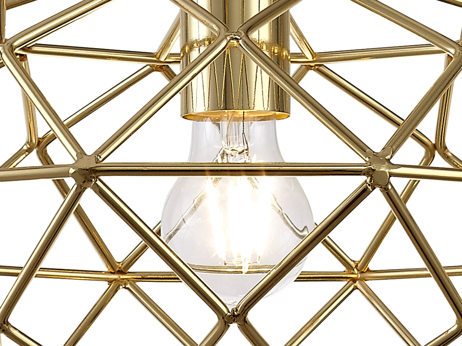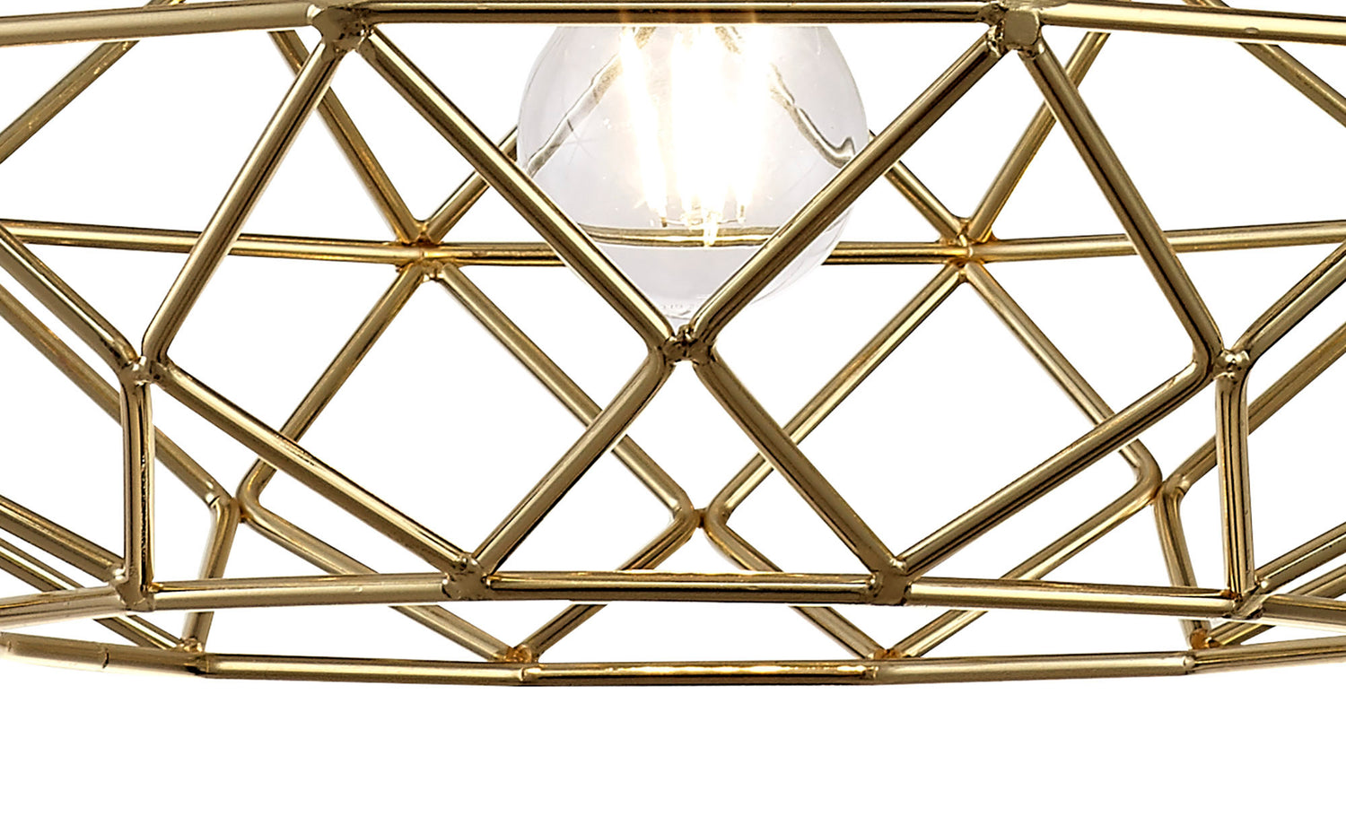 The Elbas collection is comprised of a trio of traditional lights, two pendants and one flush ceiling, each with their own unique shape. A body of open triangular and diamond shapes are tiled together to create a prismatic optical illusion around the singular E27 lampholders. A traditional polished brass finish ensures Elbas can be used to enhance the character and eye-catching design of a rustic of contemporary setting with optimum illumination.