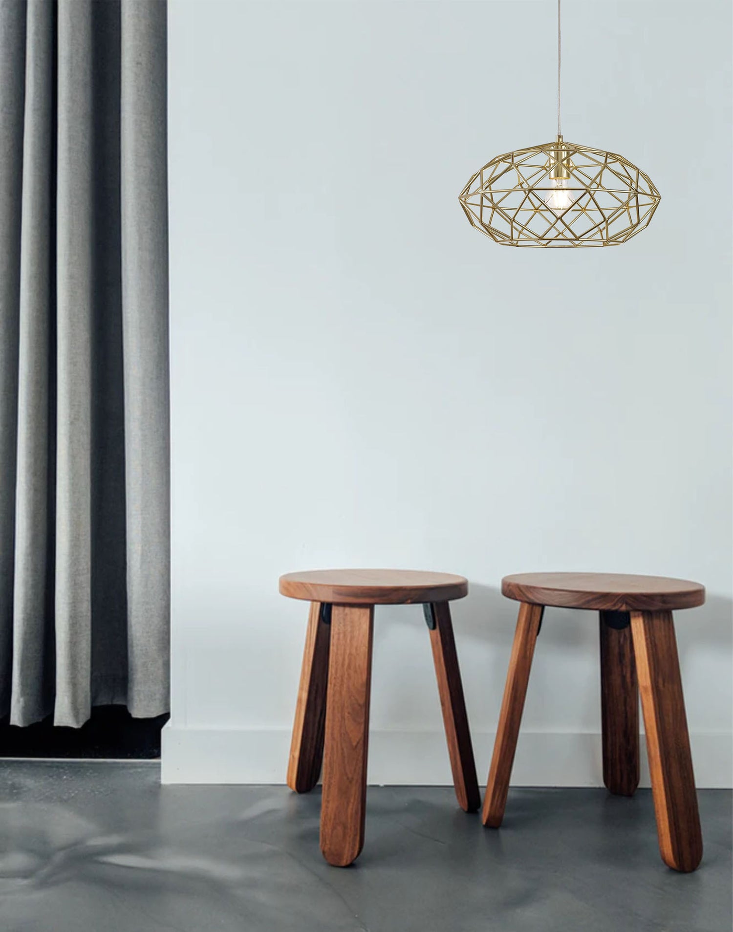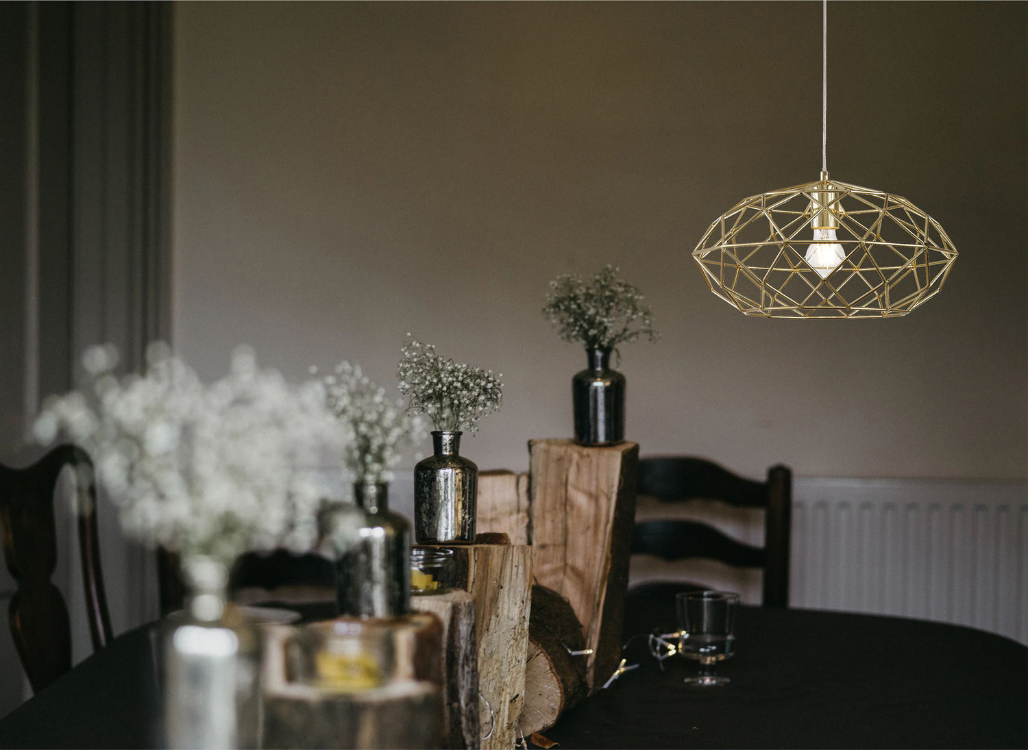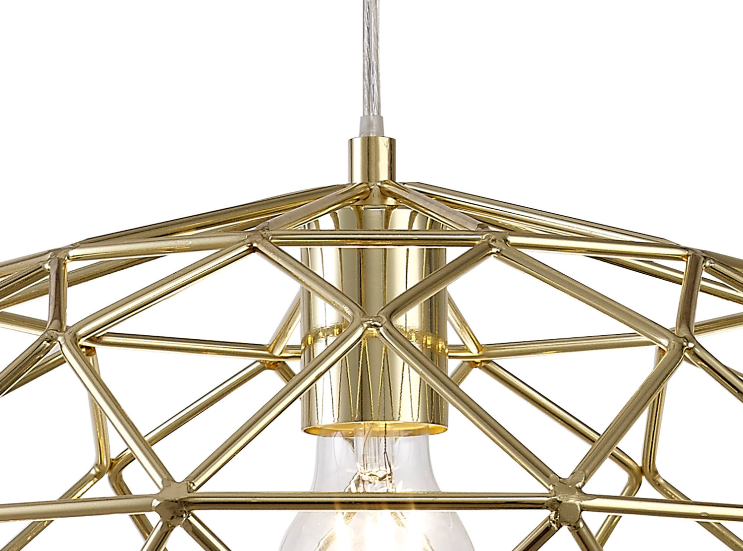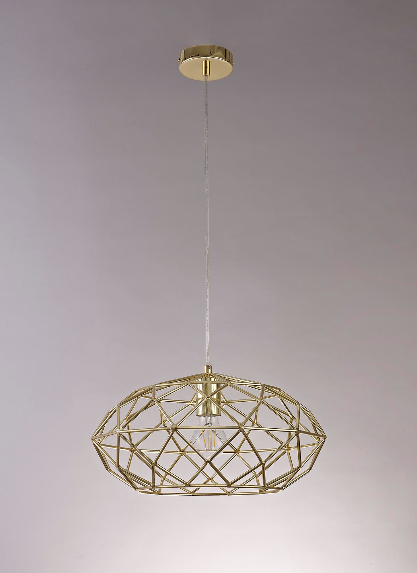 The Elbas collection is comprised of a trio of traditional lights, two pendants and one flush ceiling, each with their own unique shape. A body of open triangular and diamond shapes are tiled together to create a prismatic optical illusion around the singular E27 lampholders. A traditional polished brass finish ensures Elbas can be used to enhance the character and eye-catching design of a rustic of contemporary setting with optimum illumination.
