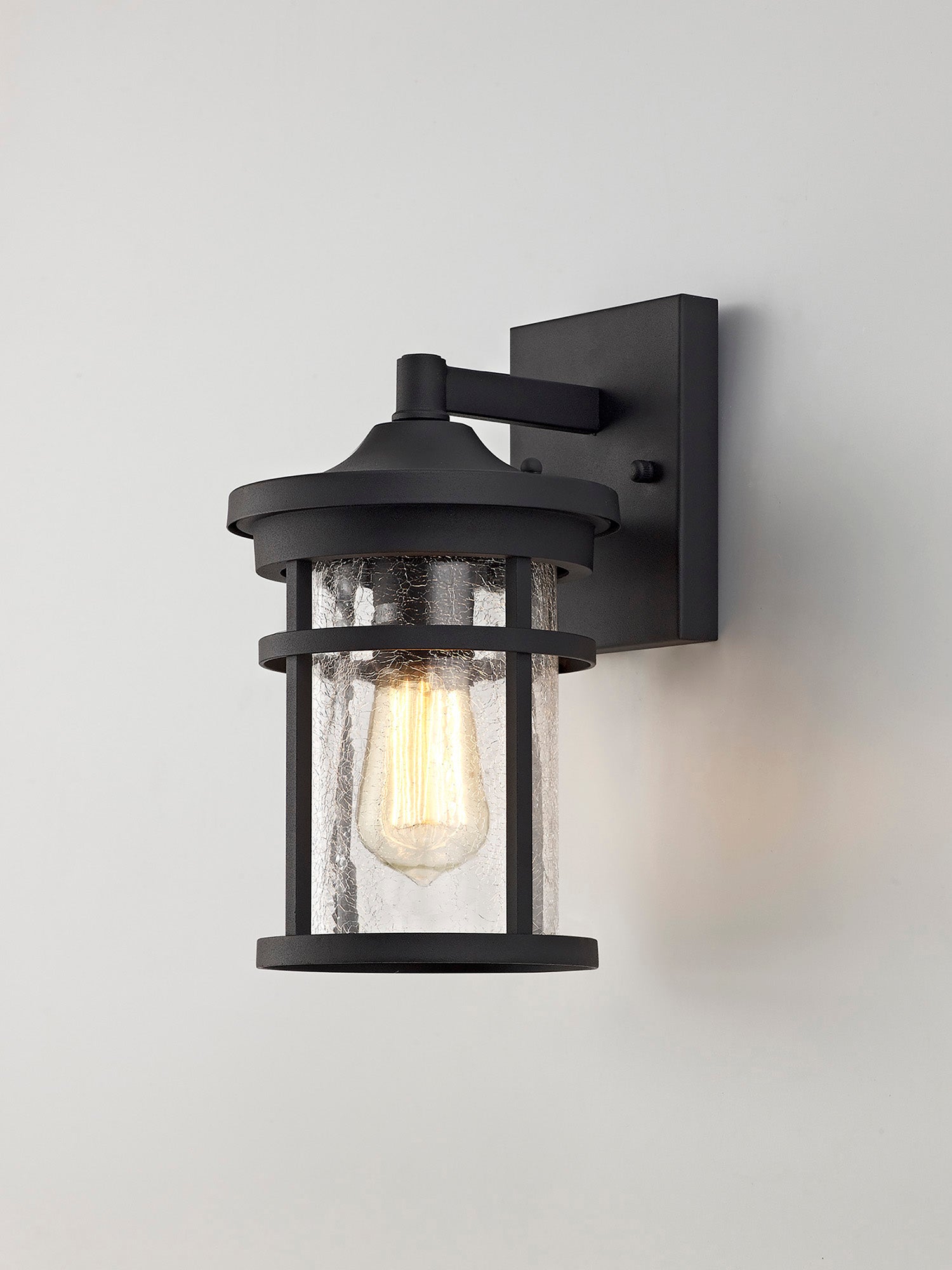 The most captivating feature of this IP54 outdoor collection is the crackled effect of the clear glass embedded into the black iron framework. This distressed feature offers a unique filtration of light from the E27 lampholder resulting in an attractive visual. The replicated lantern concept is seamlessly offset against the rustic glass to amplify an antique traditional presence ideal for gardens and outdoor seating areas.