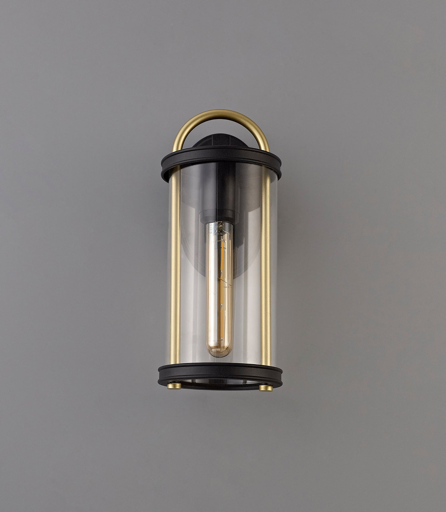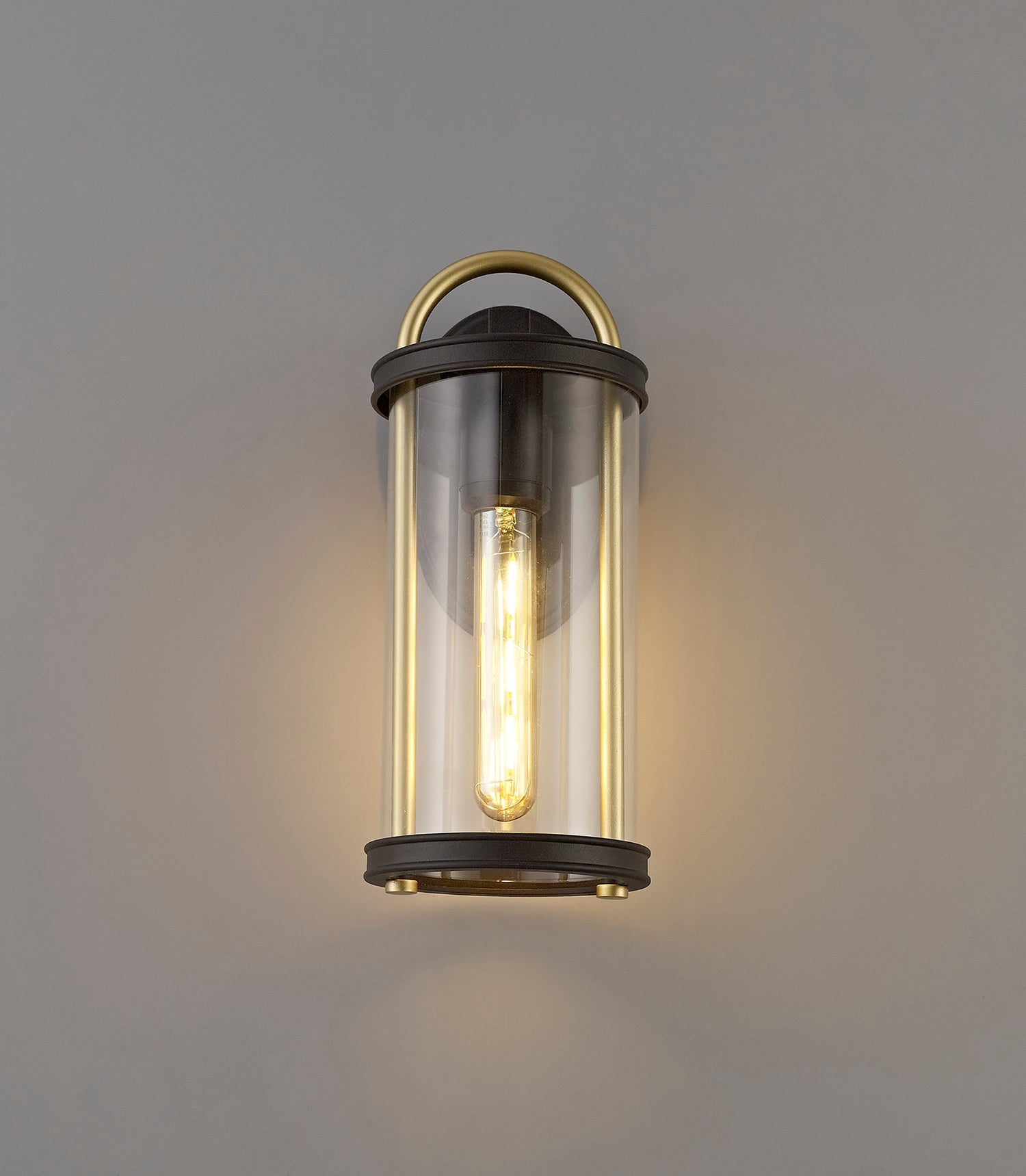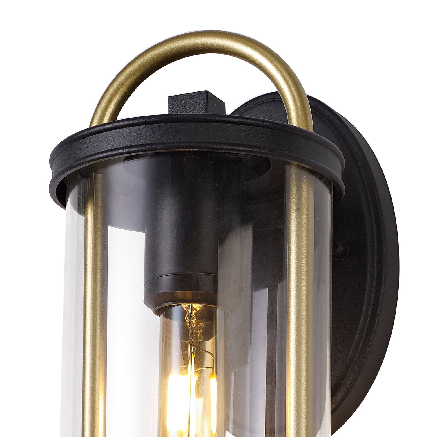 GAK2857 Gakyid Small Wall Lamp 1 Light IP54 Indoor/Outdoor Use in a Black/Gold/Clear Finish