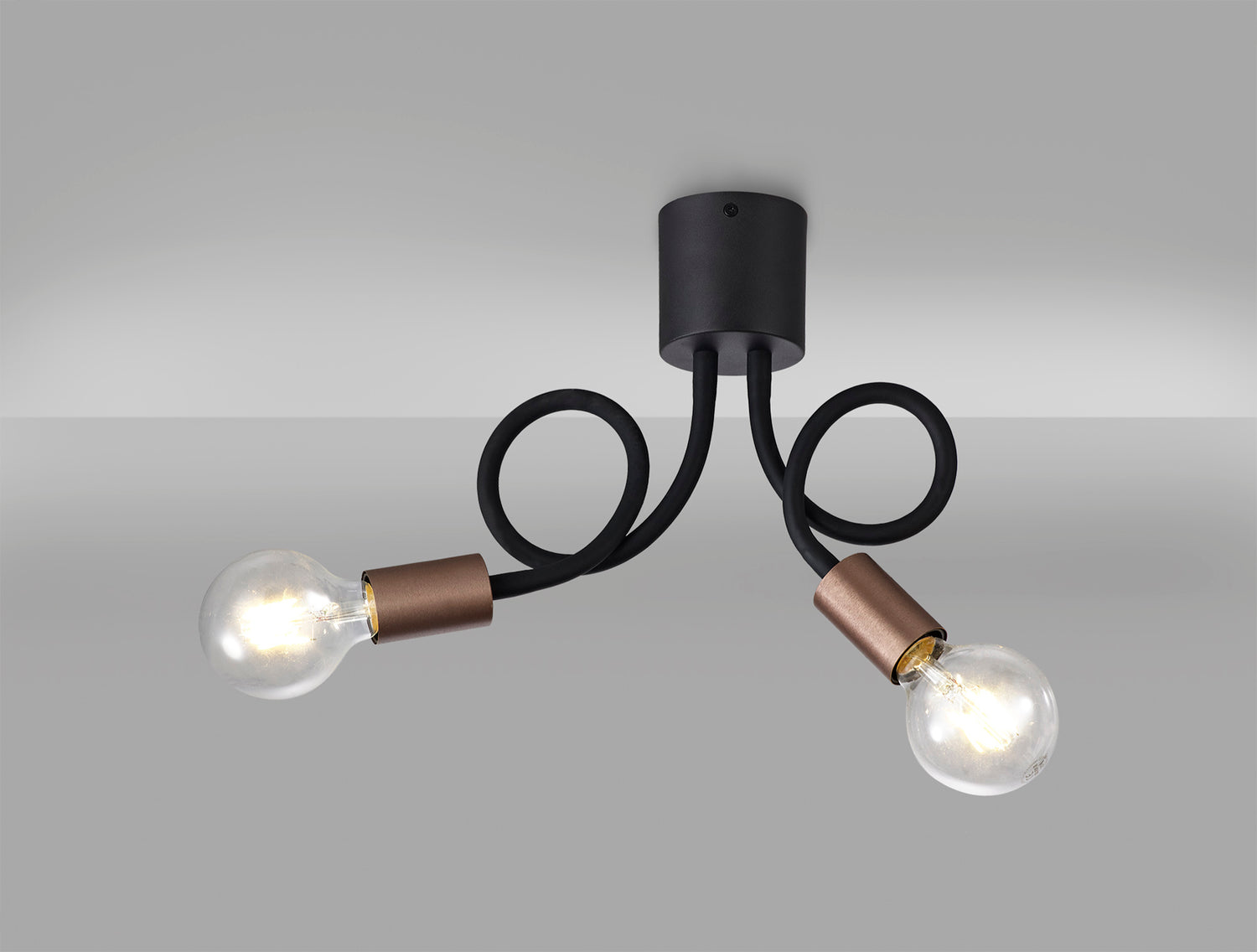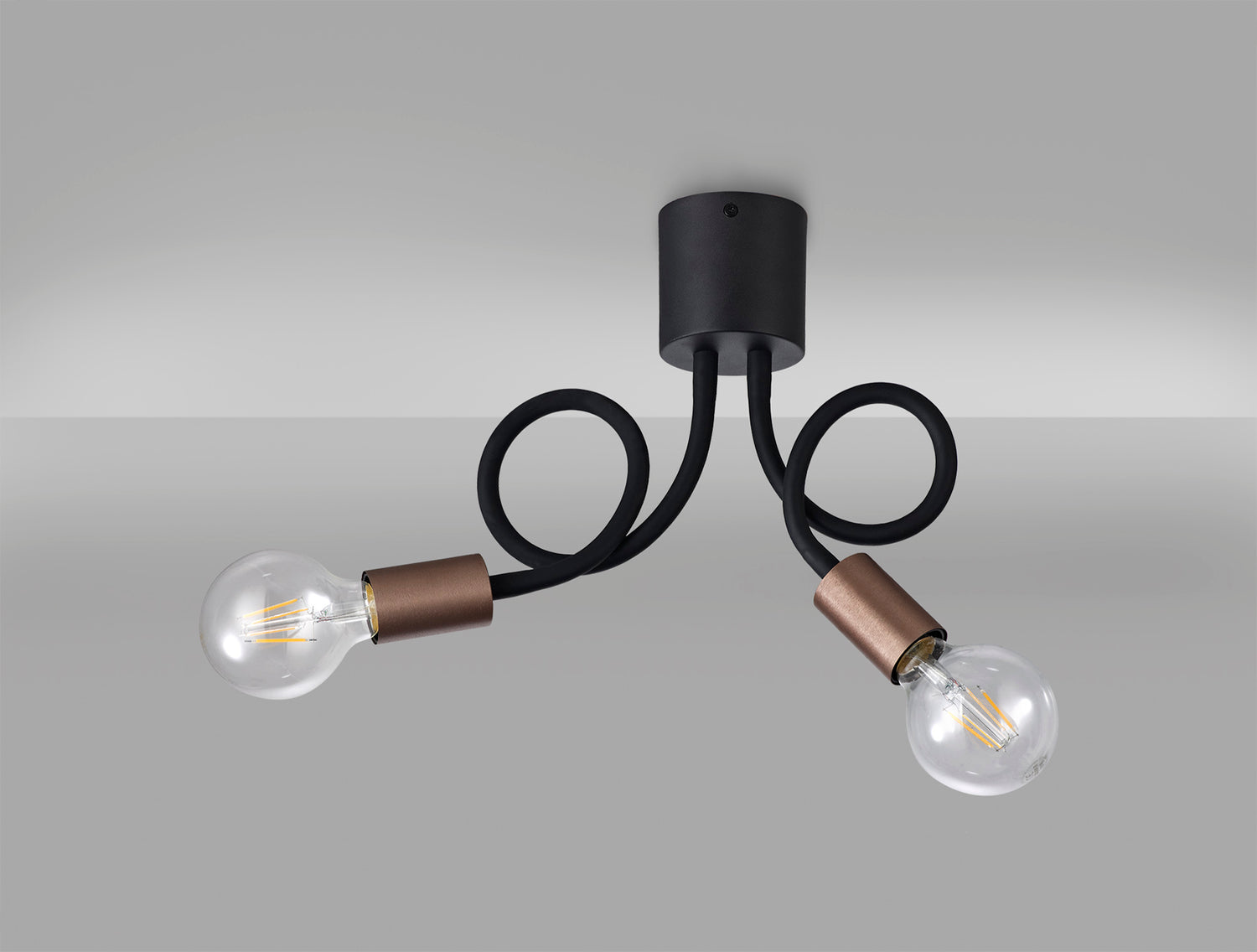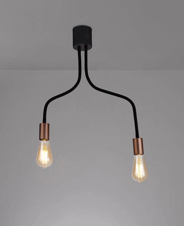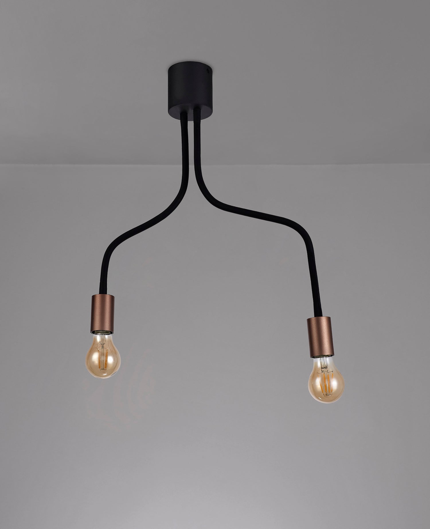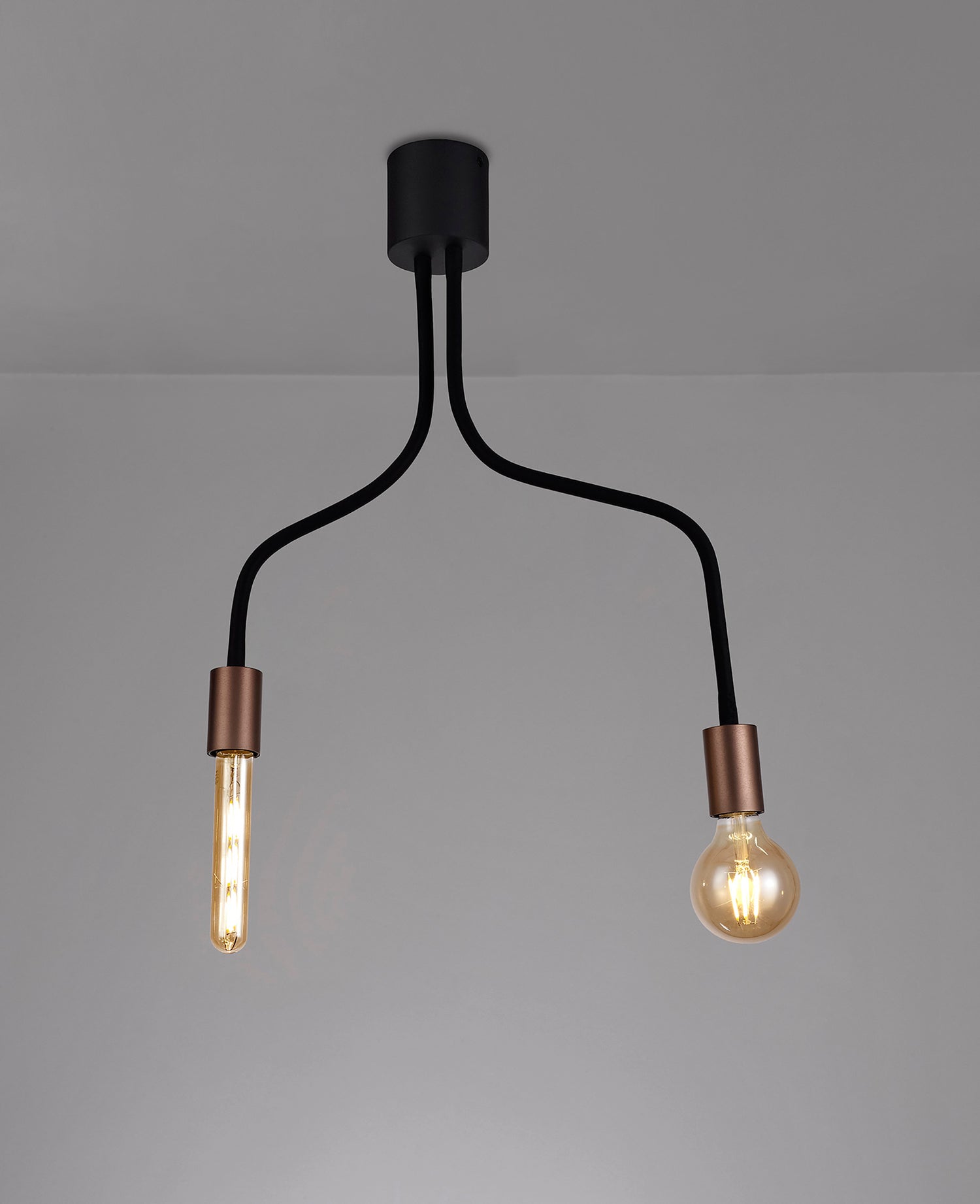 GIN4467 Ginan Flexible Ceiling 2 Light in a Satin Black/Brushed Copper Finish