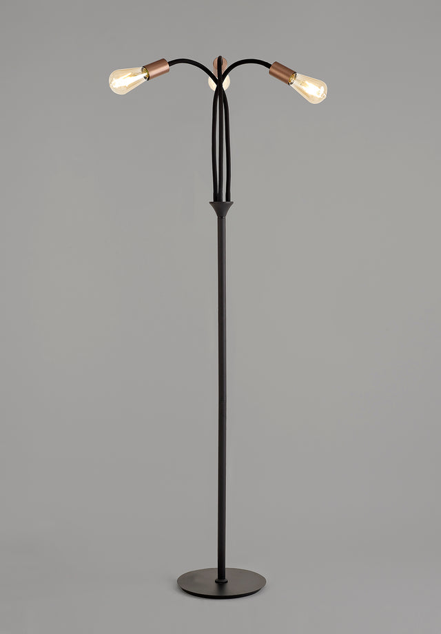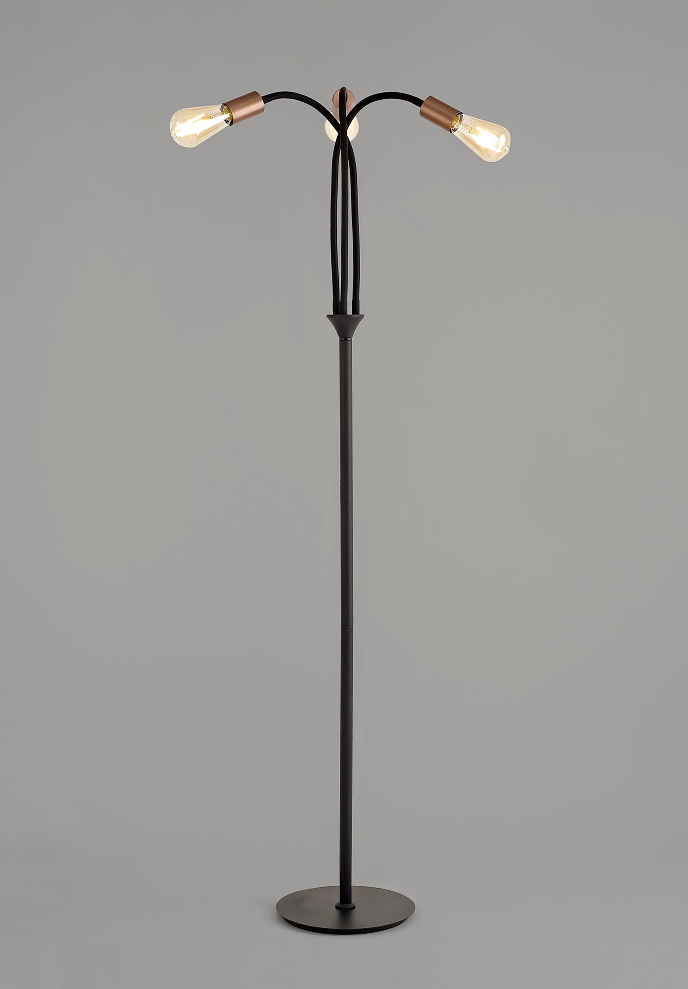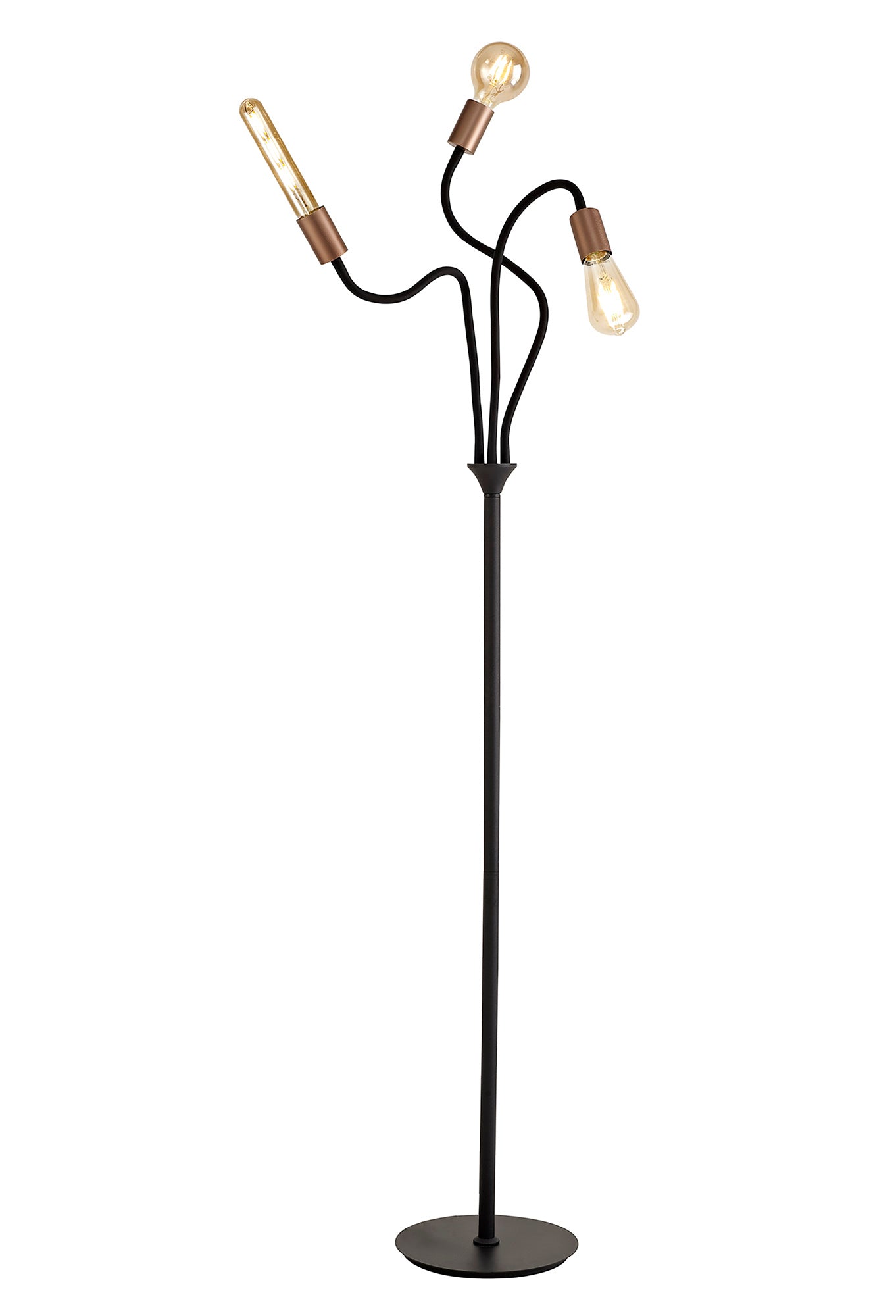 GIN9467 Ginan 163cm Flexible Floor Lamp 3 Light in a Satin Black/Brushed Copper Finish