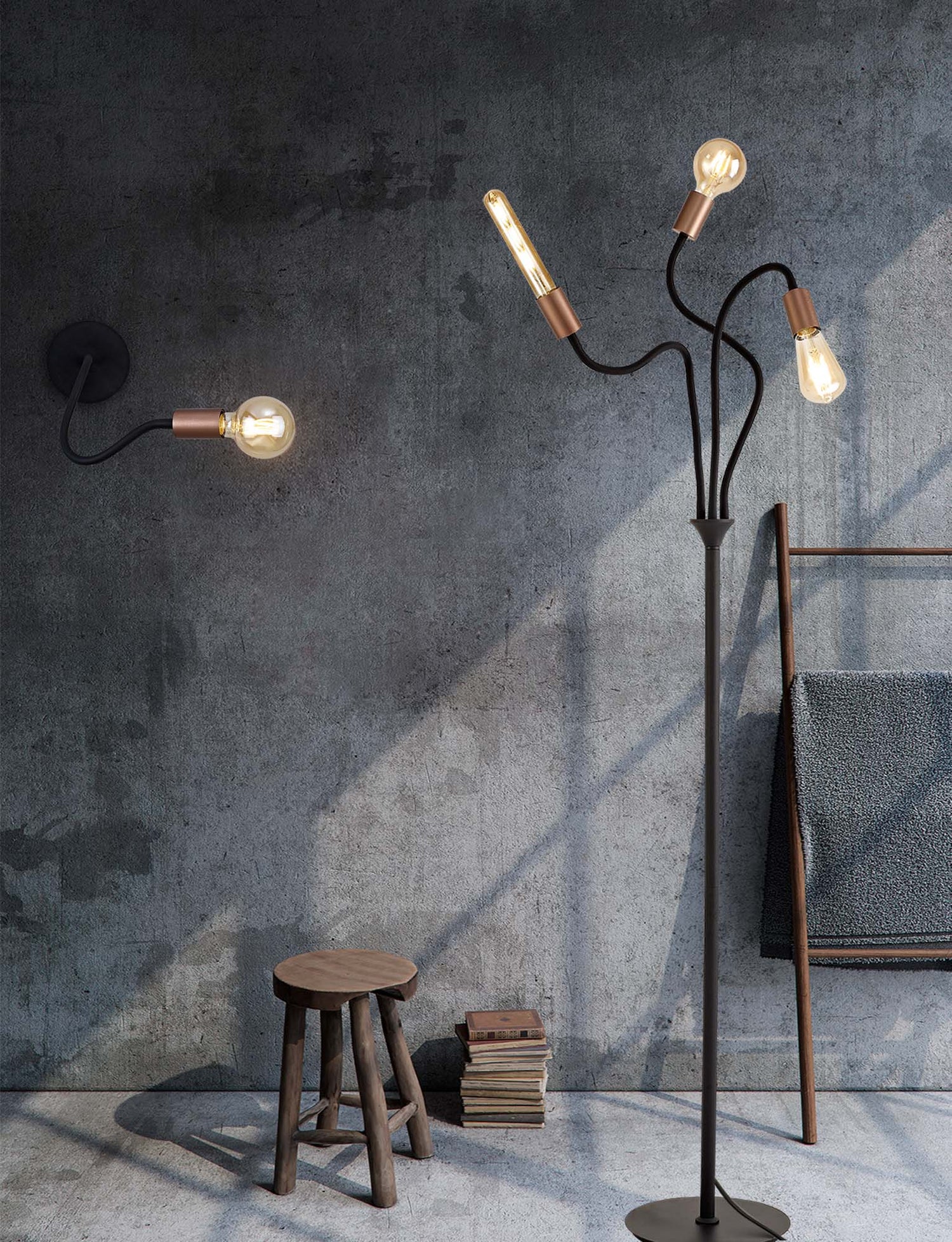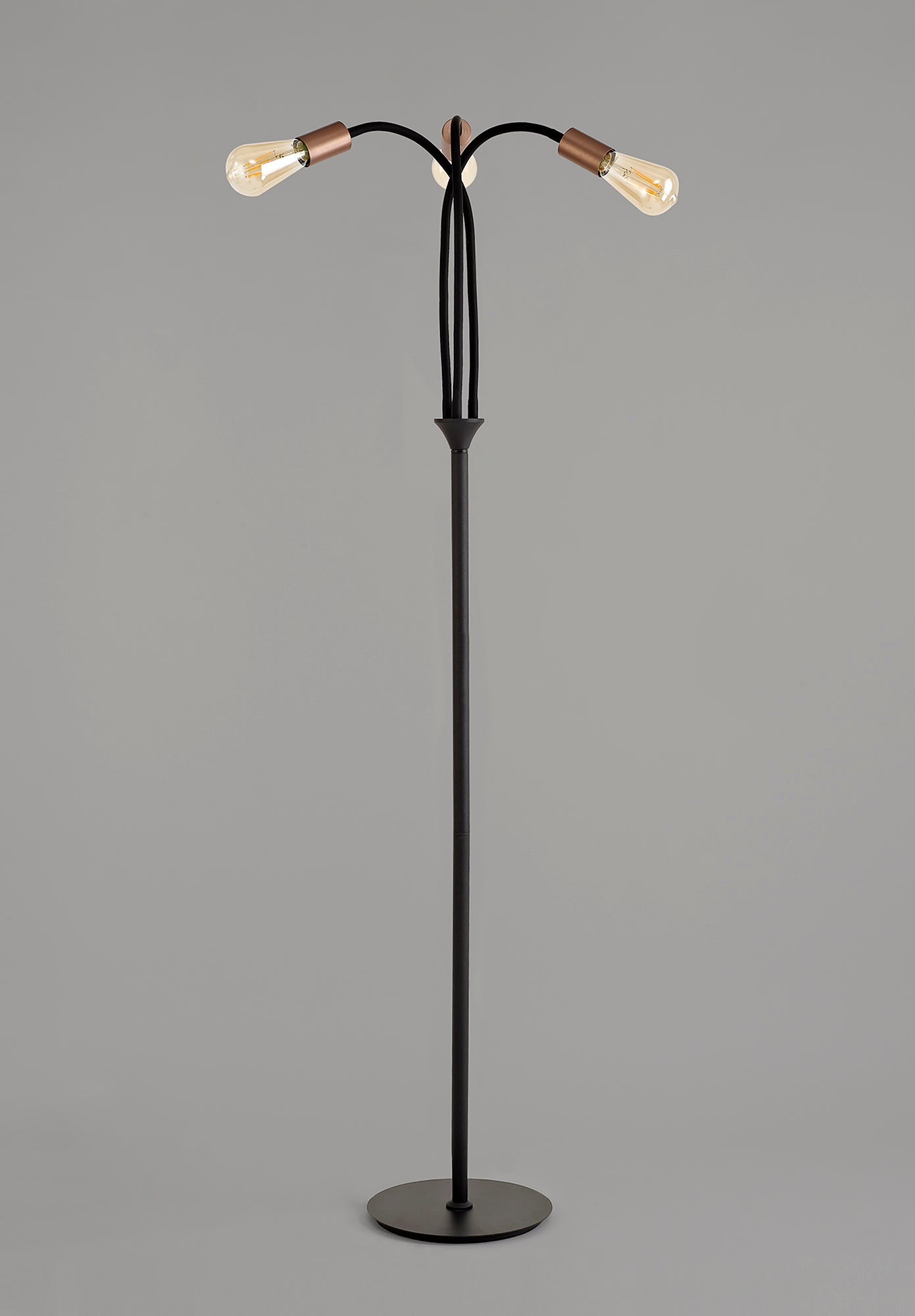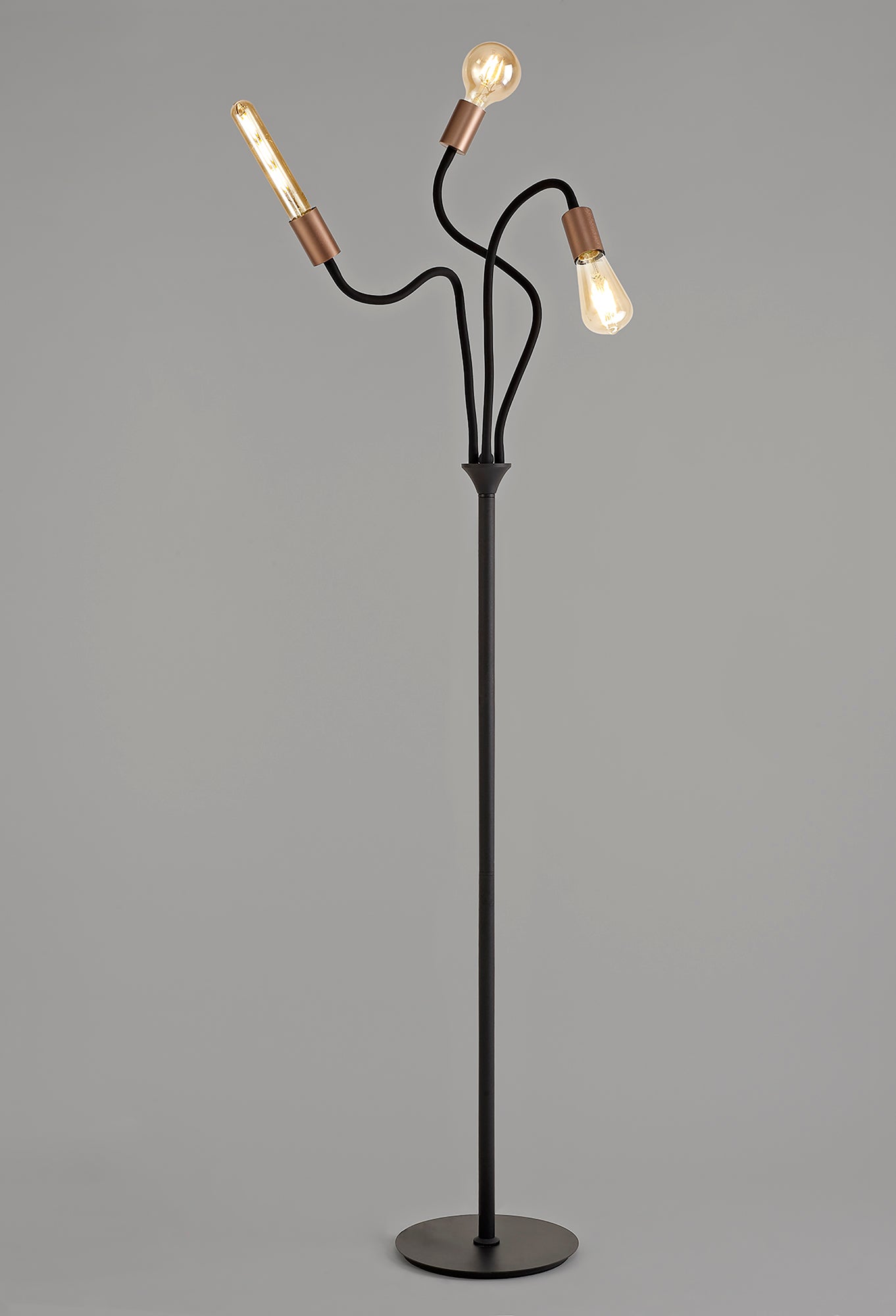 GIN9467 Ginan 163cm Flexible Floor Lamp 3 Light in a Satin Black/Brushed Copper Finish