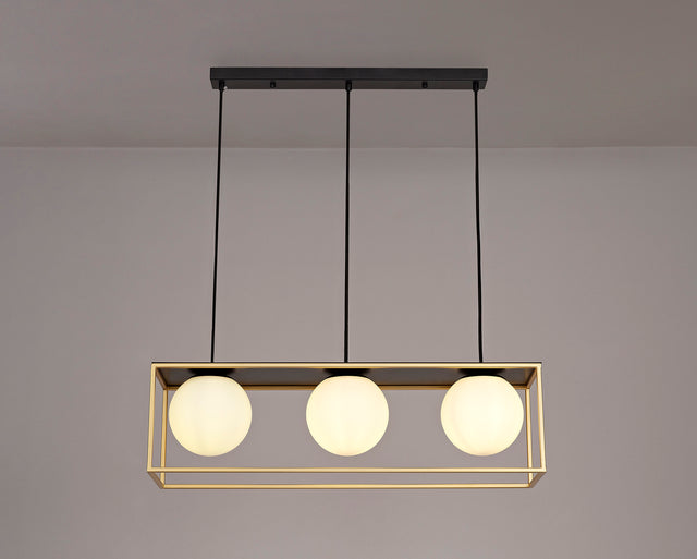 HAM4657 Hamel Linear Pendant 3 Light in a Matt Black/Gold/Frosted Finish