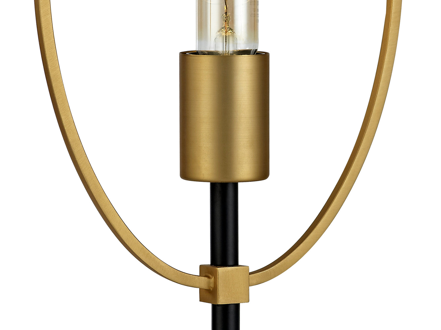 The Hunor range uses a minimal amount of framework to ensure the optimum amount of light is provided from the maximum 60W E27 lamp used, without compromising the unique and attractive design. The singular hoop around the lampholder is enhanced by the sand gold colour finish which perfectly offsets against the matt black plates and cable giving an art deco atmosphere. This concept can be even furthered if used in conjunction with a rustic decorative lamp to complete the look.