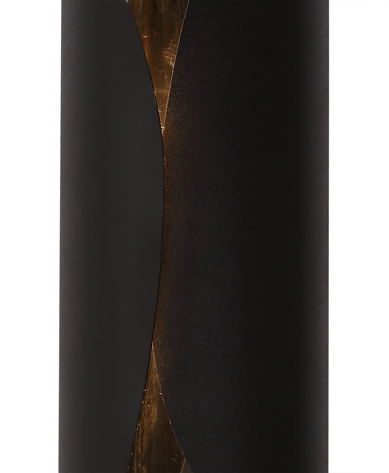 The metal plating of the Imai LED wall lamp is rolled into a curved overlapping shape creating an original housing for the integral 3000K LEDs. Available with an outer colour finish of either sand black or sand white, the inner coating of both wall lamps is a highly polished chrome, supplying a further augmentation of light reflection.