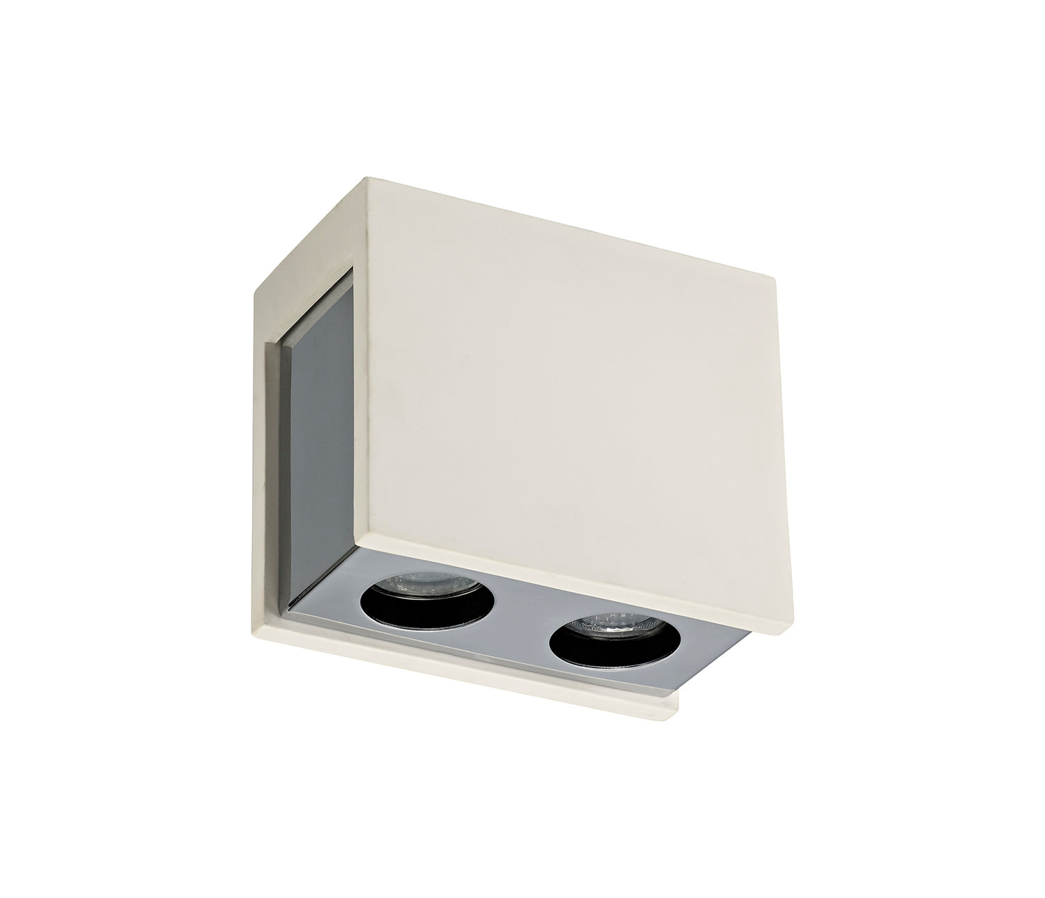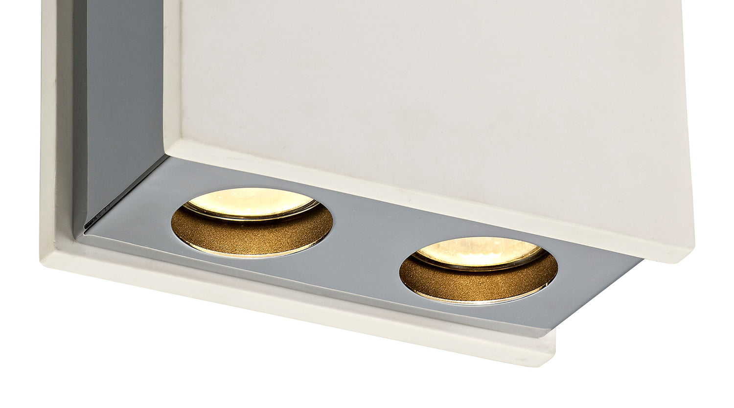 This industrial collection can be applied to either a domestic or commercial setting, the secure surface mount base hosts the GU10 lampholders in both the one and two light versions. The standard colour finish is white but the gypsum material allows for the product to be painted in the consumers chosen colour to better comply with the theme of the room setting. If a standard cover is required, Itan also offers separate covers available in either matt white, matt black or polished chrome.