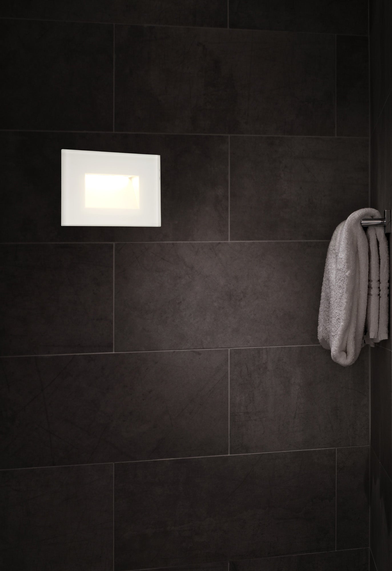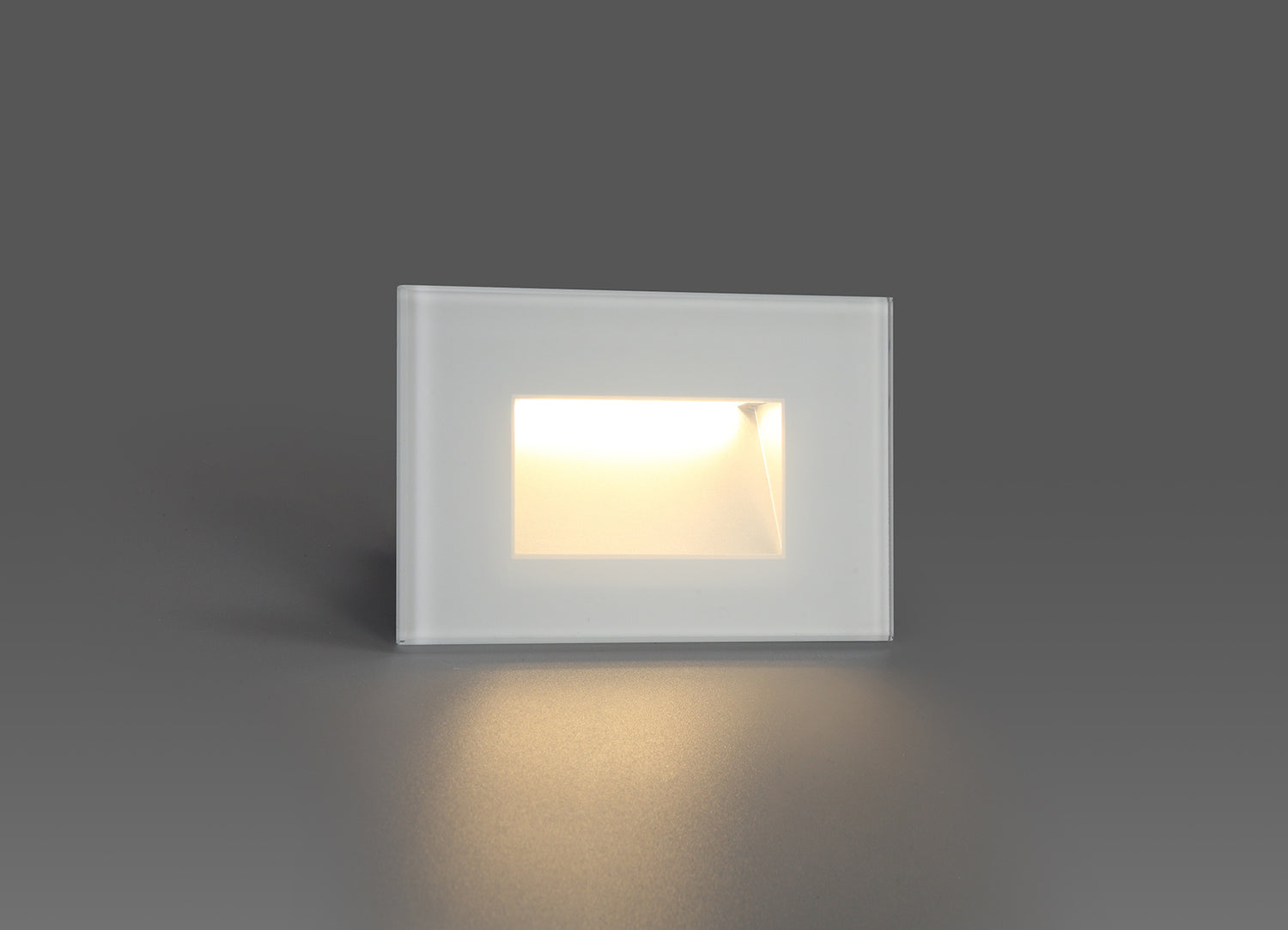 KAV9287 Kaveh Rectangle Recessed Glass Wall Lamp 3.3W LED IP65 Outdoor in a White Finish