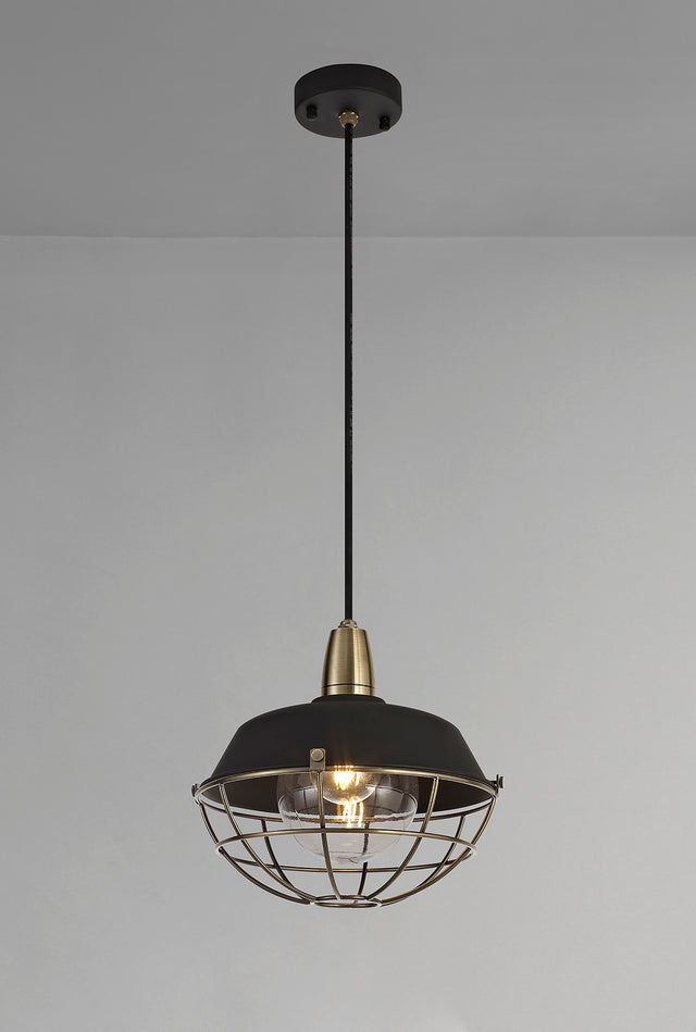 KRA7487 Kraz Pendant 1 Light IP65 Outdoor in a Matt Black/Antique Brass/Clear Finish