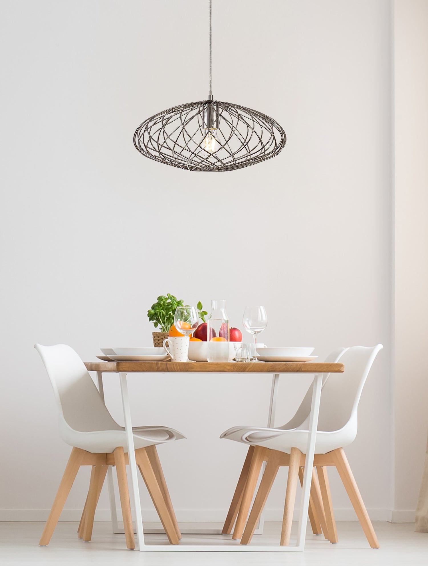The Laranag range hosts a trio of traditional pendants with distinctly varied shapes. Their composition of hollow diamonds encircle the single E27 lampholder of each fitting. This structure is available as either an elliptical sphere, curved cylinder or sphere shape, to suit your personal preference. Laranag can be used with various lamps to adapt each pendant to a different setting; a cool white LED lamp could be used for a more modern ambience or you could opt for a vintage LED lamp to create a rustic urban environment.