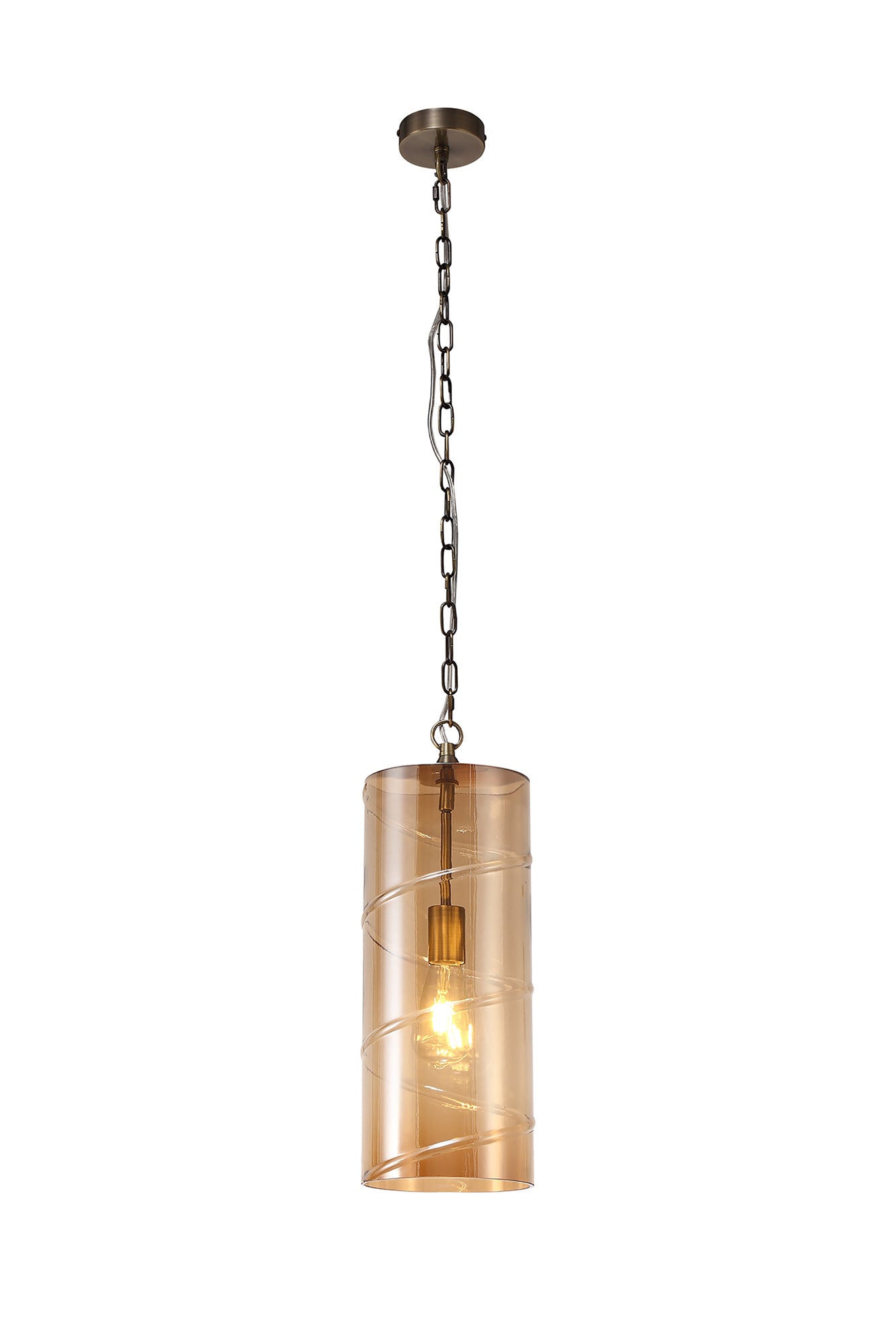 LUD9657 Ludo Pendant 1 LIght in a Antique Brass/Amber Finish