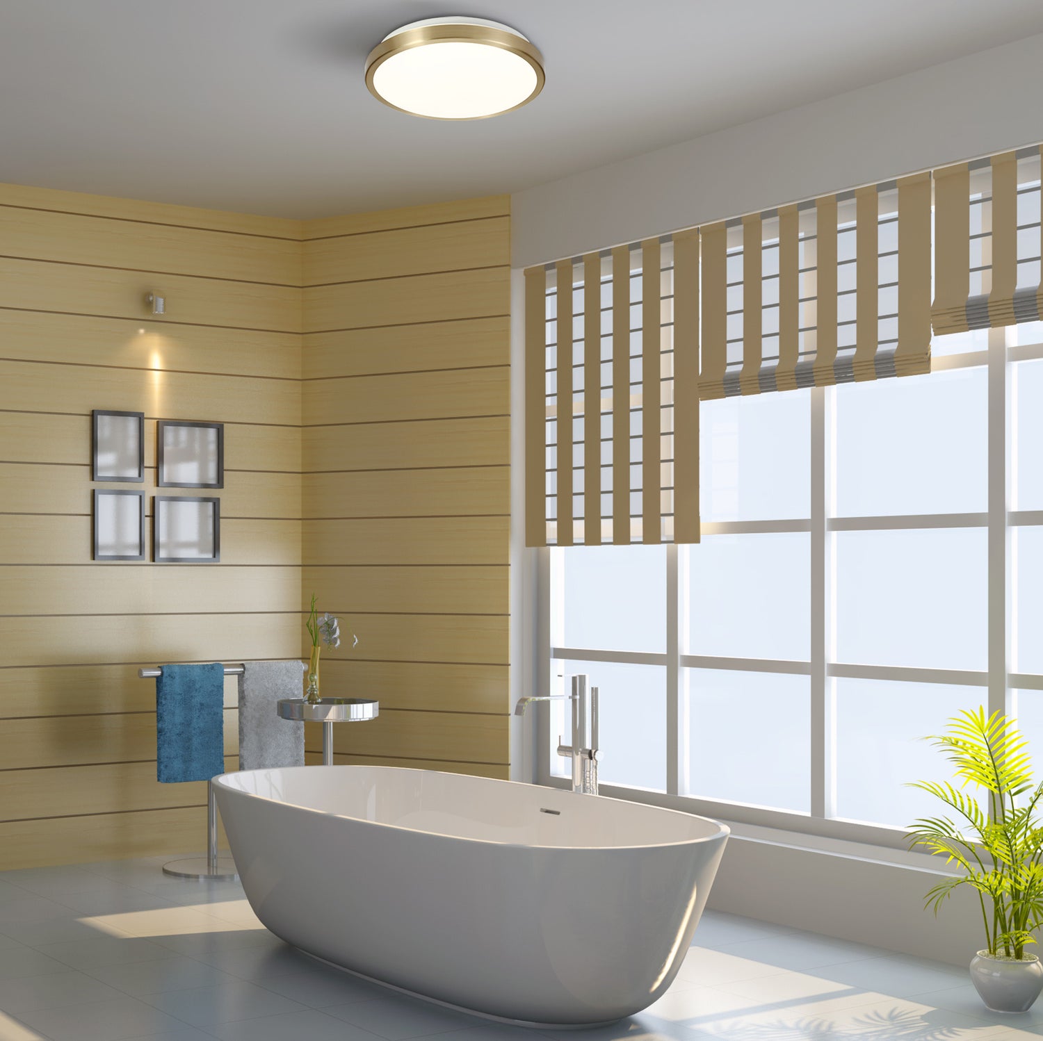 Menkib is a flush IP44 rated circular ceiling light which houses 4000K integral LEDs with a total 12W output. The high quality LEDs are diffused by a substantial opal glass which is bordered by either a soft bronze or satin nickel frame making them an ideal contemporary bathroom lighting solution.