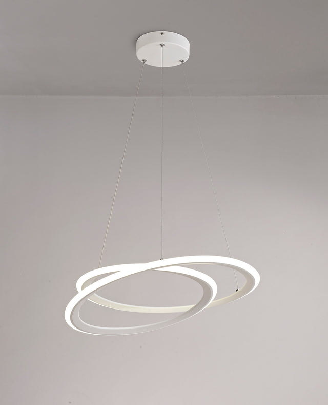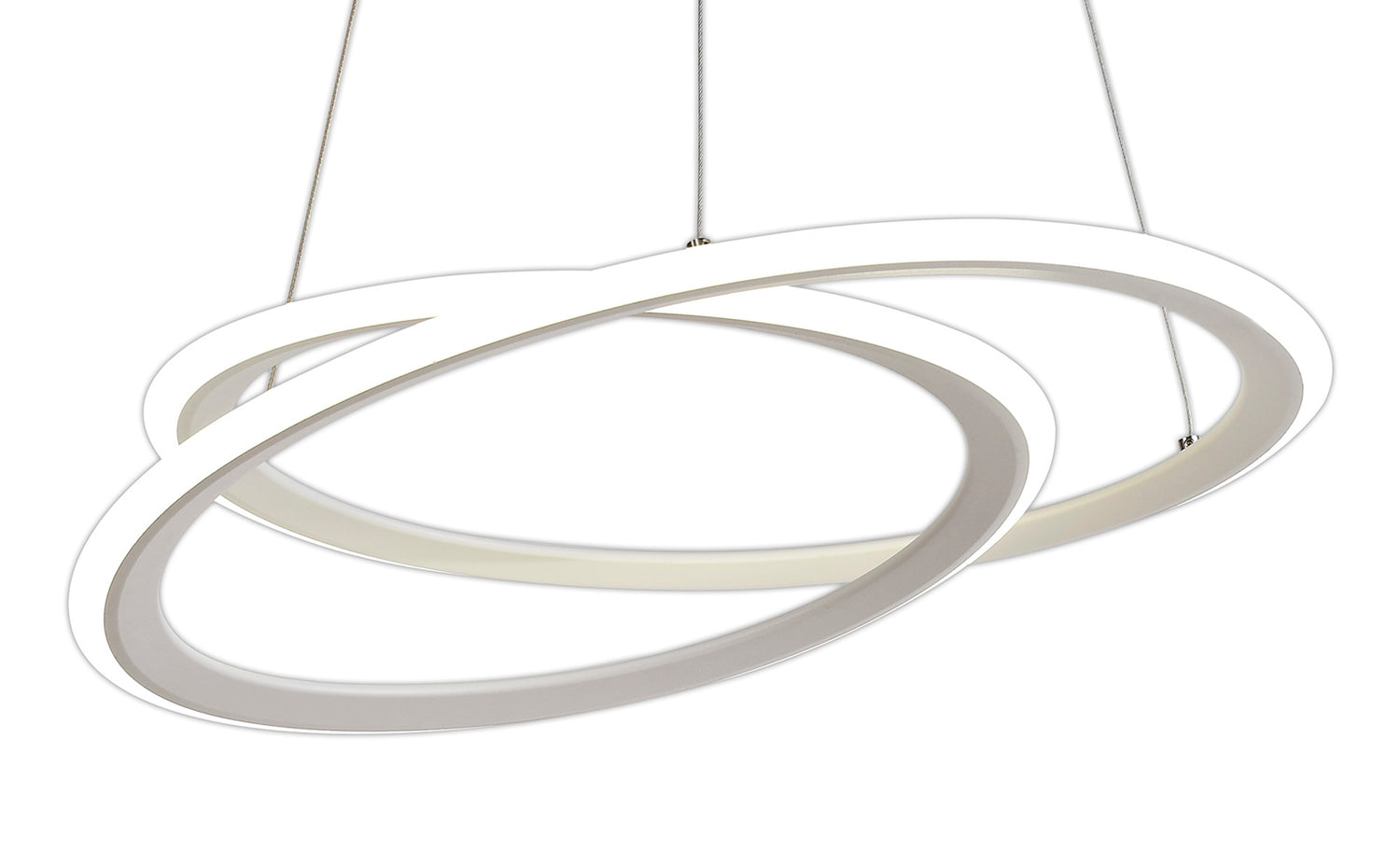 An ultra-modern LED pendant, Mintaku situates two large rings of 4000K light offset and slightly angled away from one another to give the style more depth and dimension without compromising the impact from the impressive integral LED output. This pendant also comes equipped with a 3-step dimming function if the given setting requires a lower level of illumination.