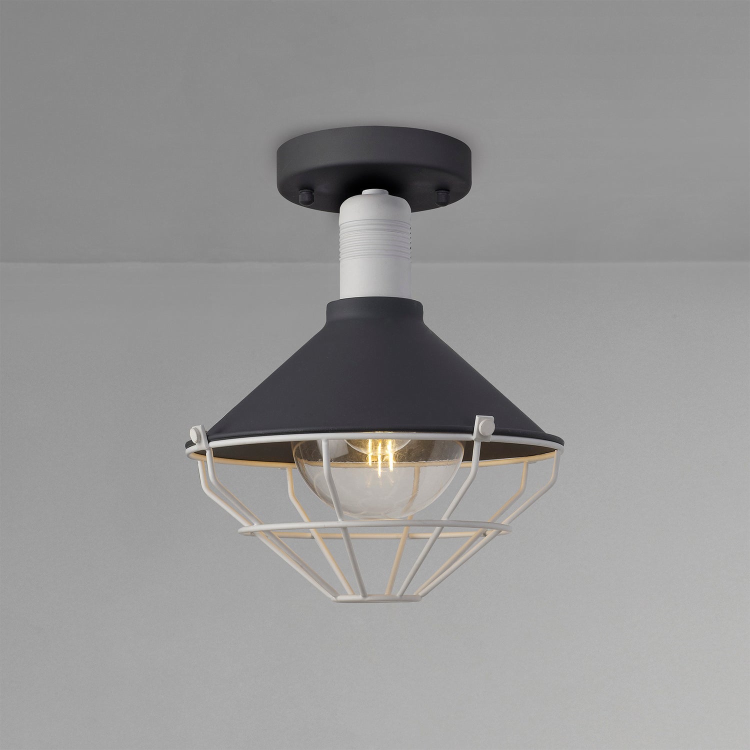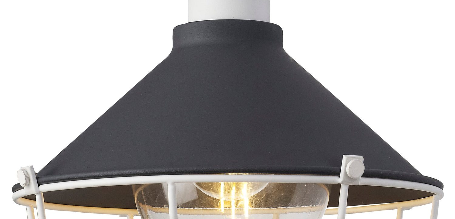 With an IP65 rating this outdoor collection Ogma, can be used in a wider range of exterior settings. The ceiling, pendant, and wall lamp all take an E27 lamp, each sheltered beneath the anthracite octagon shade. The Matt White caging fixed to the bottom of the shade creates an octagonal prism outline and stylishly contrasts the anthracite finish. As standard outdoor lighting tends to have its own niche, this collection stands out because it uniquely takes a design concept more commonly seen on indoor lighting and makes it IP rated.