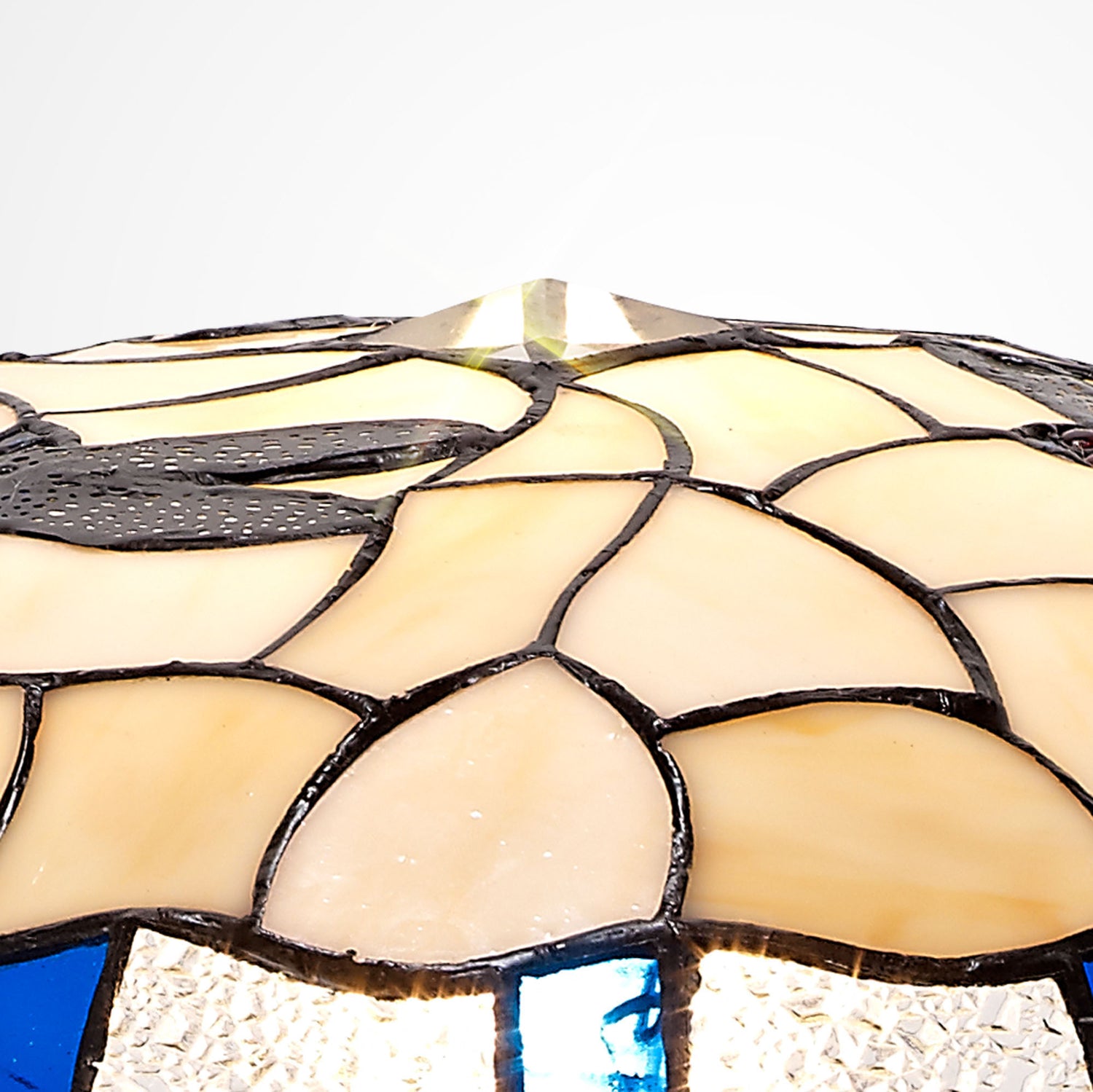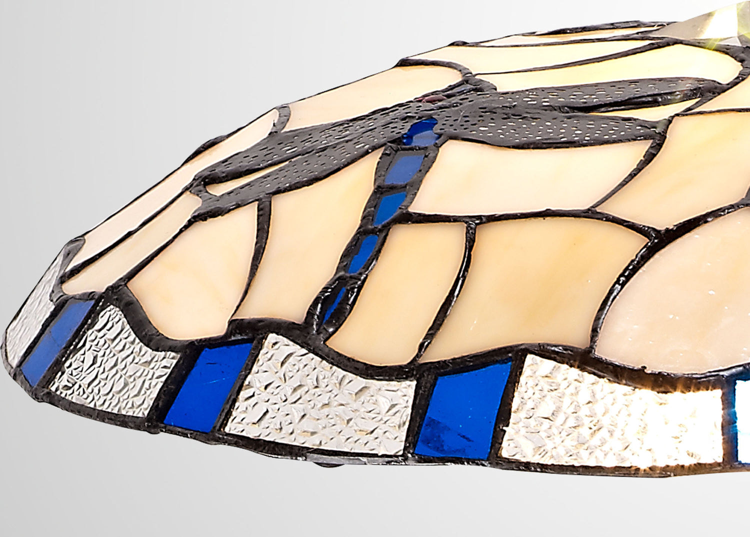 A classically traditional Tiffany shade collection, Ozaki pairs primary colours with a more neutral cream to create a balanced combination of beautiful Tiffany glass. The familiar dragonfly pattern is slightly modernised with the clear crystal pieces in place of the more expected glass drops adding a touch of sparkle for a new age. Designed for use with an uplighter kit, Ozaki is a perfect representation of all Tiffany glass has to offer.