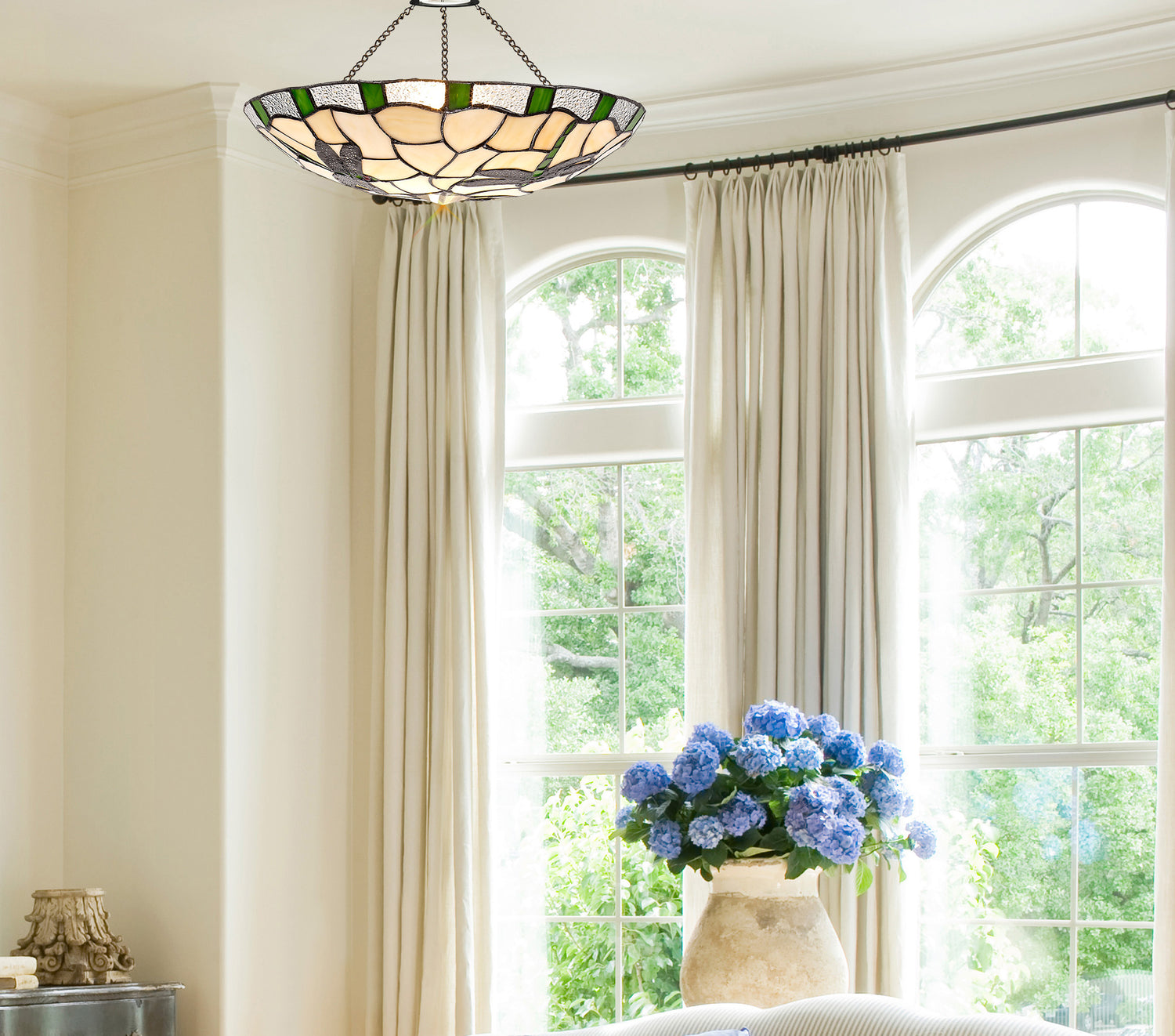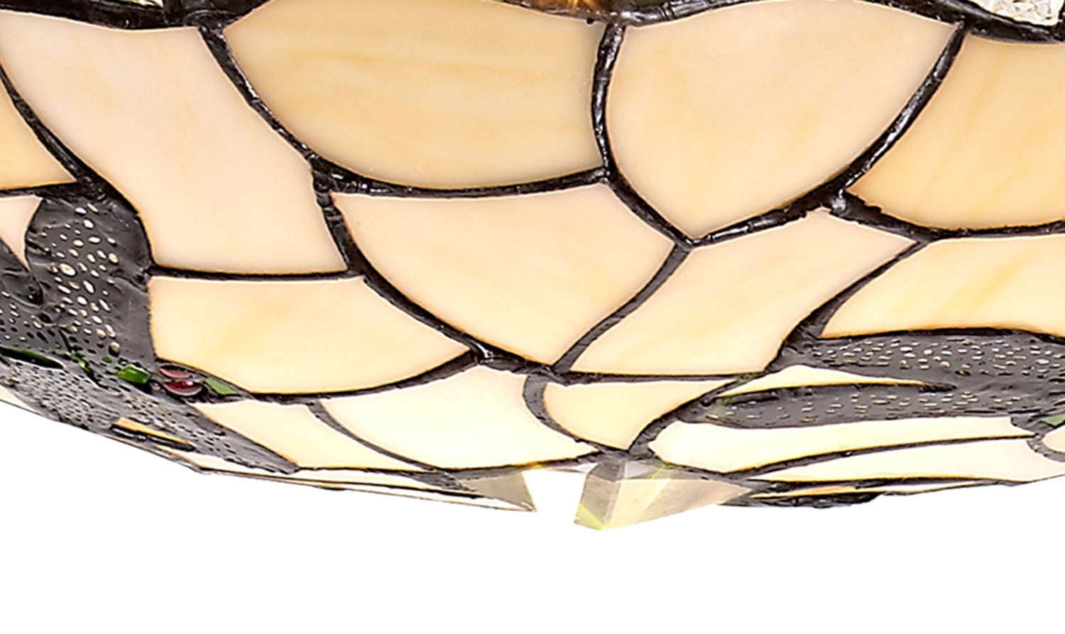 A classically traditional Tiffany shade collection, Ozaki pairs primary colours with a more neutral cream to create a balanced combination of beautiful Tiffany glass. The familiar dragonfly pattern is slightly modernised with the clear crystal pieces in place of the more expected glass drops adding a touch of sparkle for a new age. Designed for use with an uplighter kit, Ozaki is a perfect representation of all Tiffany glass has to offer.
