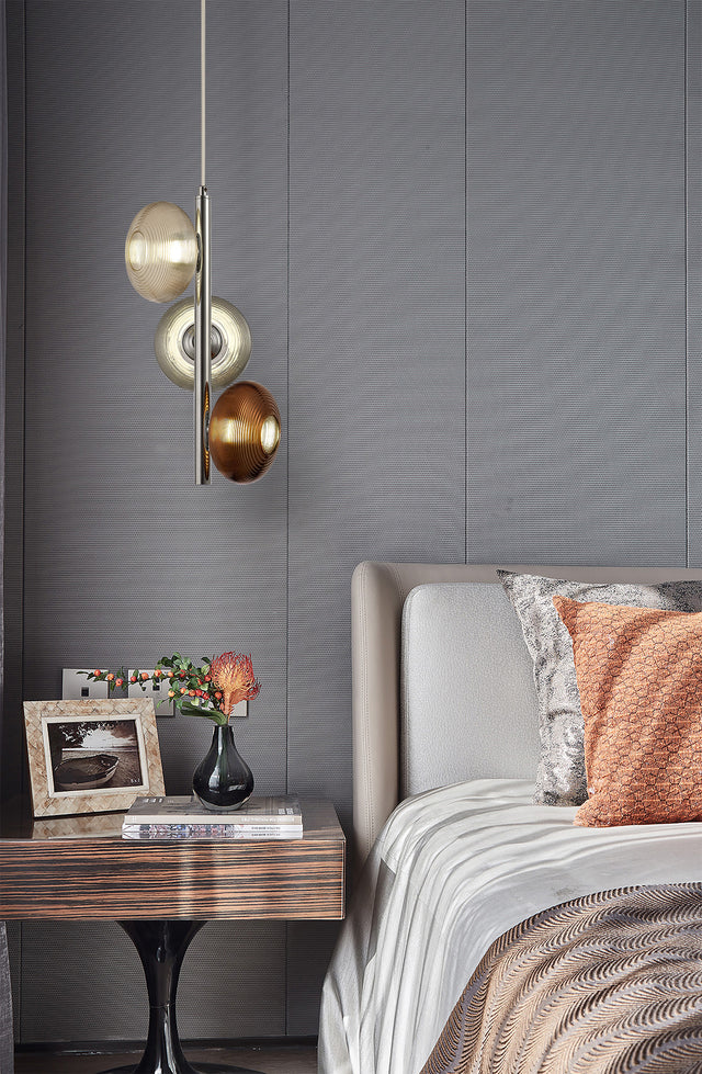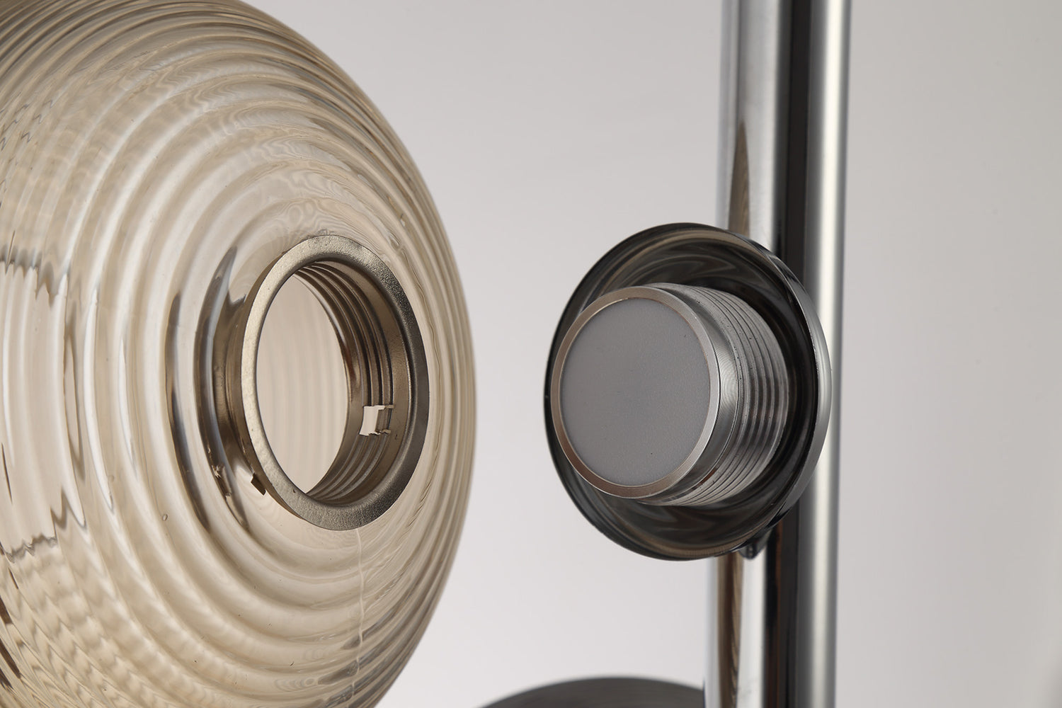 Rapeto's round three light multiple pendant is decorated with three glass in various colours; copper, champagne and smoked which each conceal the integral 4000K LEDs. The threaded effect on the prolate spheroid glass shape, emits a three dimensional pattern to further enrich the striking impact of the design. The switched, single LED wall lamps with matching polished chrome frames are available in with one of the three coloured glass on the pendant so a theme can be built around the preferred coloured glass.
