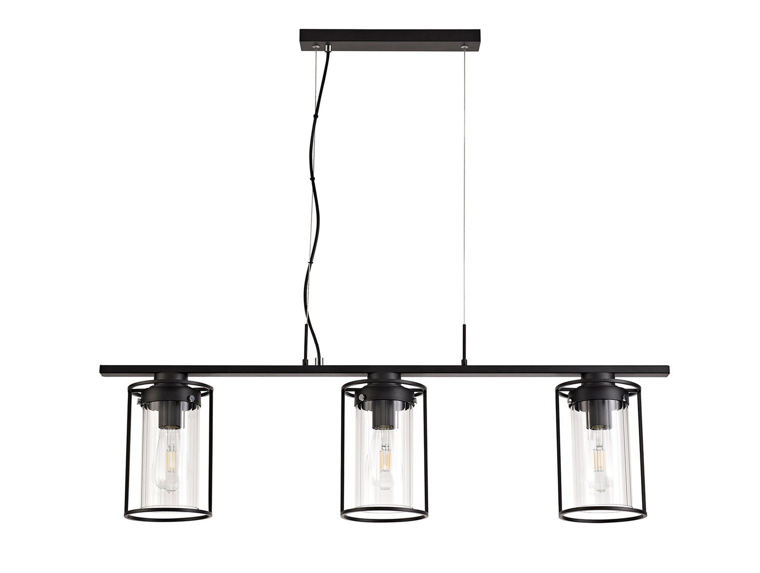 REV6857 Revati Linear Pendant 3 Light in a Black/Clear Finish