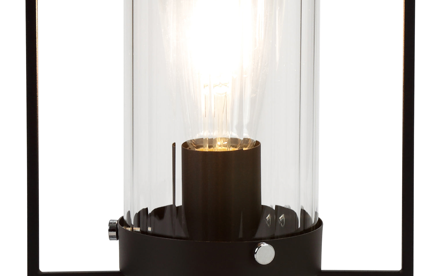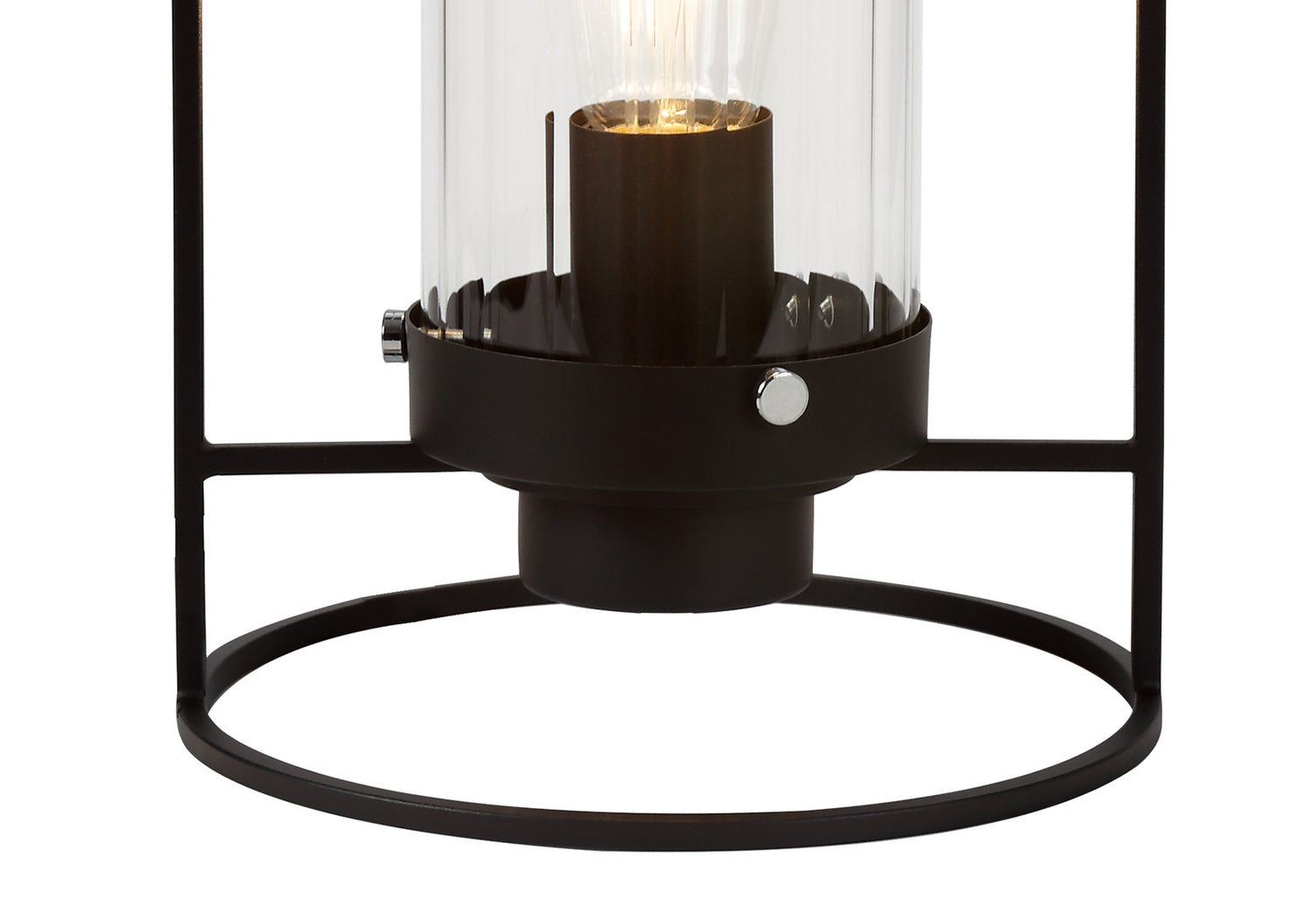 Reith is a complete collection including a linear three light pendant and singular one light pendant, with matching wall and table lamps available. The subtle line effect moulded into the glass cylinders, which sit around the E27 lampholders, give the impression of caging around the lamp enhancing the minimalistic design of the slim black framework.