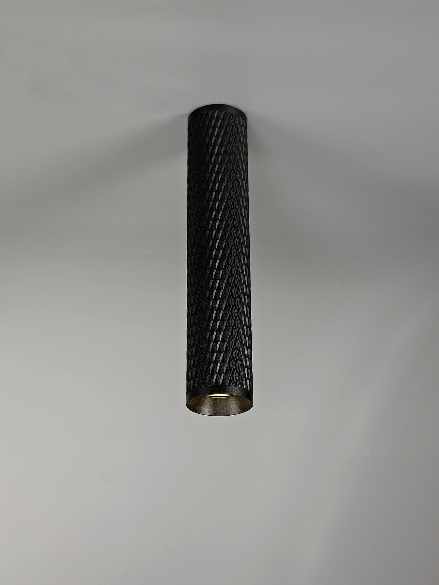 The cylindrical format of the Sadal range is decorated with a diamond imprint producing a mesh like effect. These light fittings are available as a surface mounted ceiling fitting, wall lamps, track spotlight or surface mounted adjustable spotlight. The wide variety of colour finishes available, complementing face ring accessories and the pendant kit offers a greater number of lighting solutions for all kinds of room settings and applications.