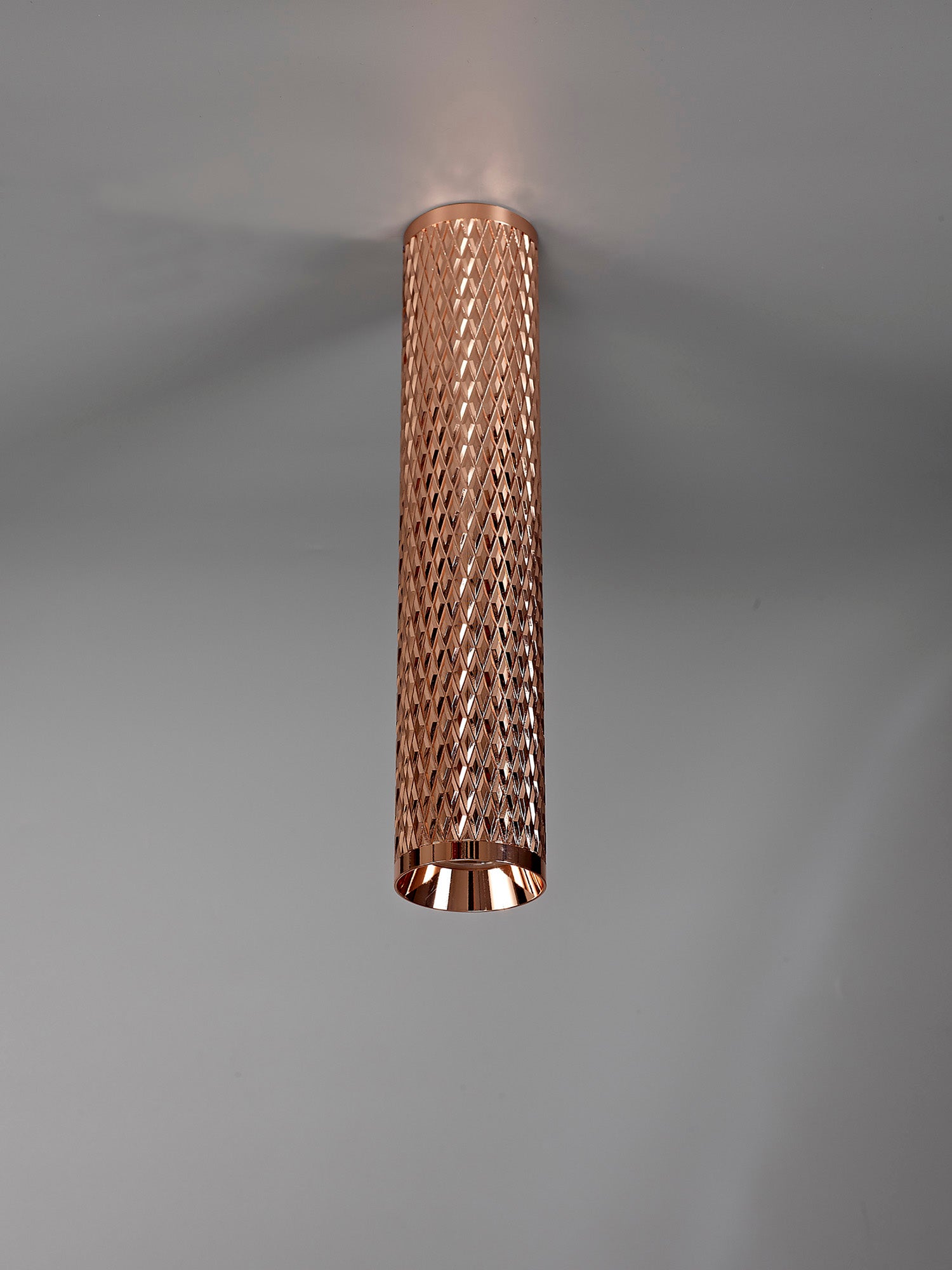 The cylindrical format of the Sadal range is decorated with a diamond imprint producing a mesh like effect. These light fittings are available as a surface mounted ceiling fitting, wall lamps, track spotlight or surface mounted adjustable spotlight. The wide variety of colour finishes available, complementing face ring accessories and the pendant kit offers a greater number of lighting solutions for all kinds of room settings and applications.