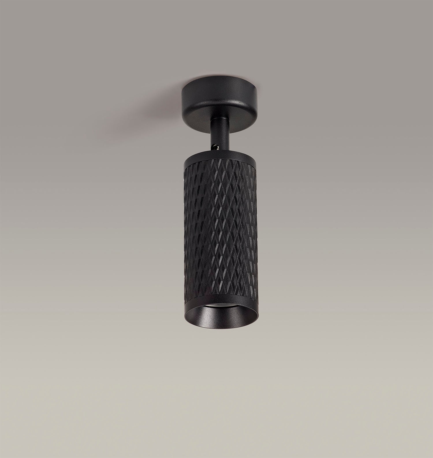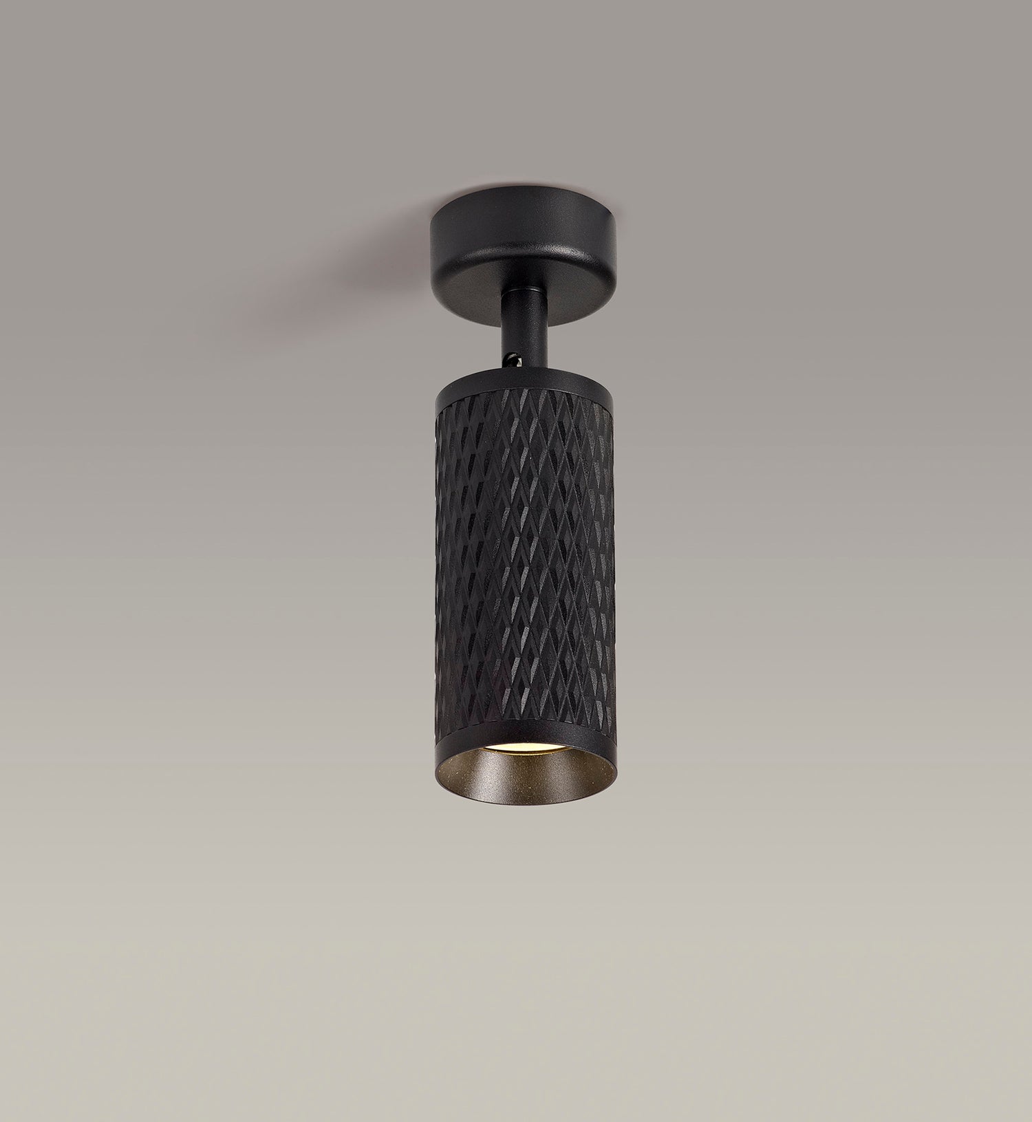 The cylindrical format of the Sadal range is decorated with a diamond imprint producing a mesh like effect. These light fittings are available as a surface mounted ceiling fitting, wall lamps, track spotlight or surface mounted adjustable spotlight. The wide variety of colour finishes available, complementing face ring accessories and the pendant kit offers a greater number of lighting solutions for all kinds of room settings and applications.