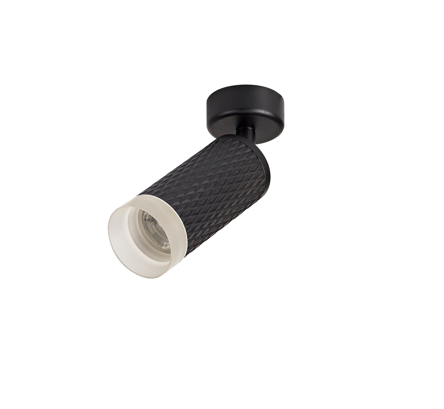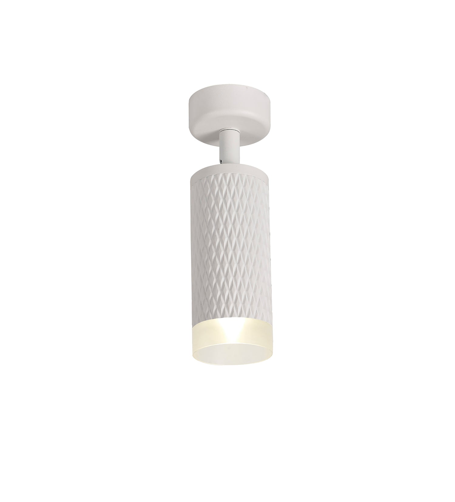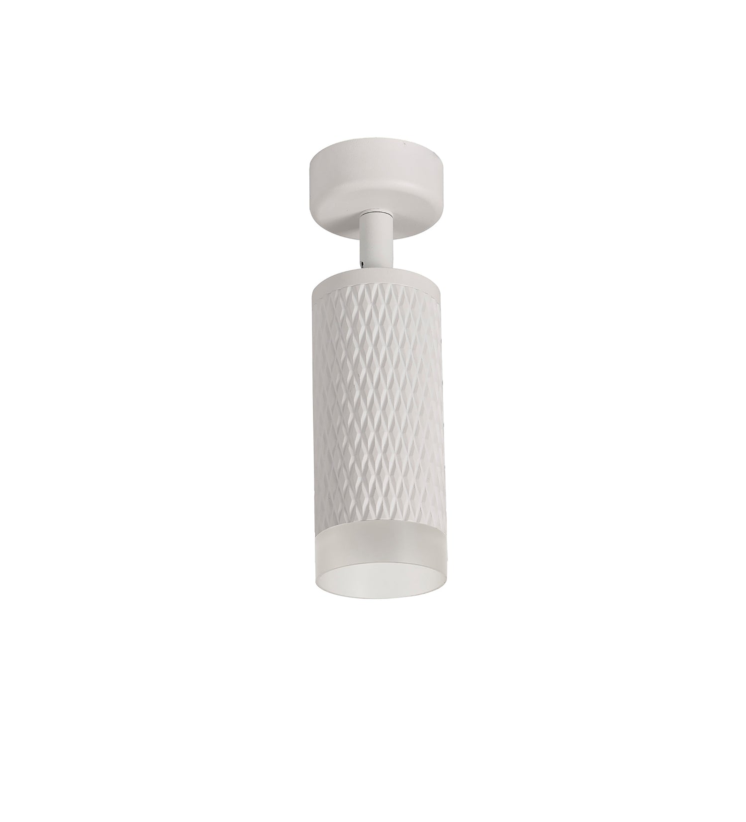 The cylindrical format of the Sadal range is decorated with a diamond imprint producing a mesh like effect. These light fittings are available as a surface mounted ceiling fitting, wall lamps, track spotlight or surface mounted adjustable spotlight. The wide variety of colour finishes available, complementing face ring accessories and the pendant kit offers a greater number of lighting solutions for all kinds of room settings and applications.