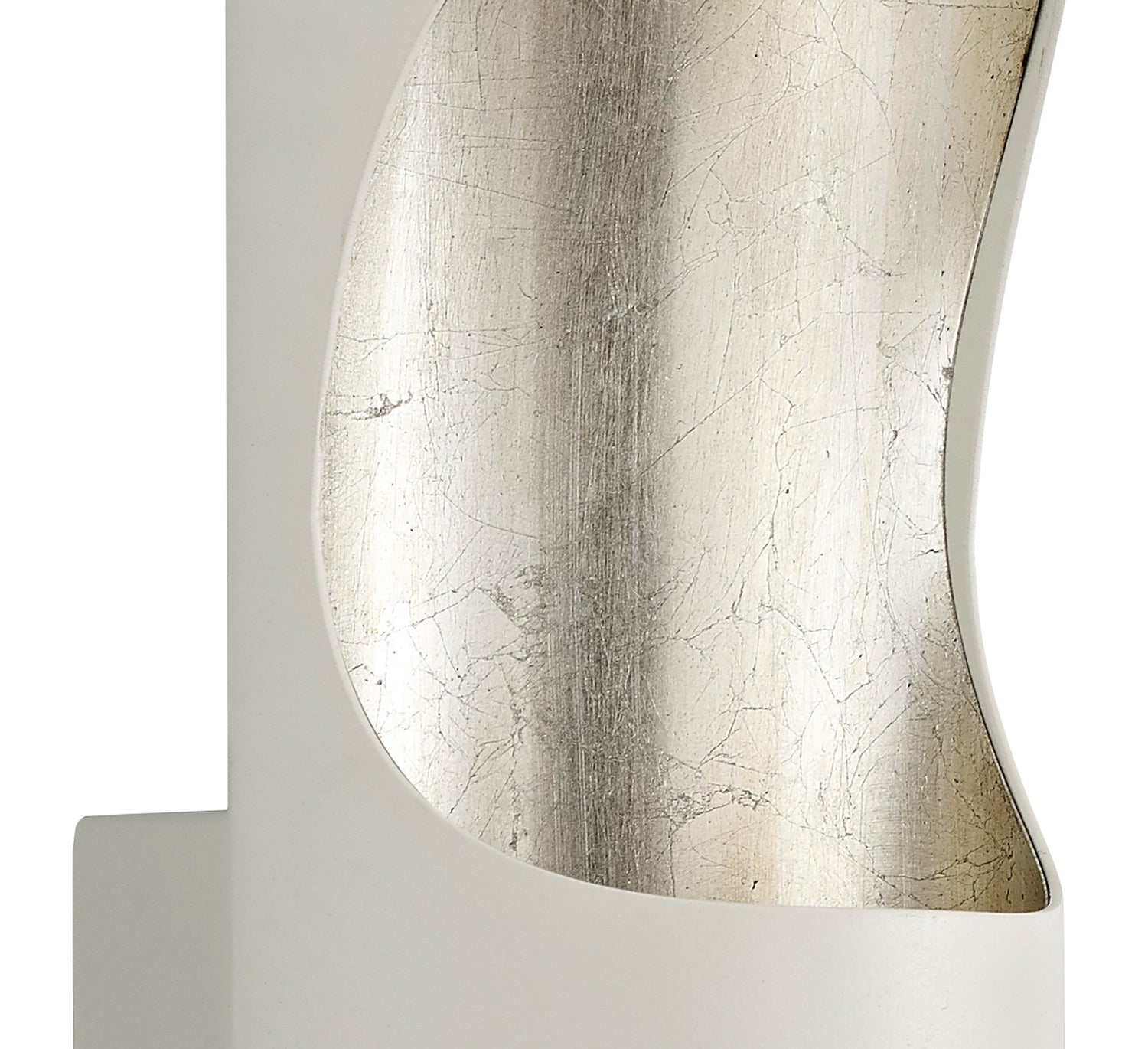The Saiph wall lamps available in two colour finishes have a distinctly creative form, the curved tubular shape is cut away at the front displaying in the depth of the cylinder, leaving a comparatively small strip towards the bottom of the wall lamp to conceal the integral LEDs. This modern concept is furthered on one piece by the combination of white and silver leaf colour finishes. The second colour option contrasts the outer anthracite finish with the gold leaf internal creating a slightly more urban, rustic effect.