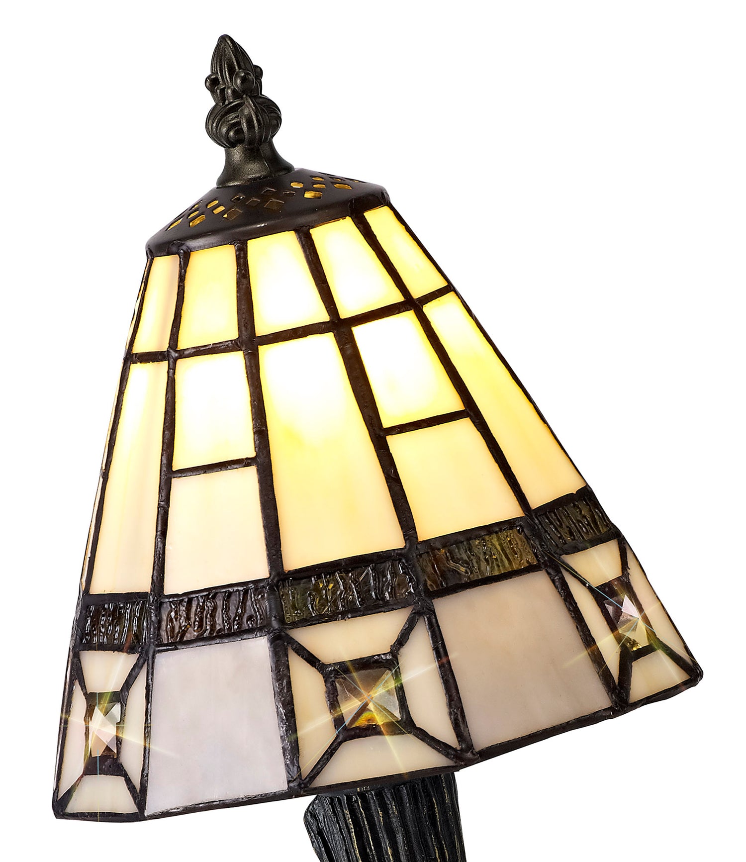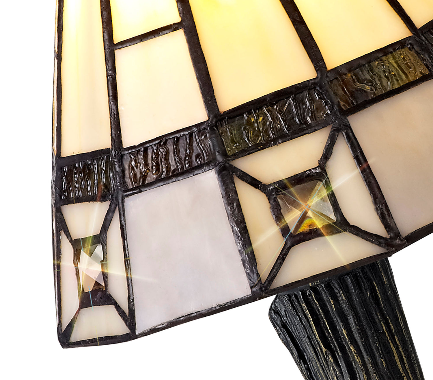 In contrast with the commonly soft curved or triangular forms of glass tiled to form Tiffany, Sargas provides a more angled Aztec effect by using square and rectangular shapes within its shade. The neutral cream and grey colour finish is enhanced by the clear square crystal components found along the widest section of the glass, an unusual feature for a classic statement piece.