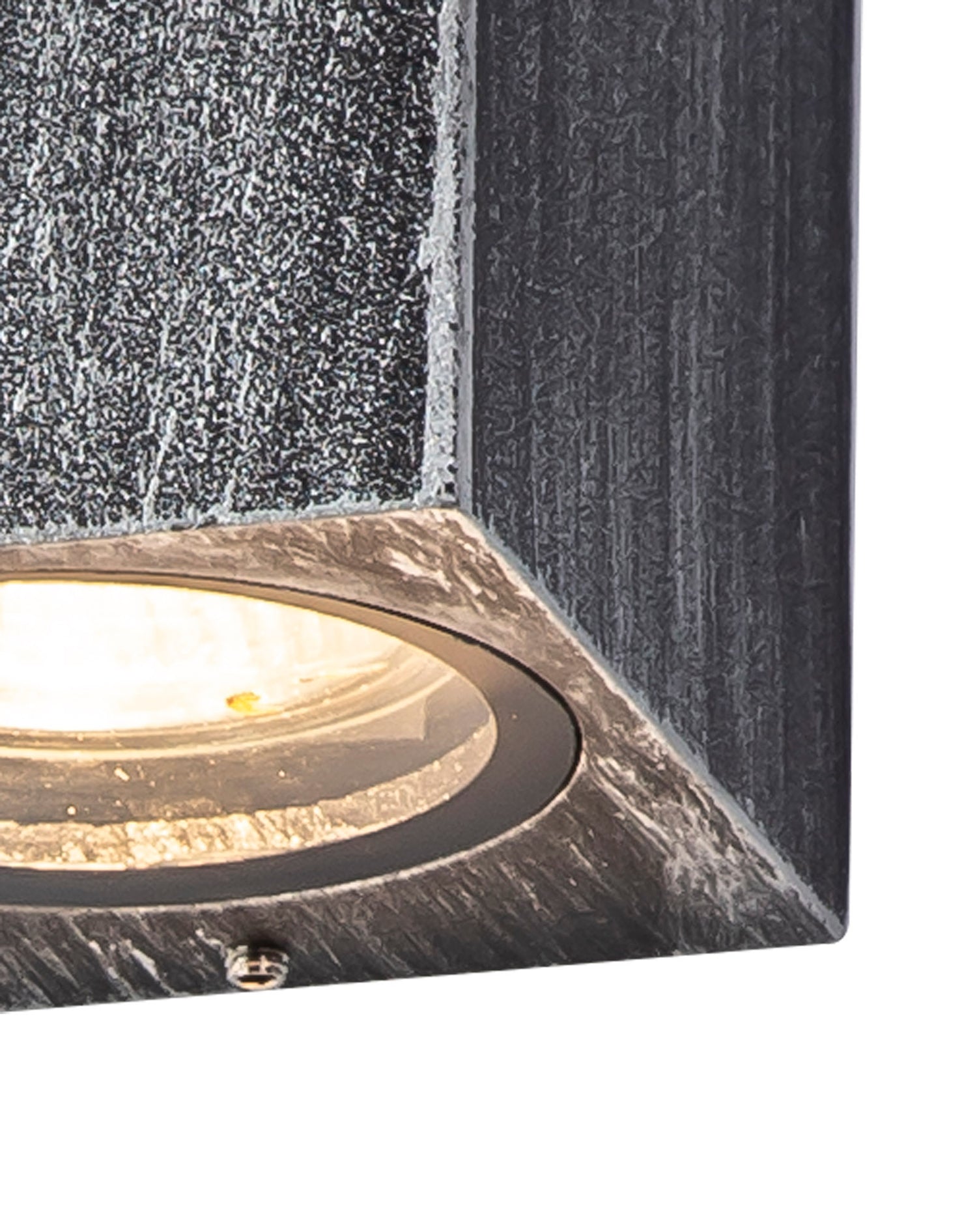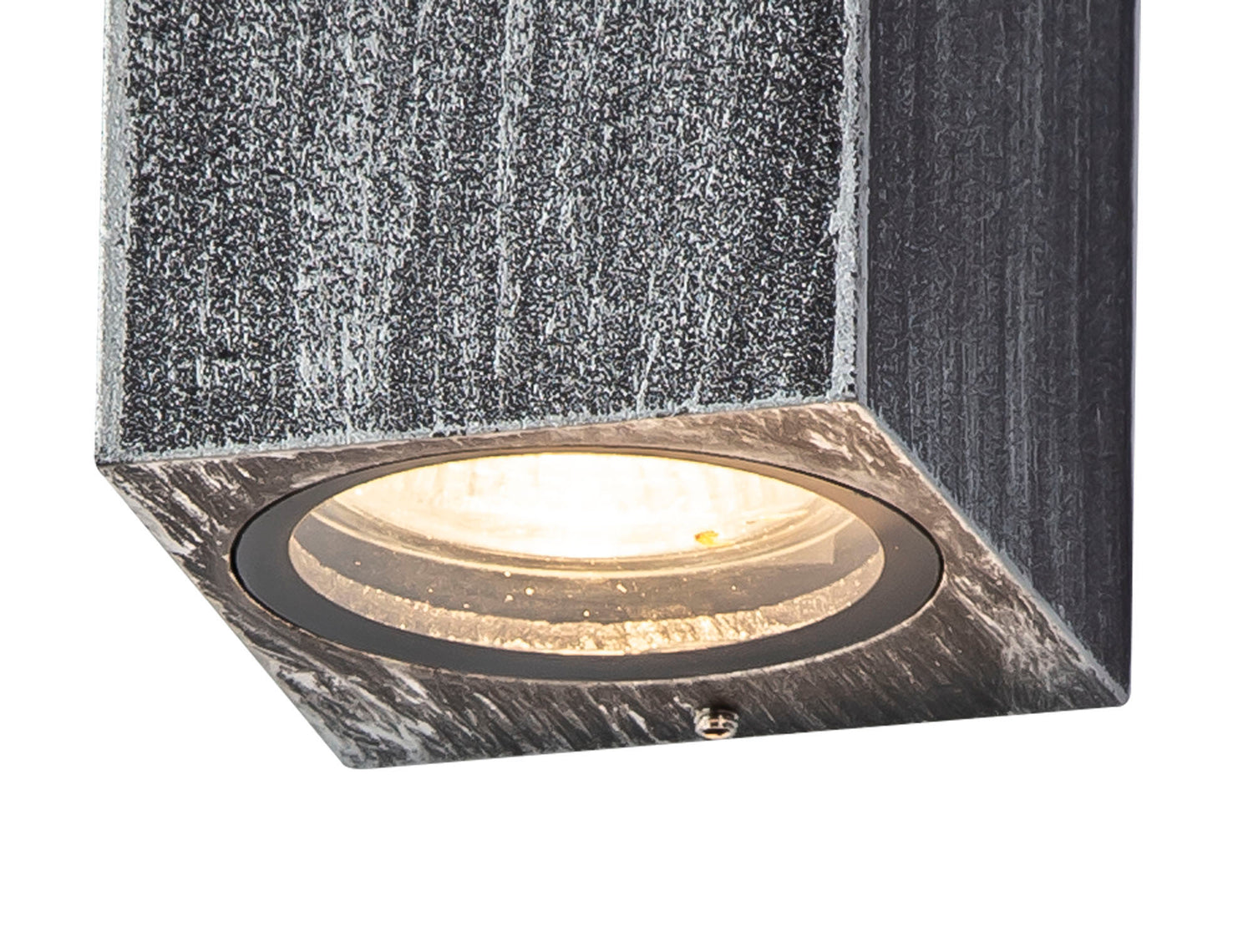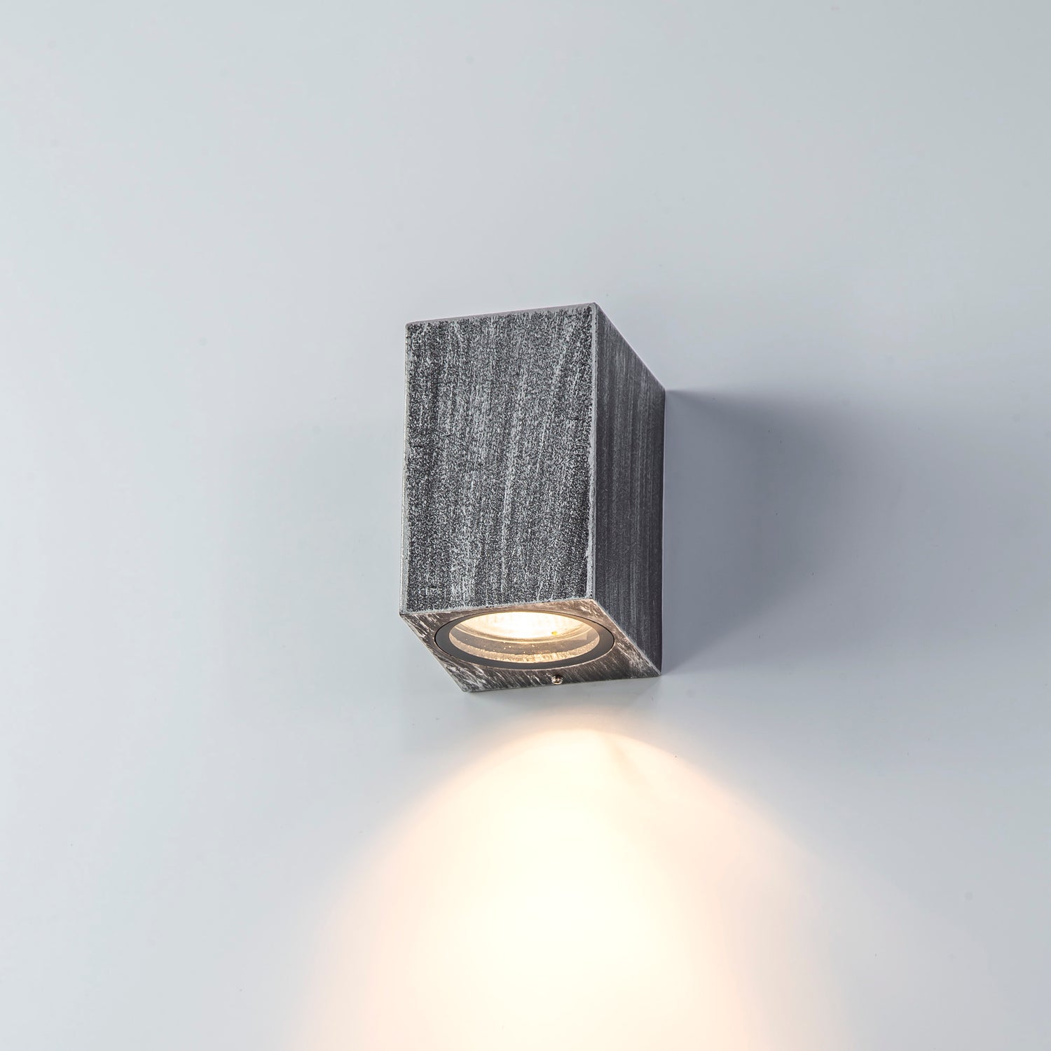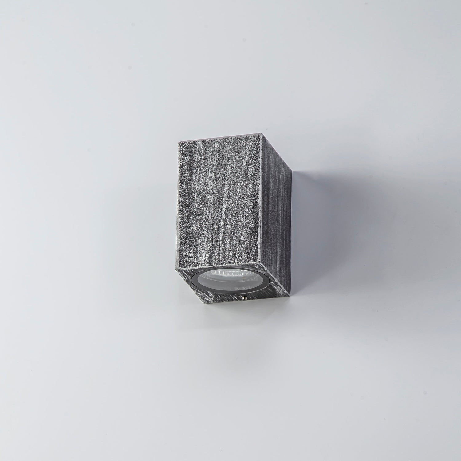 These outdoor IP54 rated wall lamps emulate a rustic urban atmosphere with their weathered colour finishes. The curved wall lamps use a black base with brushed flecks of gold whilst the rectangular version uses strokes of black and silver. This effect diminishes any impact from outdoor elements ensuring a reliable longevity of use even in harsher weather.