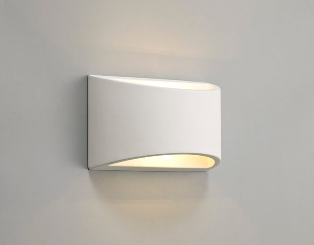 Skat is a selection of downlights, wall lamps and two single pendants that have been specified for use in both industrial and domestic settings. The most highly appealing feature of this collection is the white gypsum finish which is paintable making the fixtures adaptable to specific needs and taste. The stepped downlights are available in round or square but the wall lights offer the most varied options. A rectangular recessed GU10 wall lamp is available in three size options while the LED wall lamp is a unique uplighter with integral 3000K light. There are also three originally formed wall lamps that take a single G9 lamp, the most intriguing of these three being the three dimensional prism shaped uplighter.