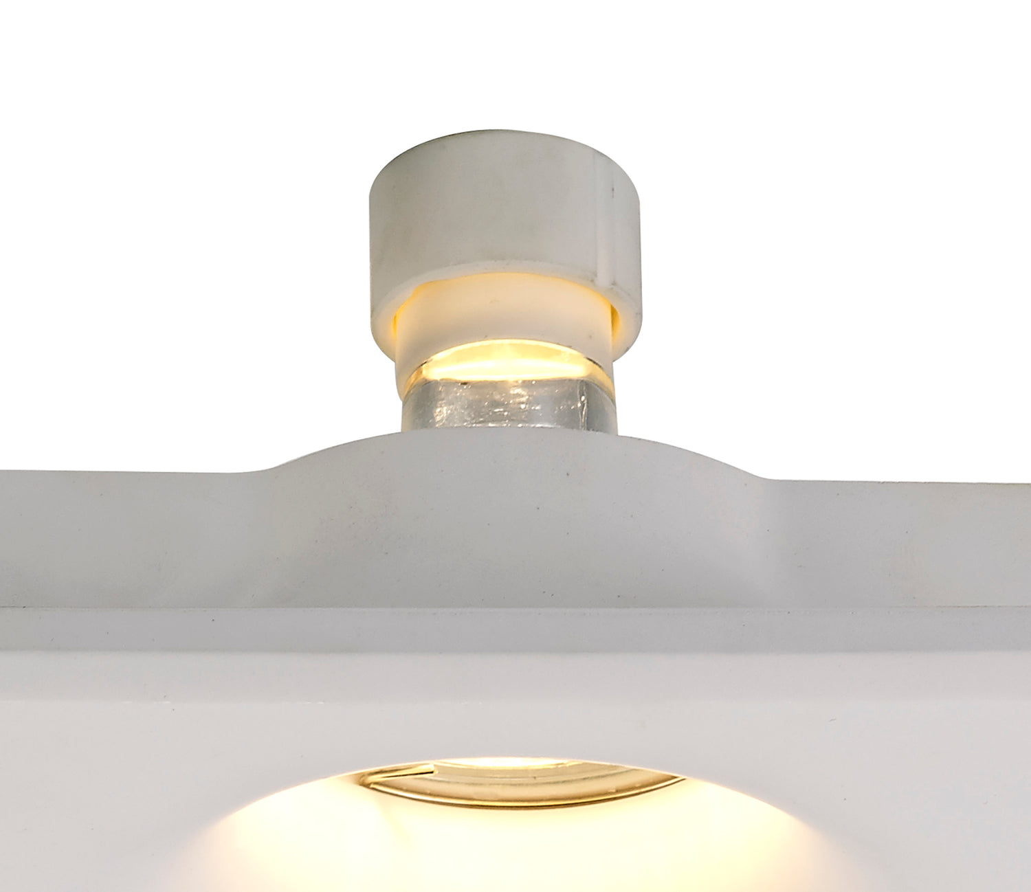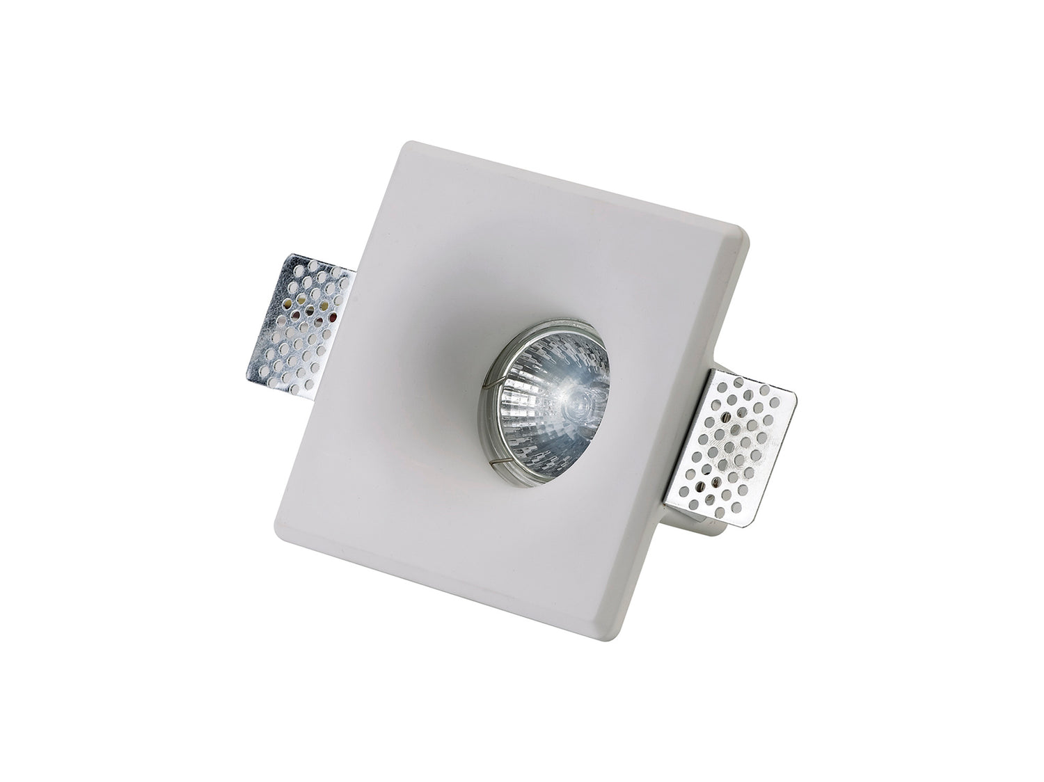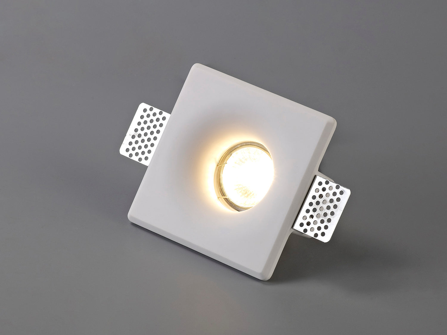 Skat is a selection of downlights, wall lamps and two single pendants that have been specified for use in both industrial and domestic settings. The most highly appealing feature of this collection is the white gypsum finish which is paintable making the fixtures adaptable to specific needs and taste. The stepped downlights are available in round or square but the wall lights offer the most varied options. A rectangular recessed GU10 wall lamp is available in three size options while the LED wall lamp is a unique uplighter with integral 3000K light. There are also three originally formed wall lamps that take a single G9 lamp, the most intriguing of these three being the three dimensional prism shaped uplighter.