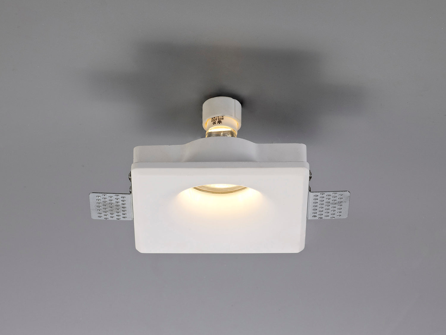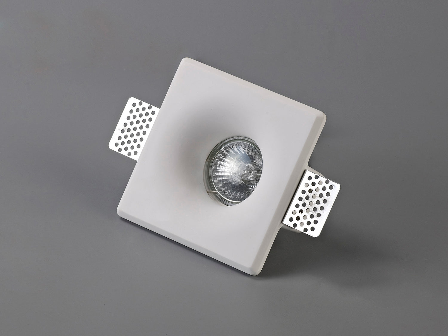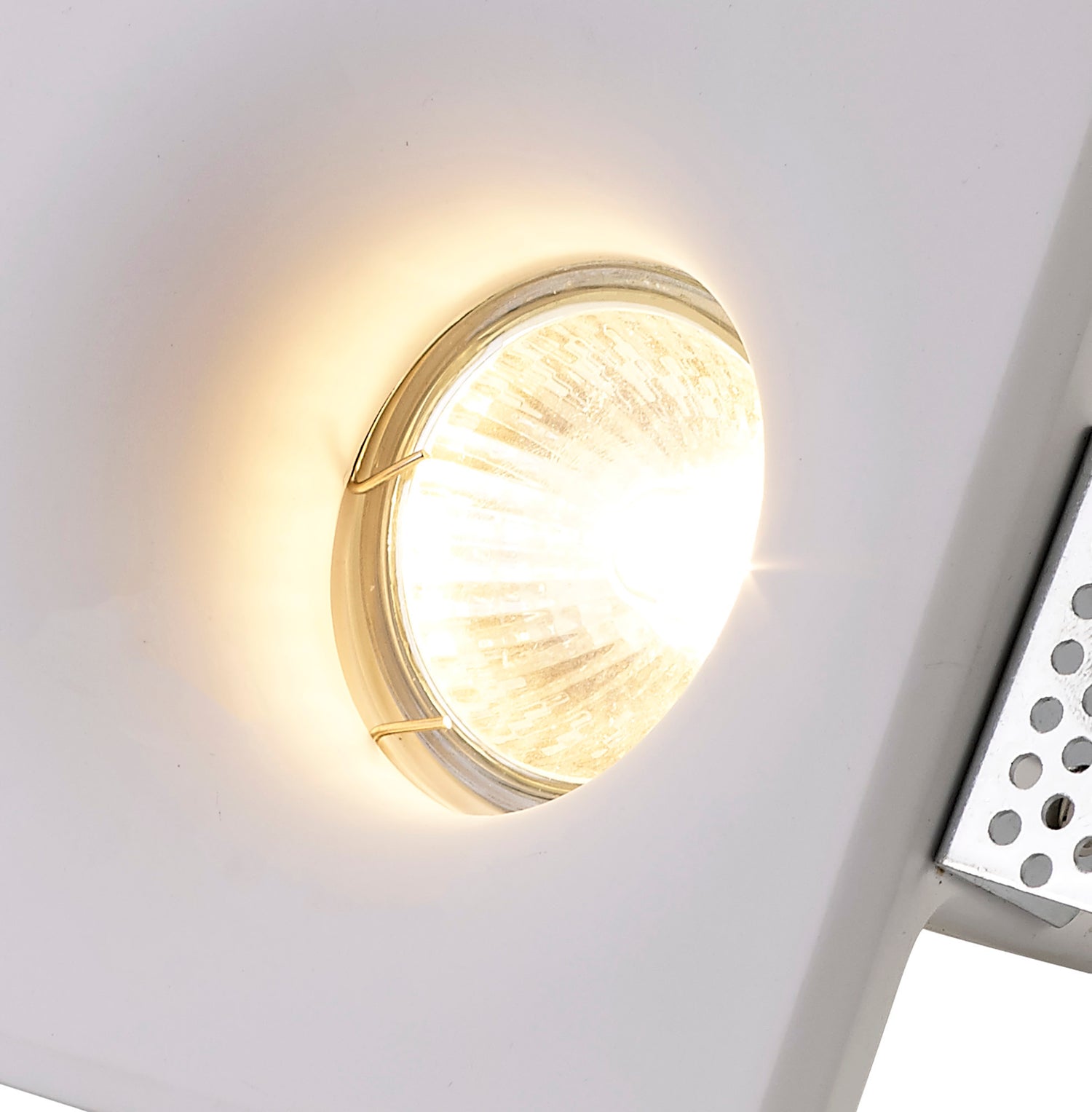 Skat is a selection of downlights, wall lamps and two single pendants that have been specified for use in both industrial and domestic settings. The most highly appealing feature of this collection is the white gypsum finish which is paintable making the fixtures adaptable to specific needs and taste. The stepped downlights are available in round or square but the wall lights offer the most varied options. A rectangular recessed GU10 wall lamp is available in three size options while the LED wall lamp is a unique uplighter with integral 3000K light. There are also three originally formed wall lamps that take a single G9 lamp, the most intriguing of these three being the three dimensional prism shaped uplighter.