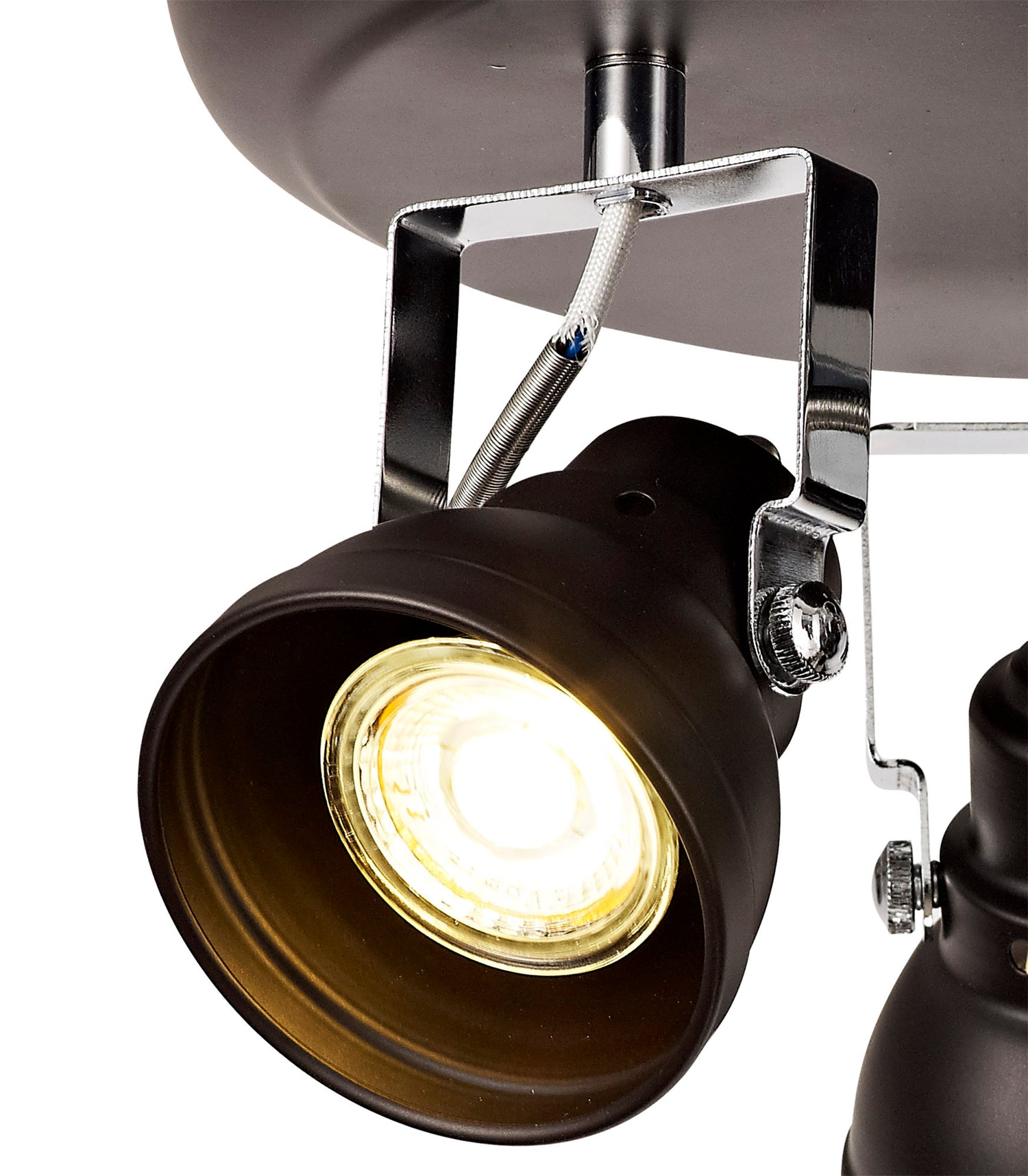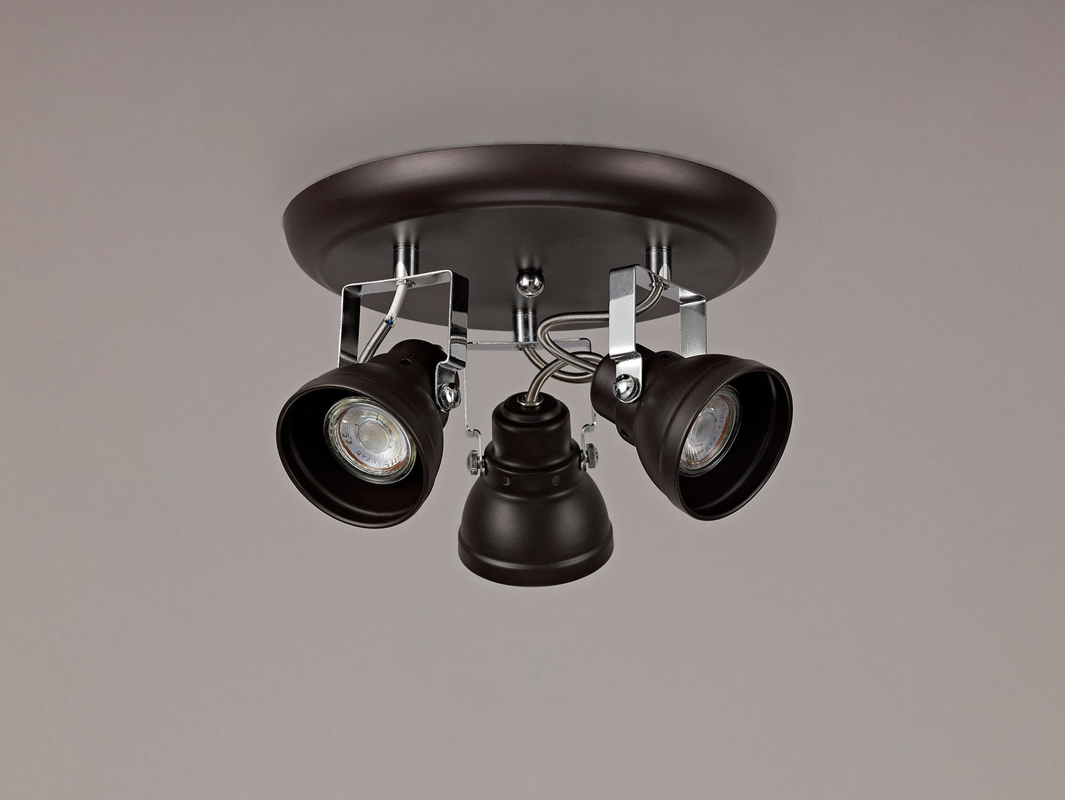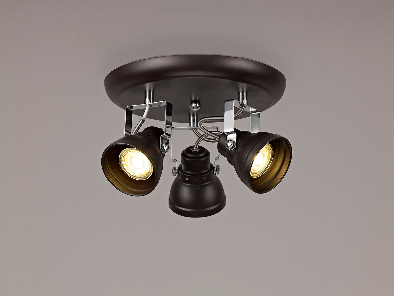 Tabita is a collection of LED only GU10 spotlights that are designed in the image of classic stage lighting with the metal spotlights shaped like lampshades with an adjustable directionality. This depiction will boost the character of a room, building upon the theme or as a stand-alone attraction. The 3 light round fitting, 4 light bar and 1 light are all available in either a matt grey and chrome or oiled bronze with chrome colour finish.