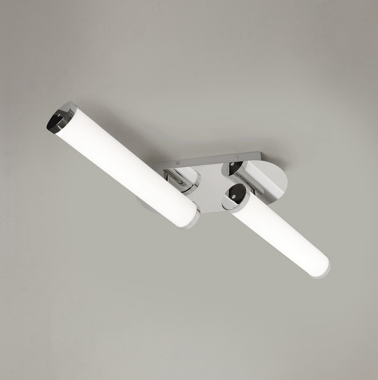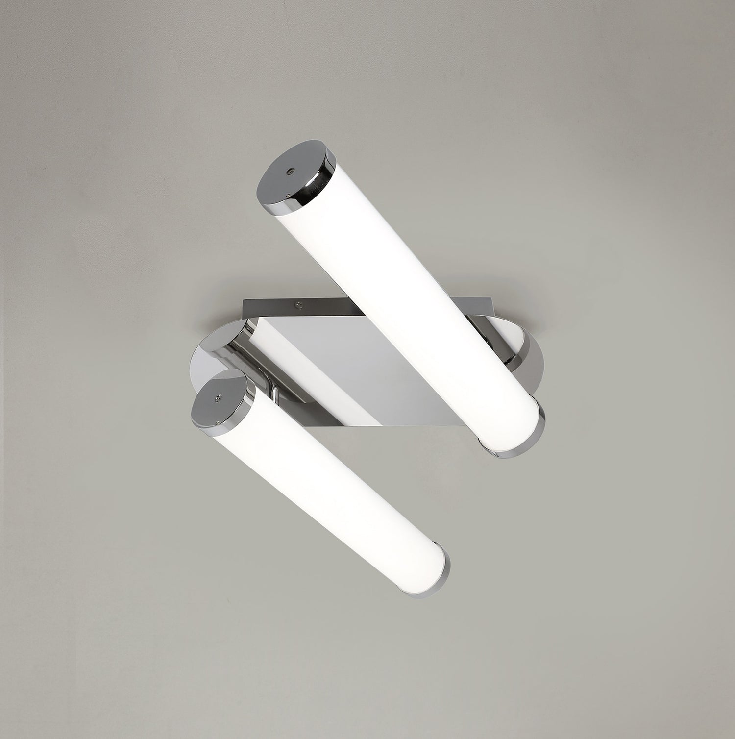 Taiyi's tubular opal white diffusers ensure a complete ambient dispersal of lumination from the integral LEDs. The cool 4000K colour of the LEDs is the ideal temperature for IP44 rated bathroom fixtures where a bright clearer light is required. Three various wall lamps and a ceiling light are finished in polished chrome giving a further modern touch to the collection.