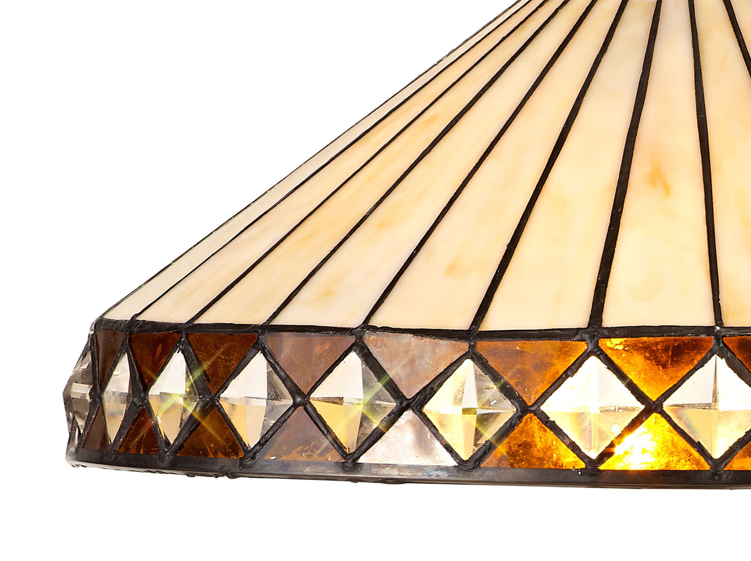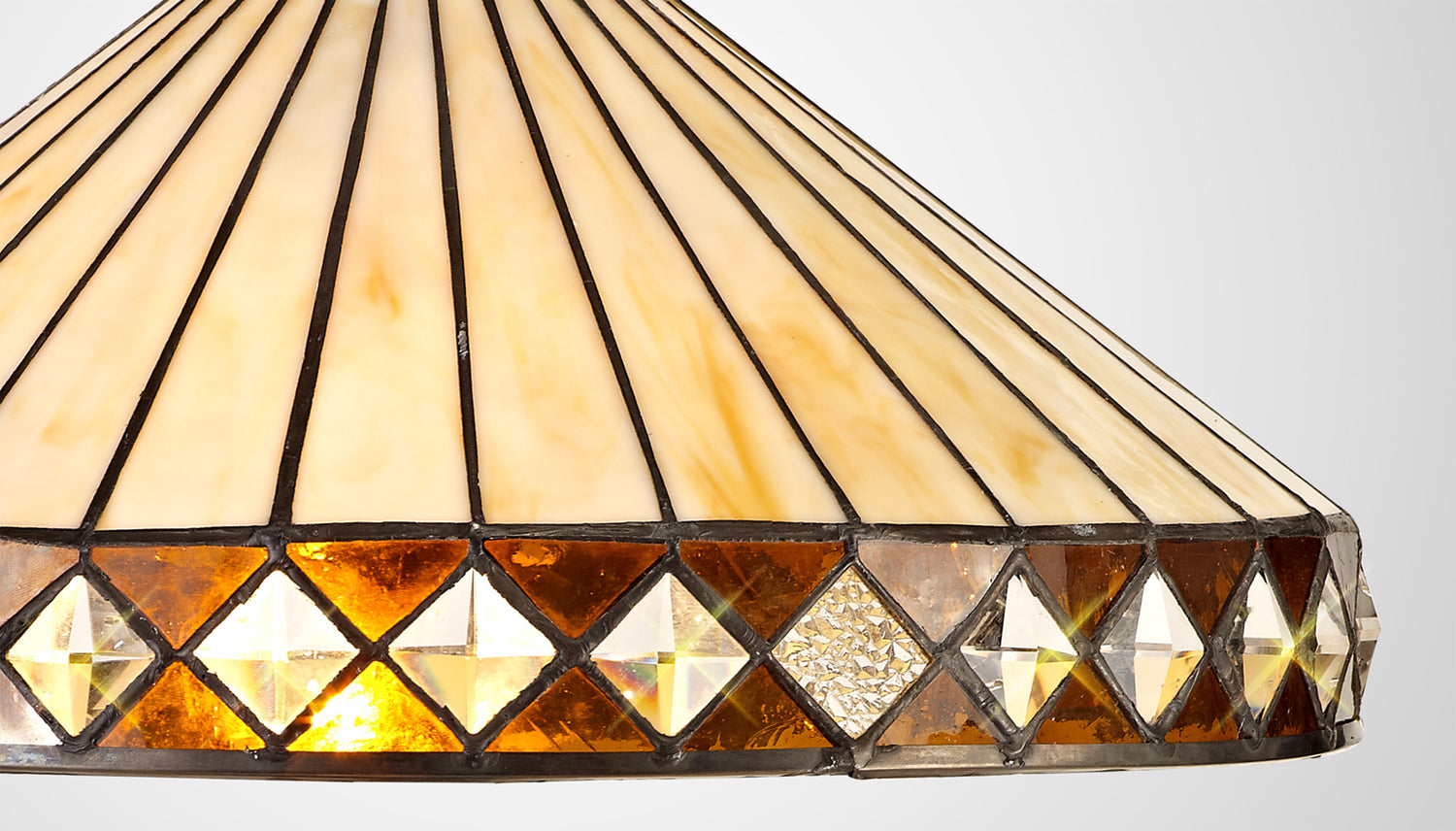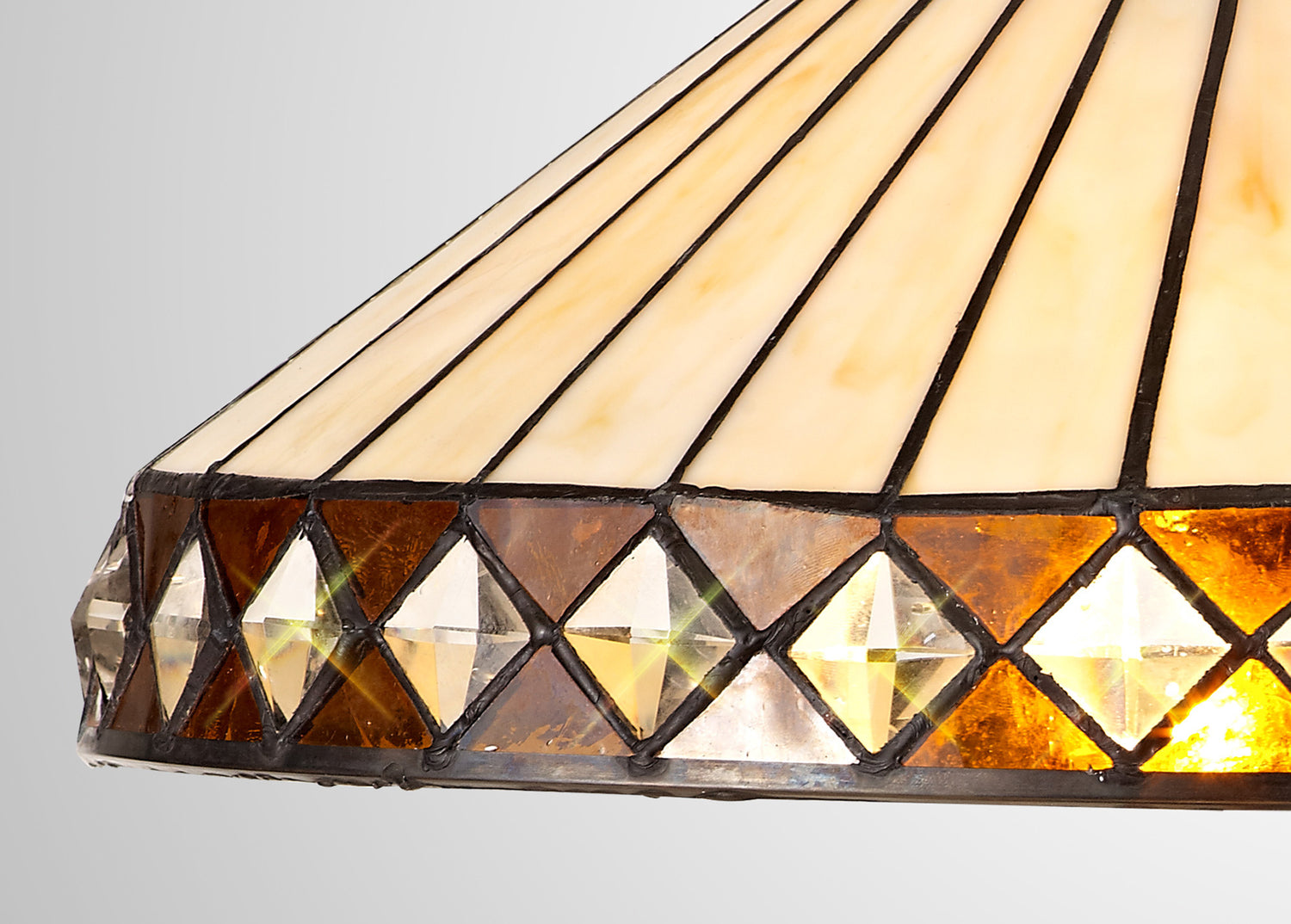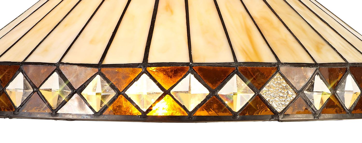 The stylish fanned effect of these attractive Tiffany shades offer a uniform symmetry. The traditional Tiffany design, which has outlasted countless modern trends has been maintained with the suitable cream and amber colour finish. Tejat's non-electric shades can be used with pedants, ceiling and table lamps, whilst the two light wall lamp enables the ability to build a full family of lights within one room setting or home.