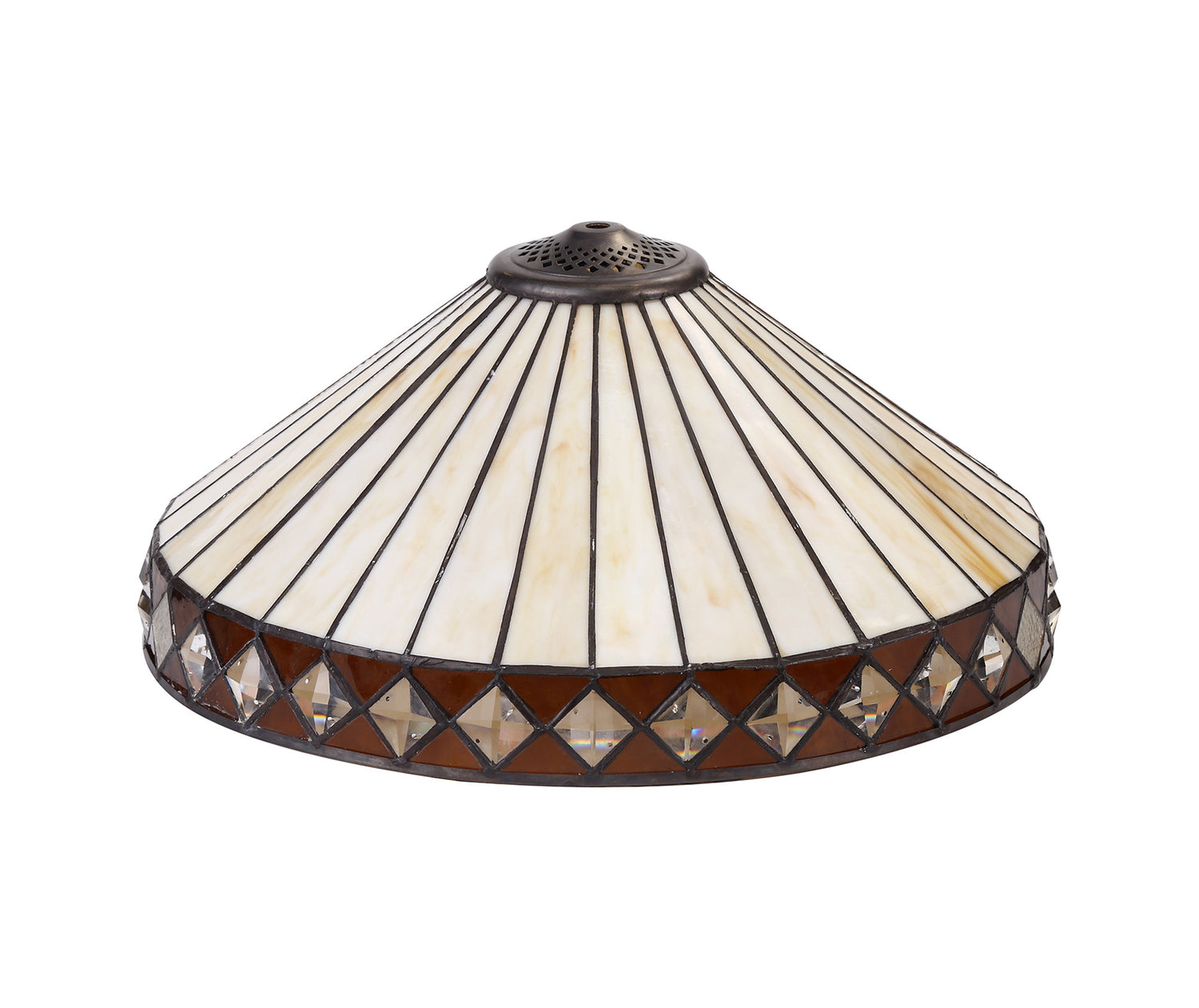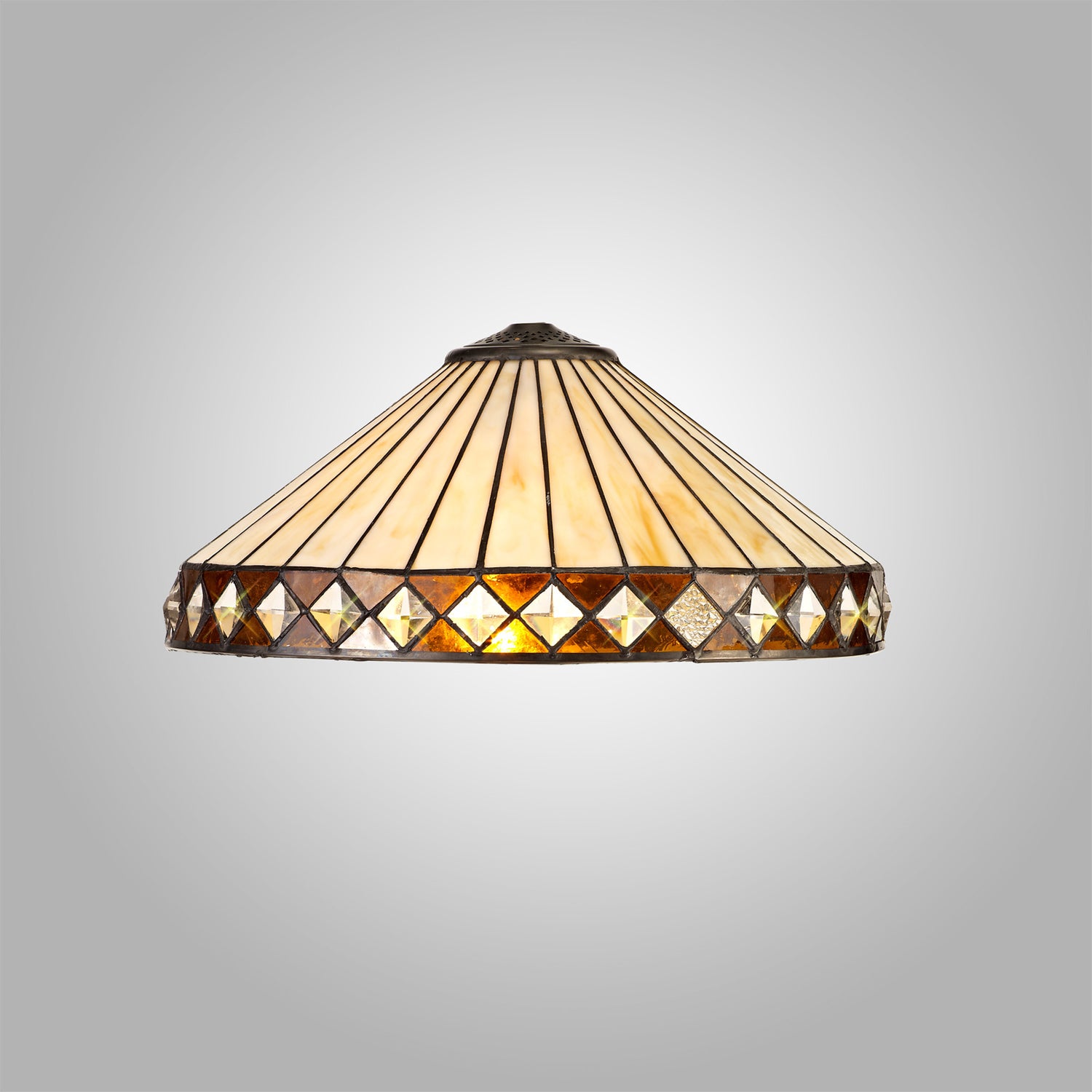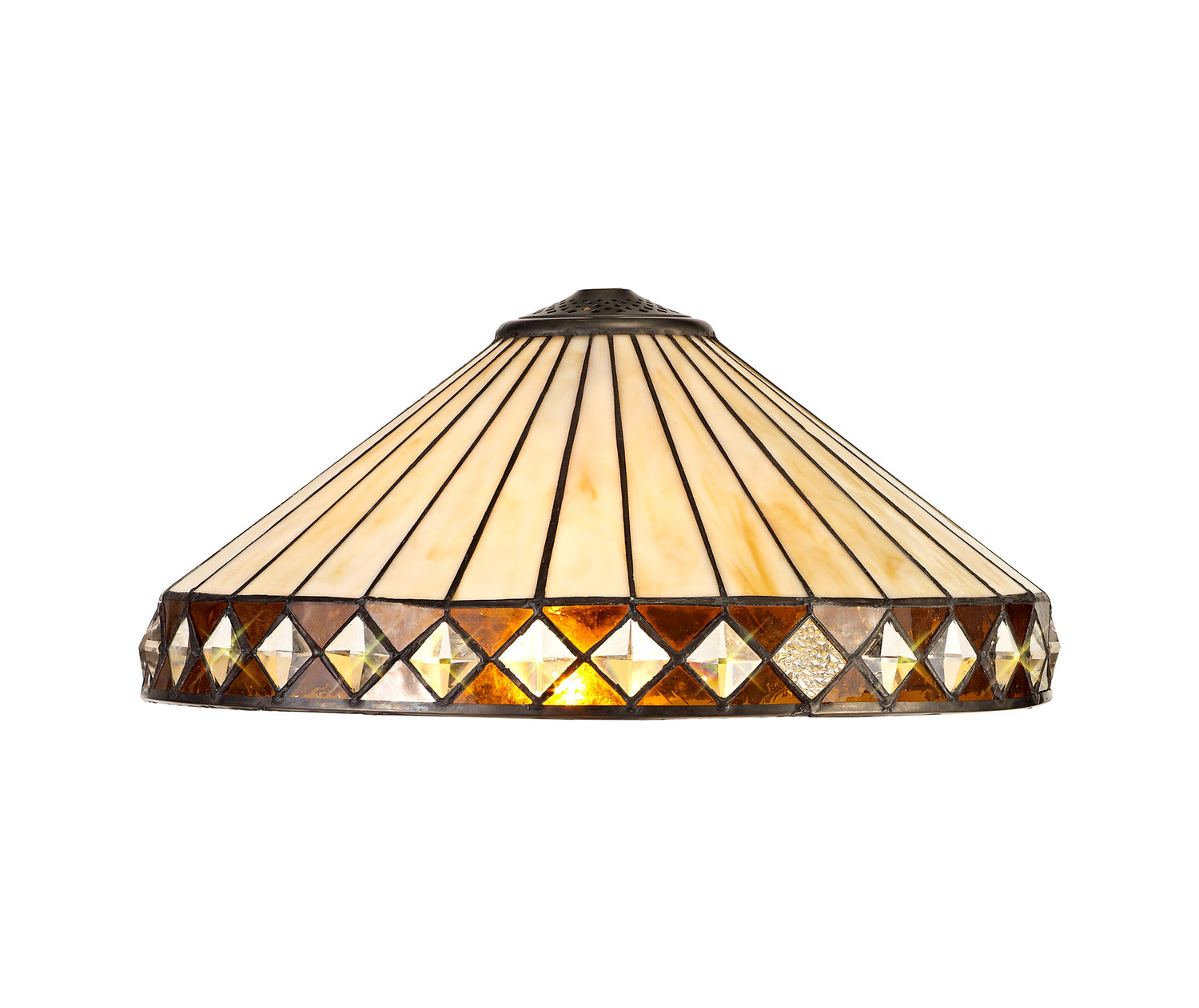 The stylish fanned effect of these attractive Tiffany shades offer a uniform symmetry. The traditional Tiffany design, which has outlasted countless modern trends has been maintained with the suitable cream and amber colour finish. Tejat's non-electric shades can be used with pedants, ceiling and table lamps, whilst the two light wall lamp enables the ability to build a full family of lights within one room setting or home.
