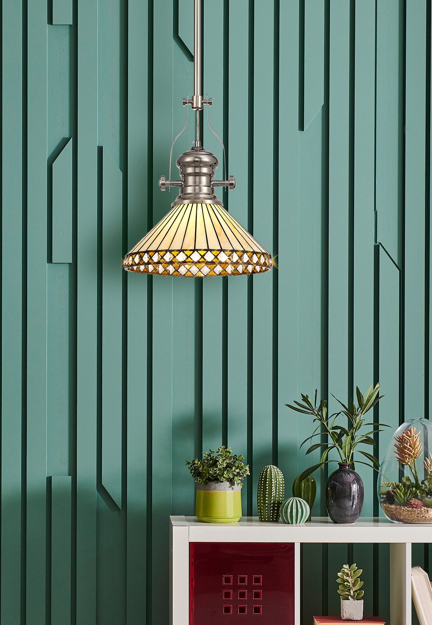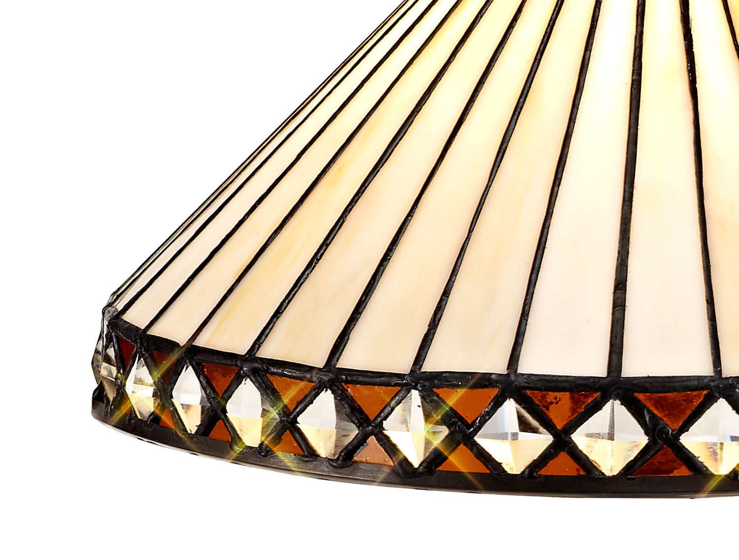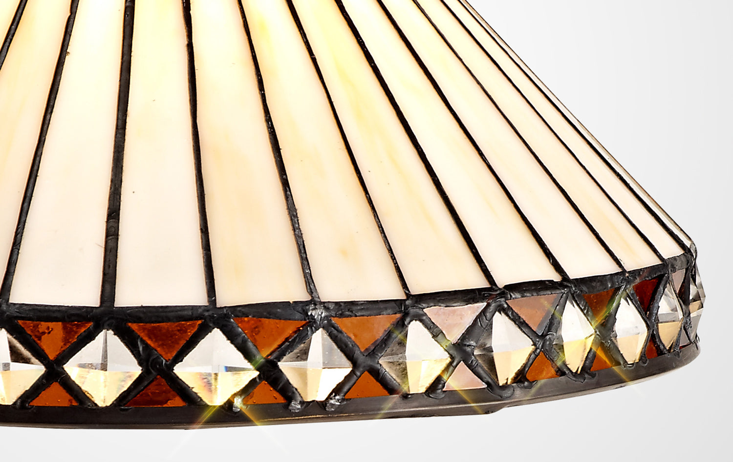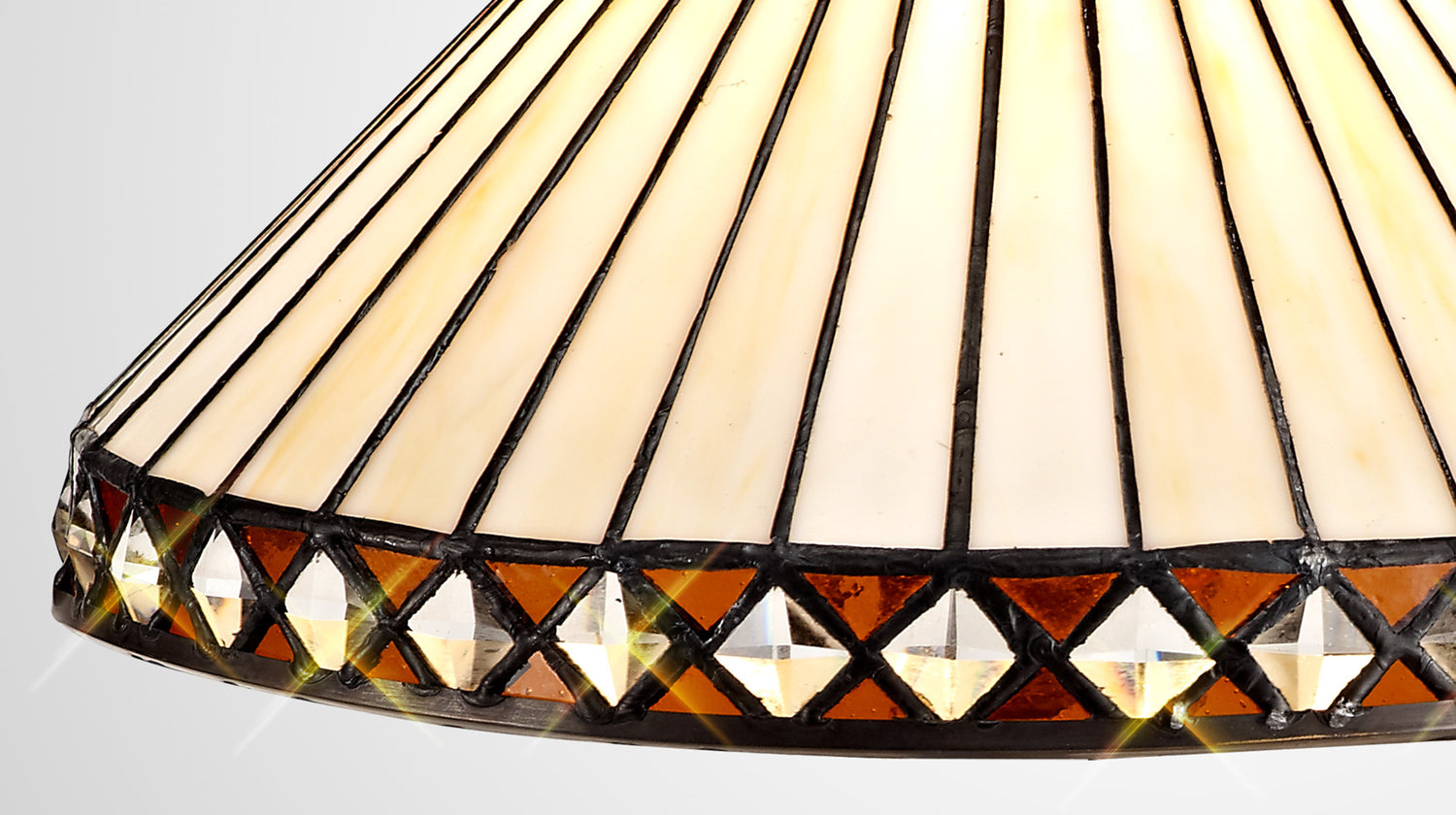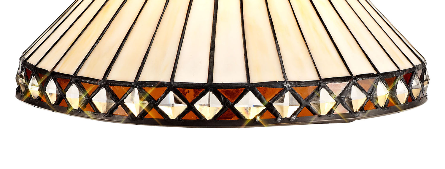 The stylish fanned effect of these attractive Tiffany shades offer a uniform symmetry. The traditional Tiffany design, which has outlasted countless modern trends has been maintained with the suitable cream and amber colour finish. Tejat's non-electric shades can be used with pedants, ceiling and table lamps, whilst the two light wall lamp enables the ability to build a full family of lights within one room setting or home.