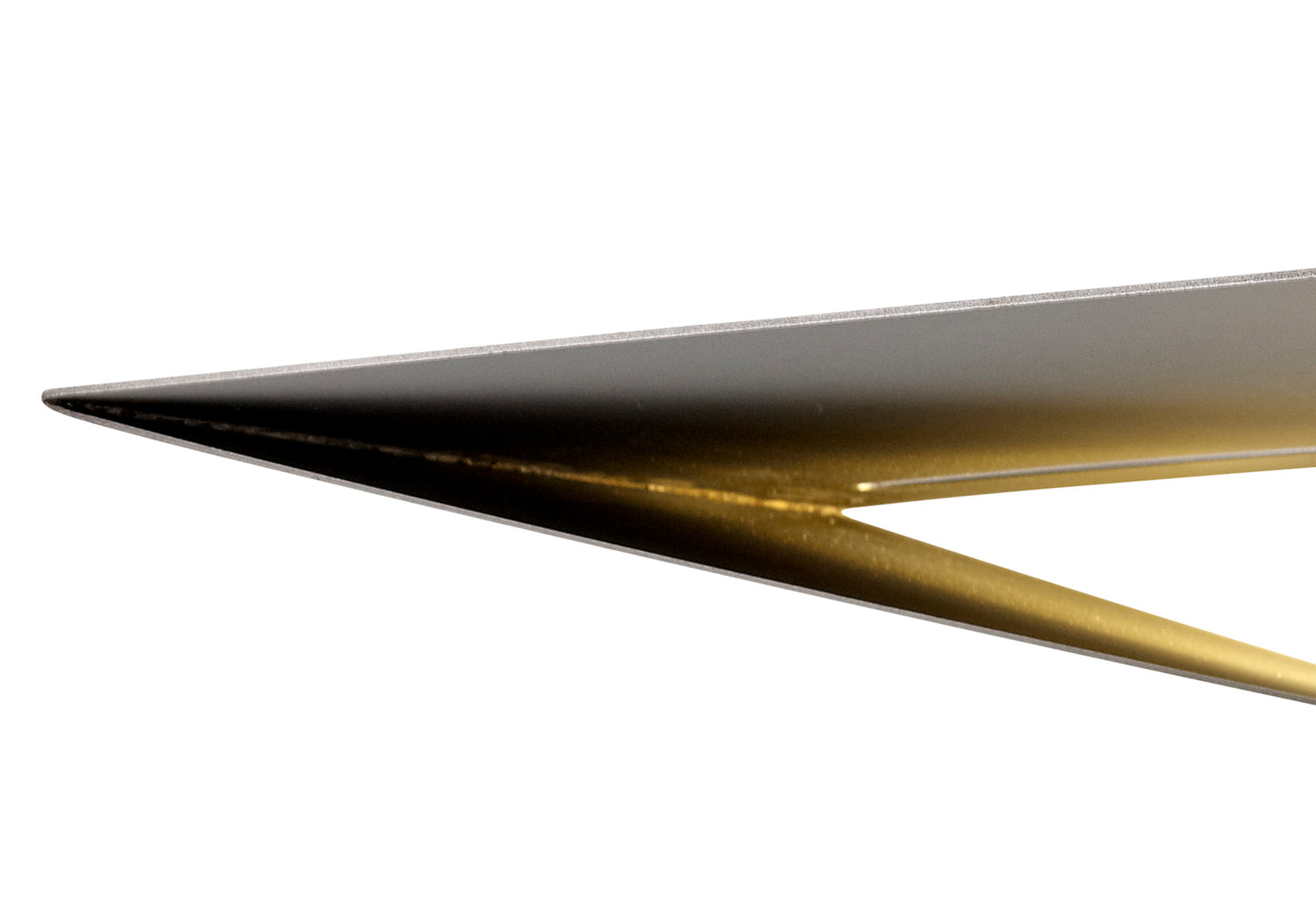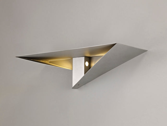 Tiaki's unconventional triangular angles fashion a modern and distinctive wall lamp feature. The integral LEDs are fixed within the centre of the wall lamp on either side of the rectangular tube, the light emitted illuminates the inside of the trilateral area within the frame. The flat edge along the top of the fixture hosts cut out slim slots offering a slight, soft dispersal of light in an upwards direction. Available in three colour finishes; gold painted, silver painted or white, Tiaki is designed to enhance the artistic feel of its chosen setting.