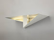 Tiaki's unconventional triangular angles fashion a modern and distinctive wall lamp feature. The integral LEDs are fixed within the centre of the wall lamp on either side of the rectangular tube, the light emitted illuminates the inside of the trilateral area within the frame. The flat edge along the top of the fixture hosts cut out slim slots offering a slight, soft dispersal of light in an upwards direction. Available in three colour finishes; gold painted, silver painted or white, Tiaki is designed to enhance the artistic feel of its chosen setting.