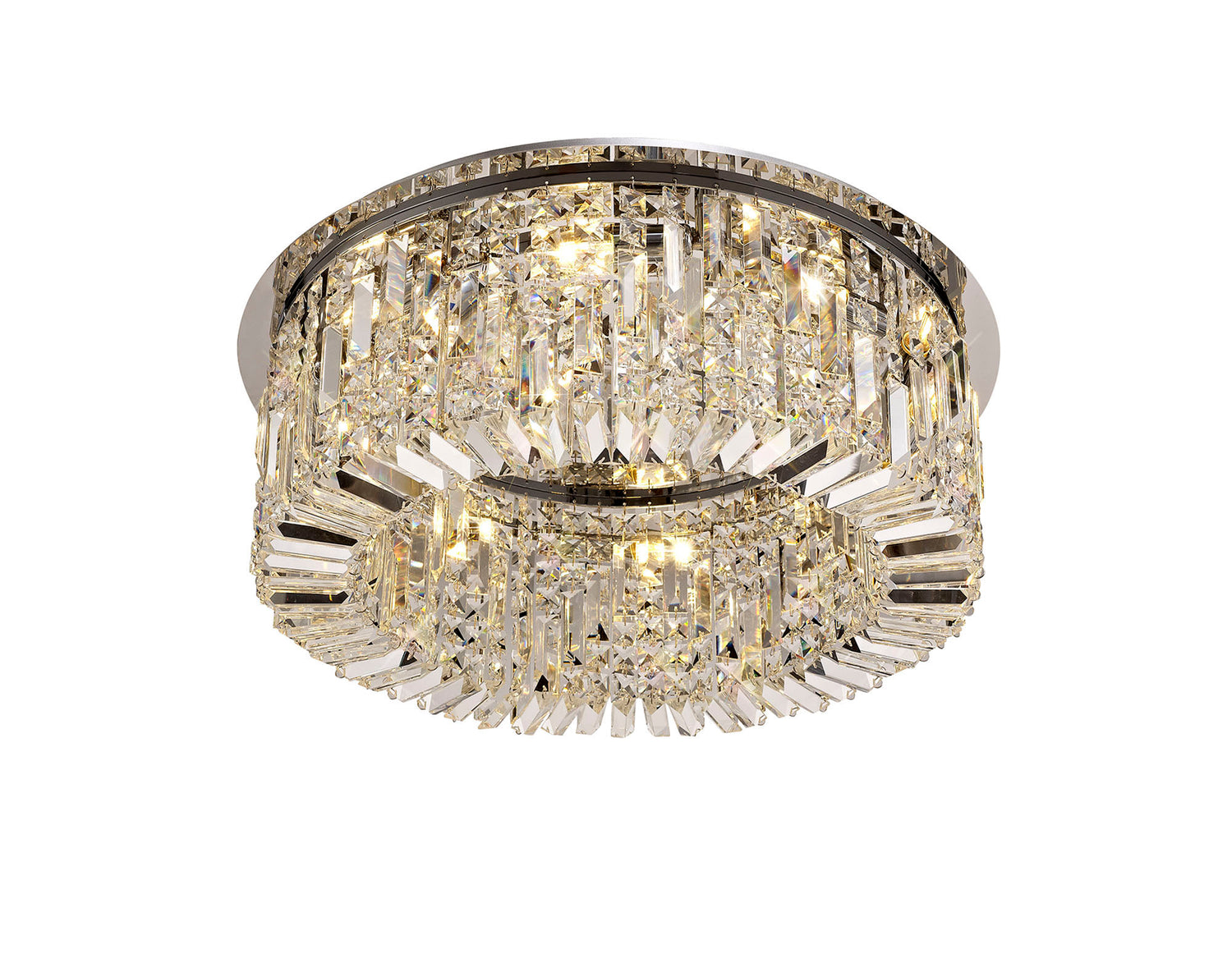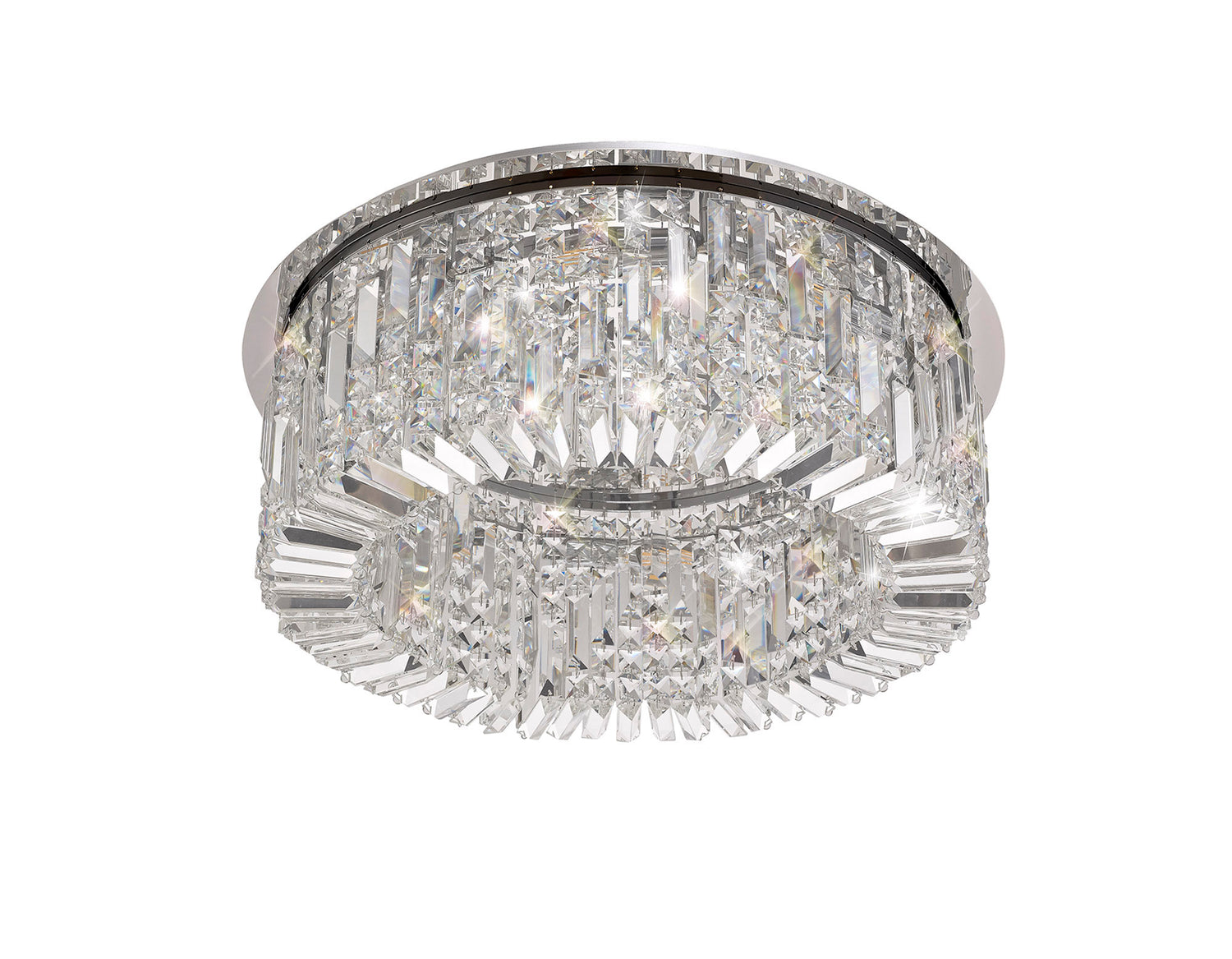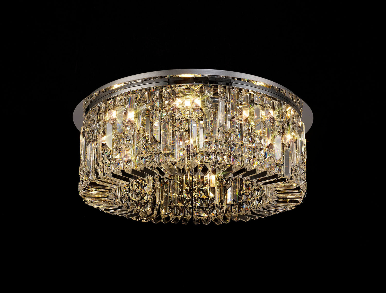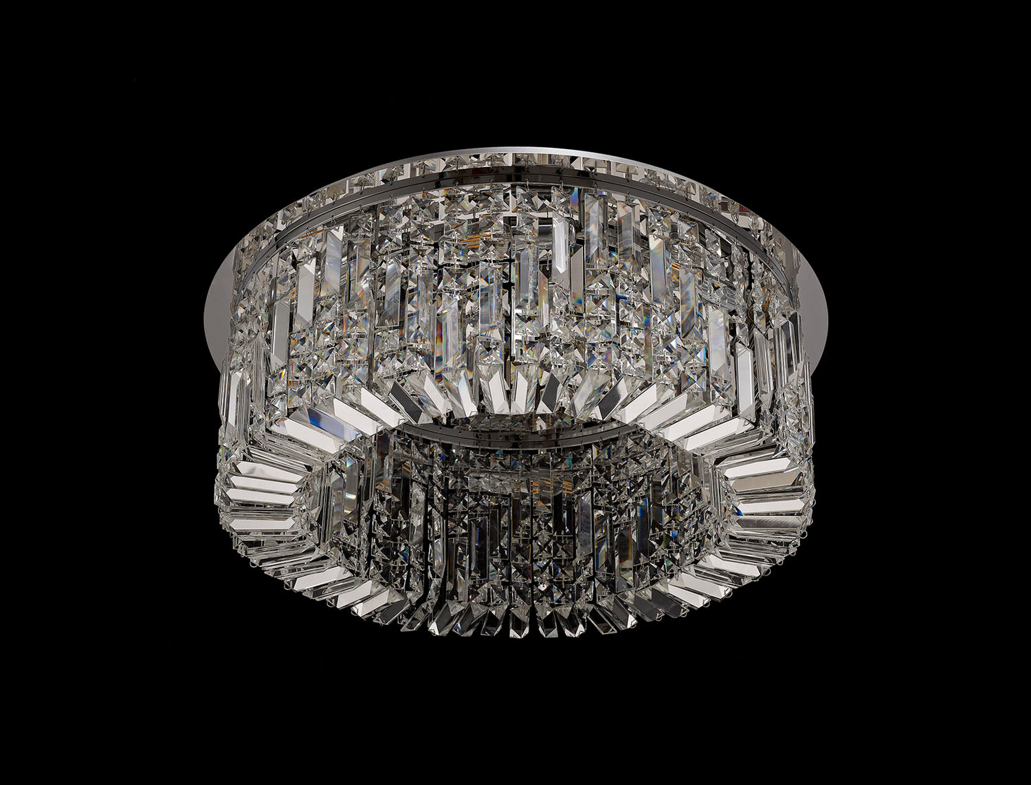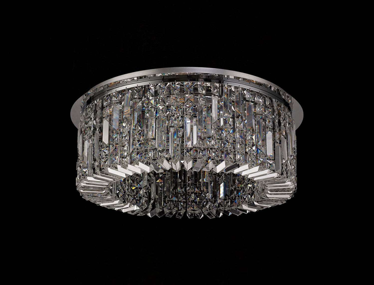 Zosma is a prestigious collection of alluring crystal fixtures that enraptures its audience with the exceptional dazzling quality of each piece of clear crystal. From 1m rectangular pendants to 45cm round flush lights each impressive design is available in either a polished chrome or gold finish. The striking strands of crystal hang either side of the E14 lampholders and are joined beneath them with additional rectangular crystal pieces, to conceal the lamps used and heighten the sparkle demonstrated when illuminated.
